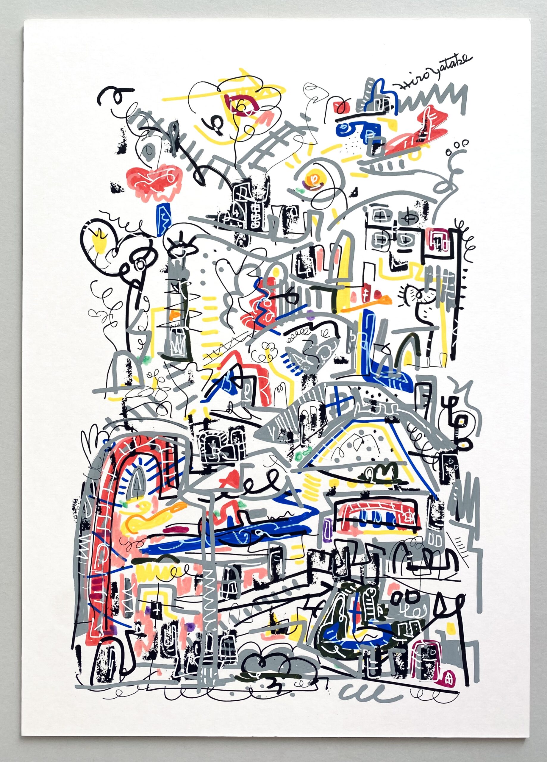 2008年 浮かんだイメージを付箋にボールペンでスケッチ。2012年になりそれをまとめたものを知人に見せたところサイズや画材をかえて絵画として発表することを勧められ、2013年、公募展にA4サイズのカードボードにペン・パステルで描いた作品を出品。その後アクリル絵具での創作をスタート。