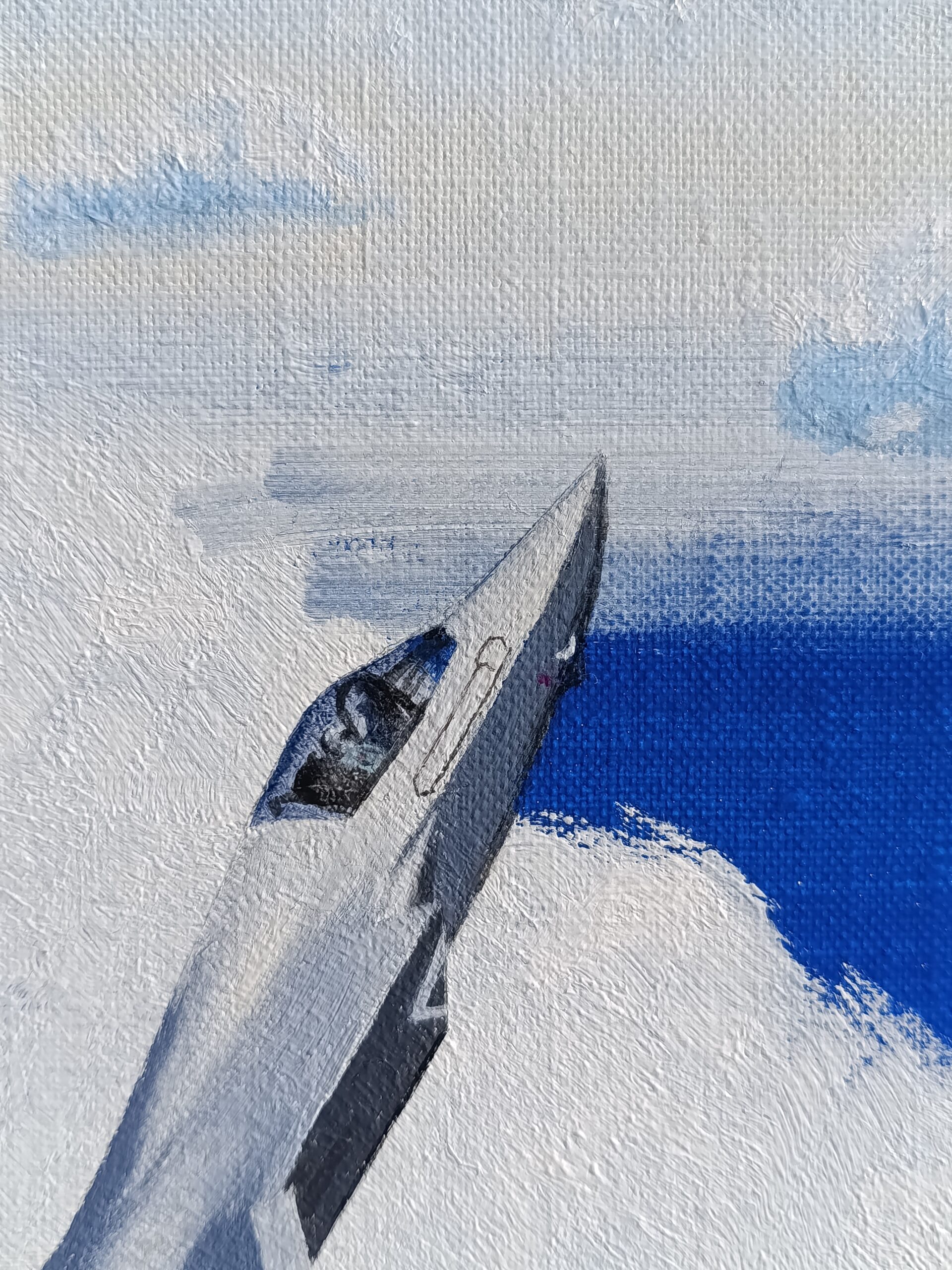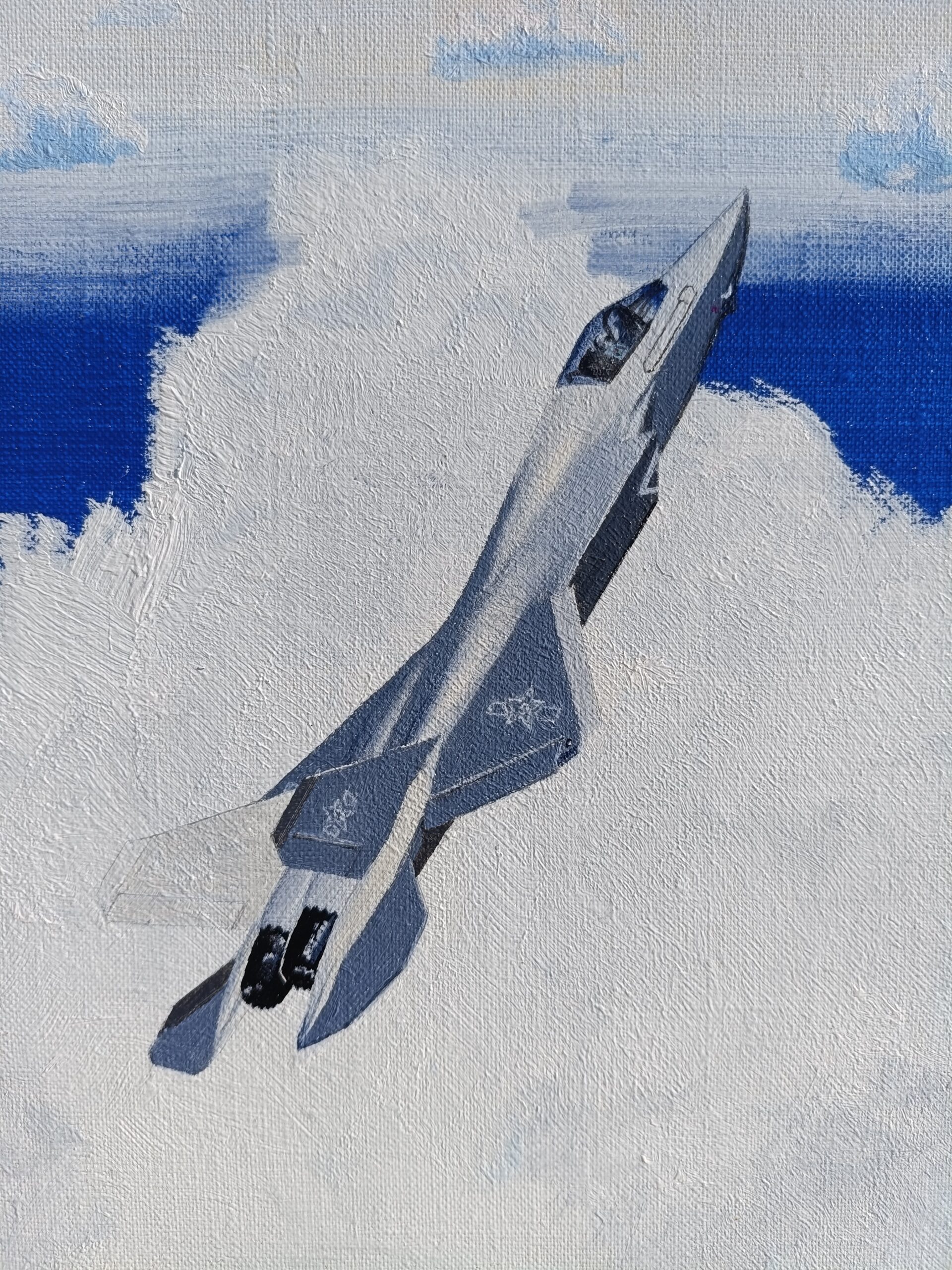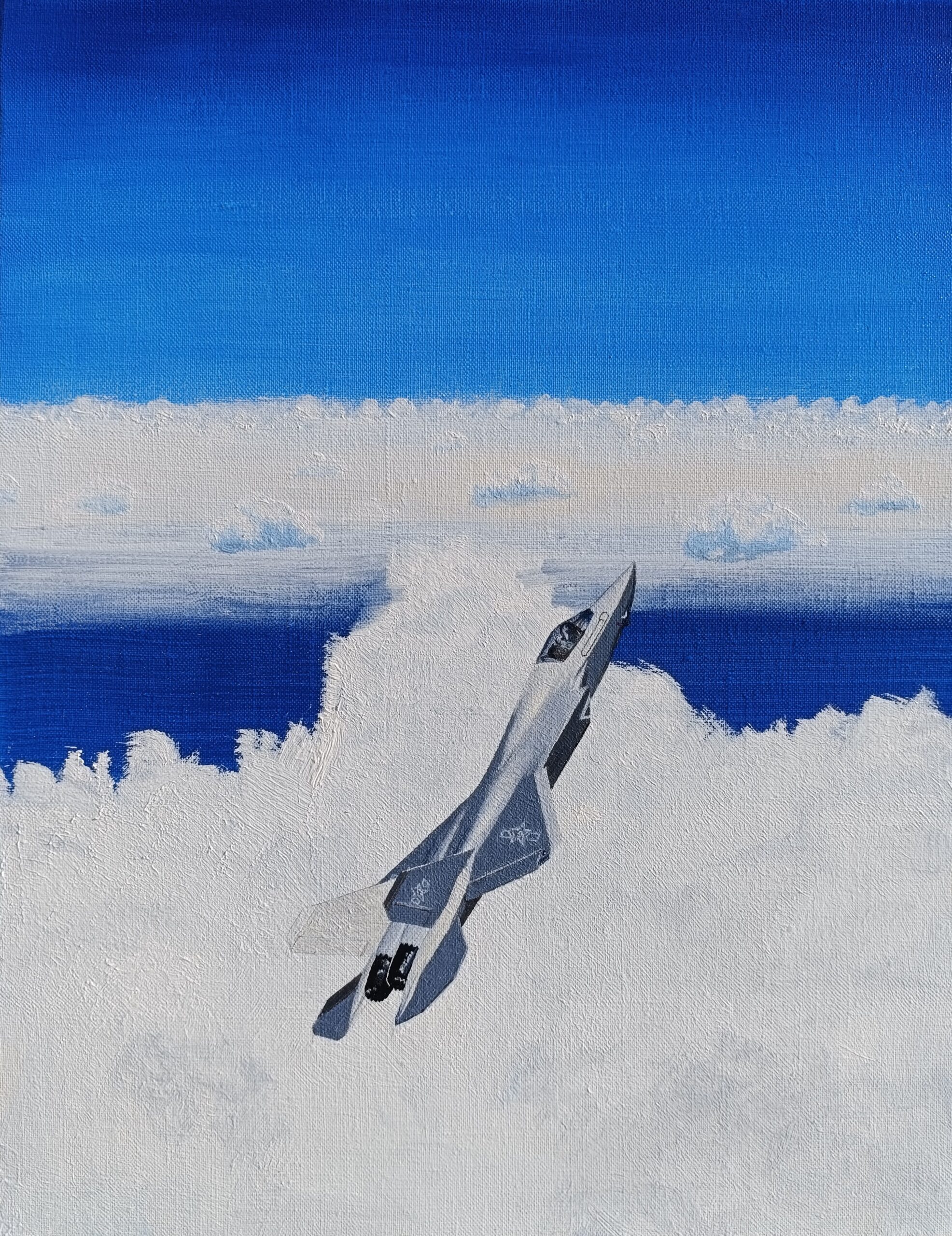 この作品では、果てしない大空を舞い上がる戦闘機の爽快な瞬間を捉え、ポップアートの大胆な明快さとリアリズムの深みを融合させました。鮮やかな青と鮮やかな白が、広大で手の届かない大地を想起させ、人間の野心と自由を称える作品です。このエネルギーがあなたの空間を高揚させ、日々の冒険、力強さ、そして無限の可能性を呼び起こす様子を想像してみてください。