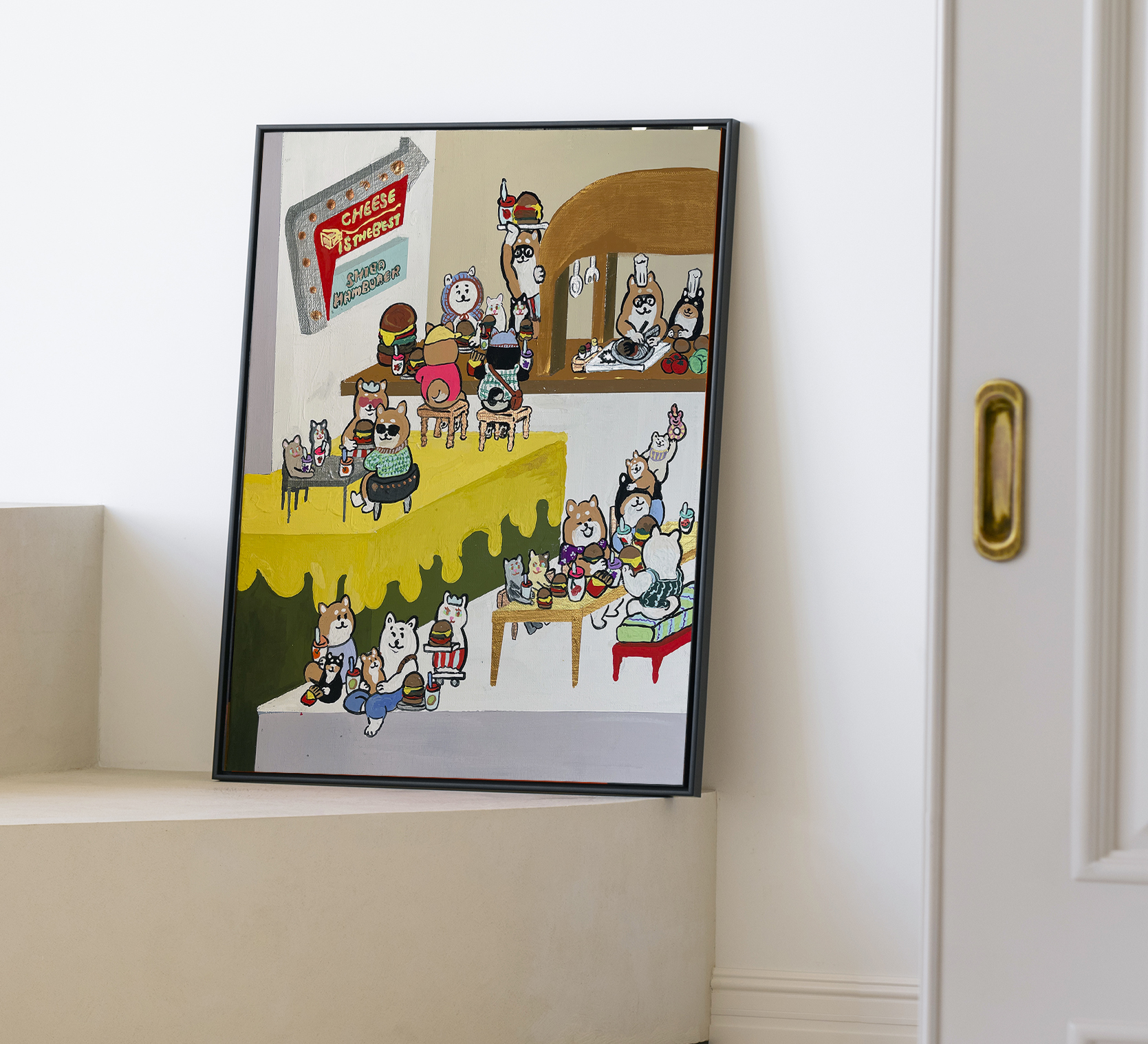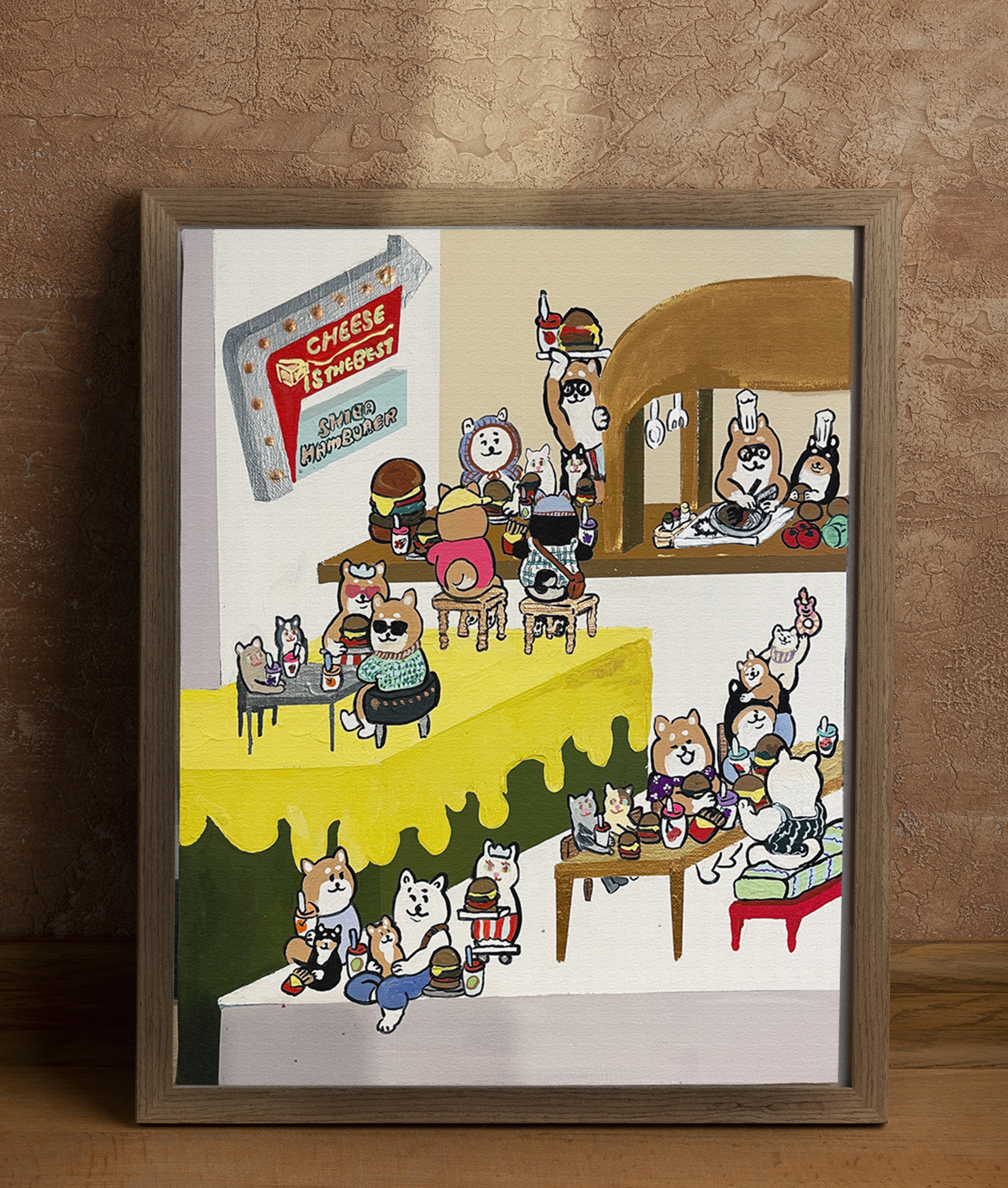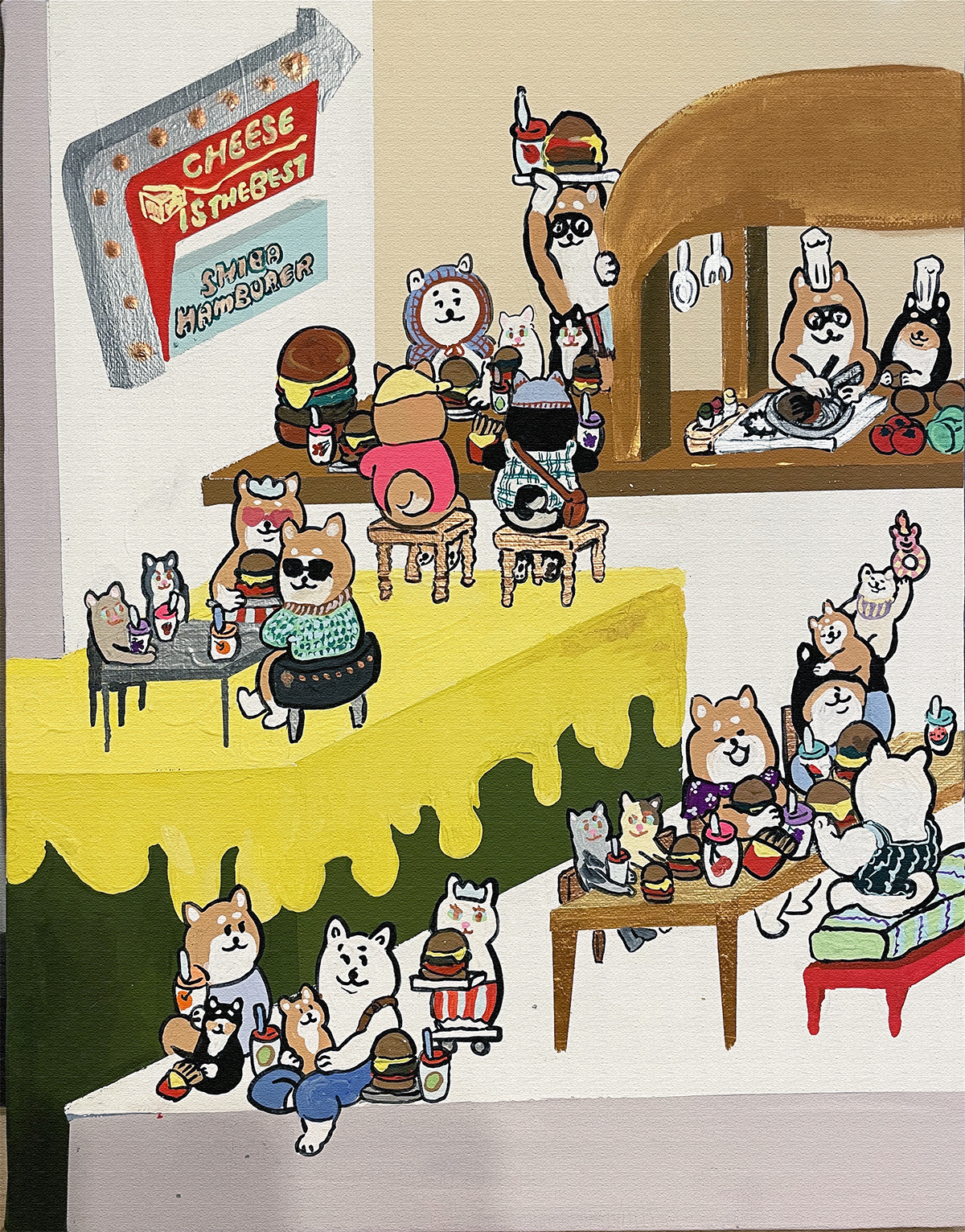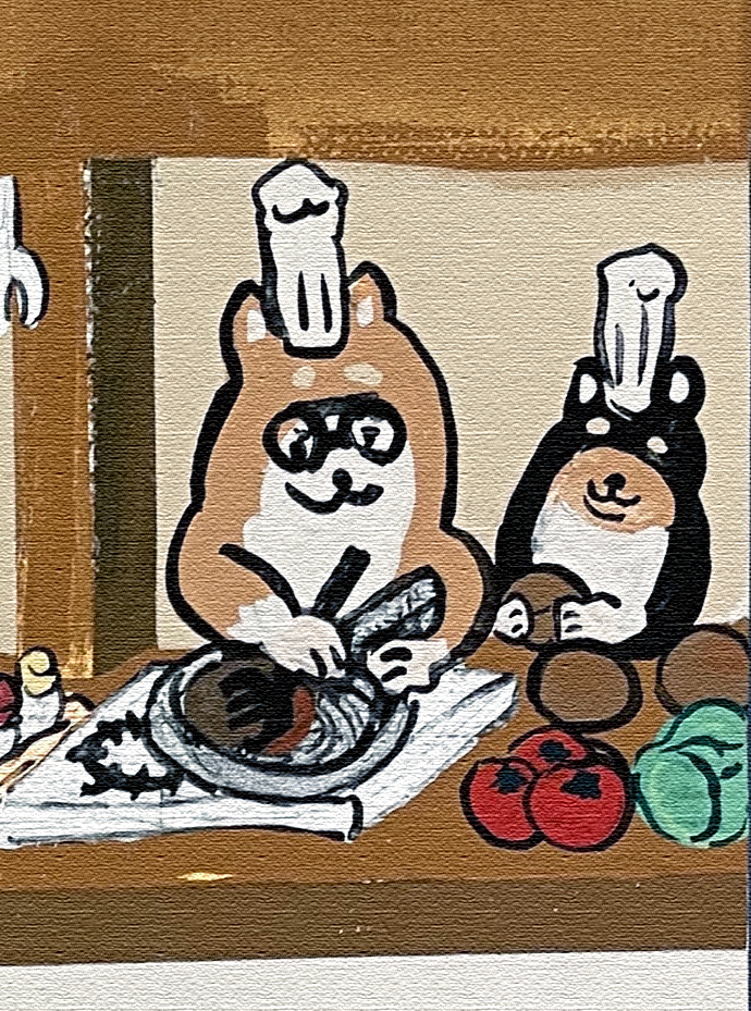 This work is filled with the hope that Shiba Inu dogs, who love to eat, will be able to eat their fill of cheese.