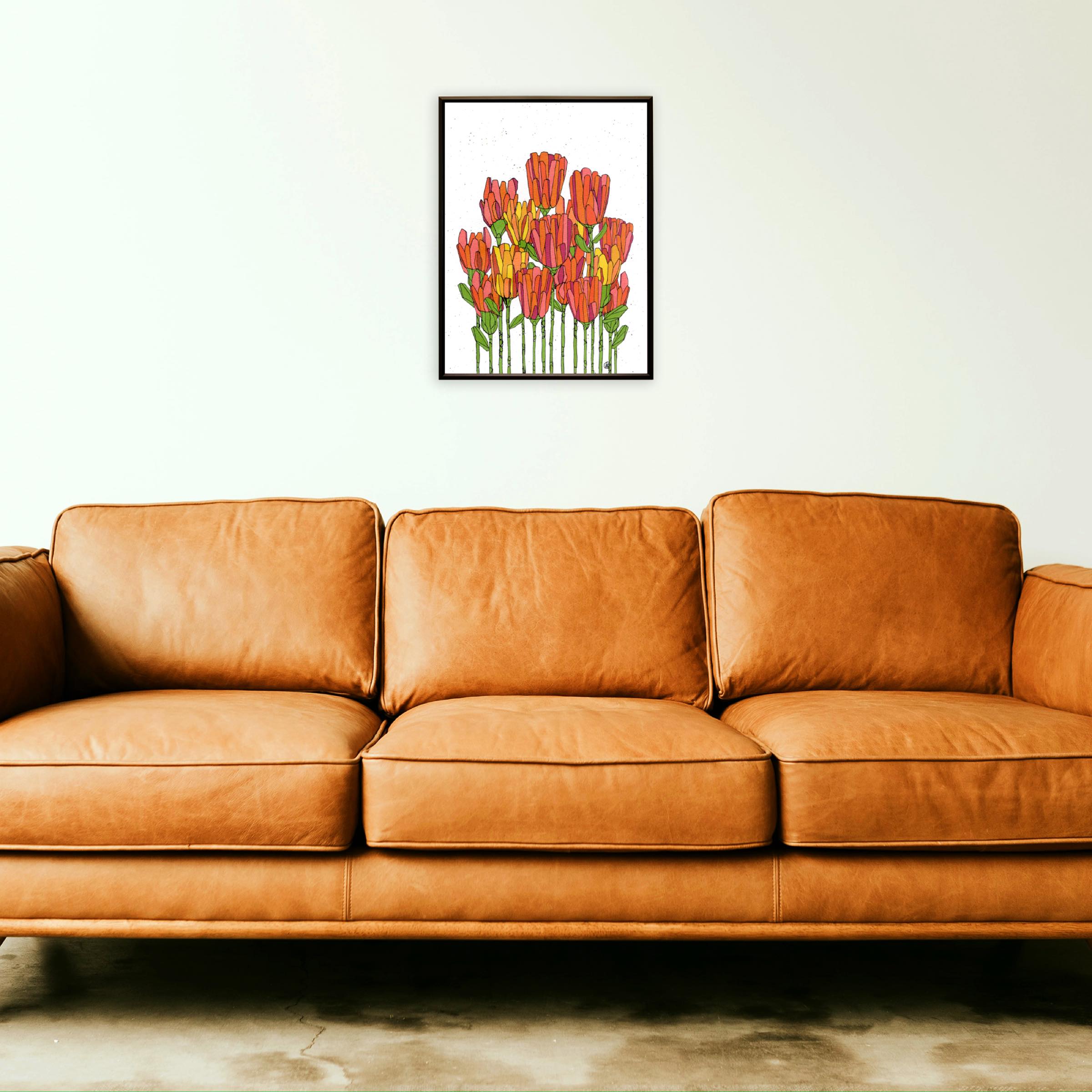 花弁や茎の形はほぼ統一され、自然物でありながら人工的な印象を与える。 この均質さが、チューリップを「花」から「単位」へと変換している