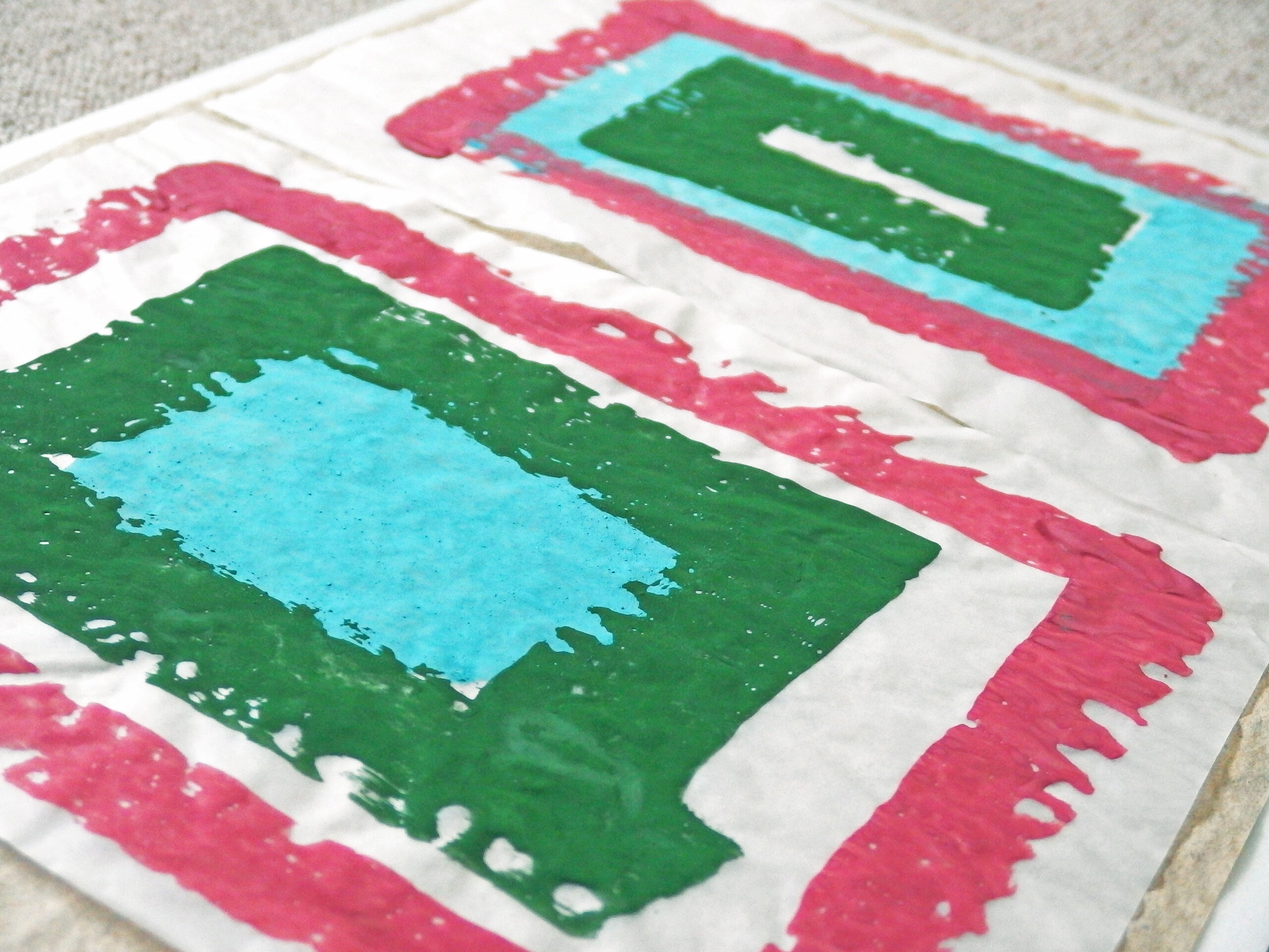 スチレンペーパーという光沢のある真っ白な素材に、岩絵の具自体の美しさが際立ちます。この組み合わせを発見し、気に入って使い続けています。