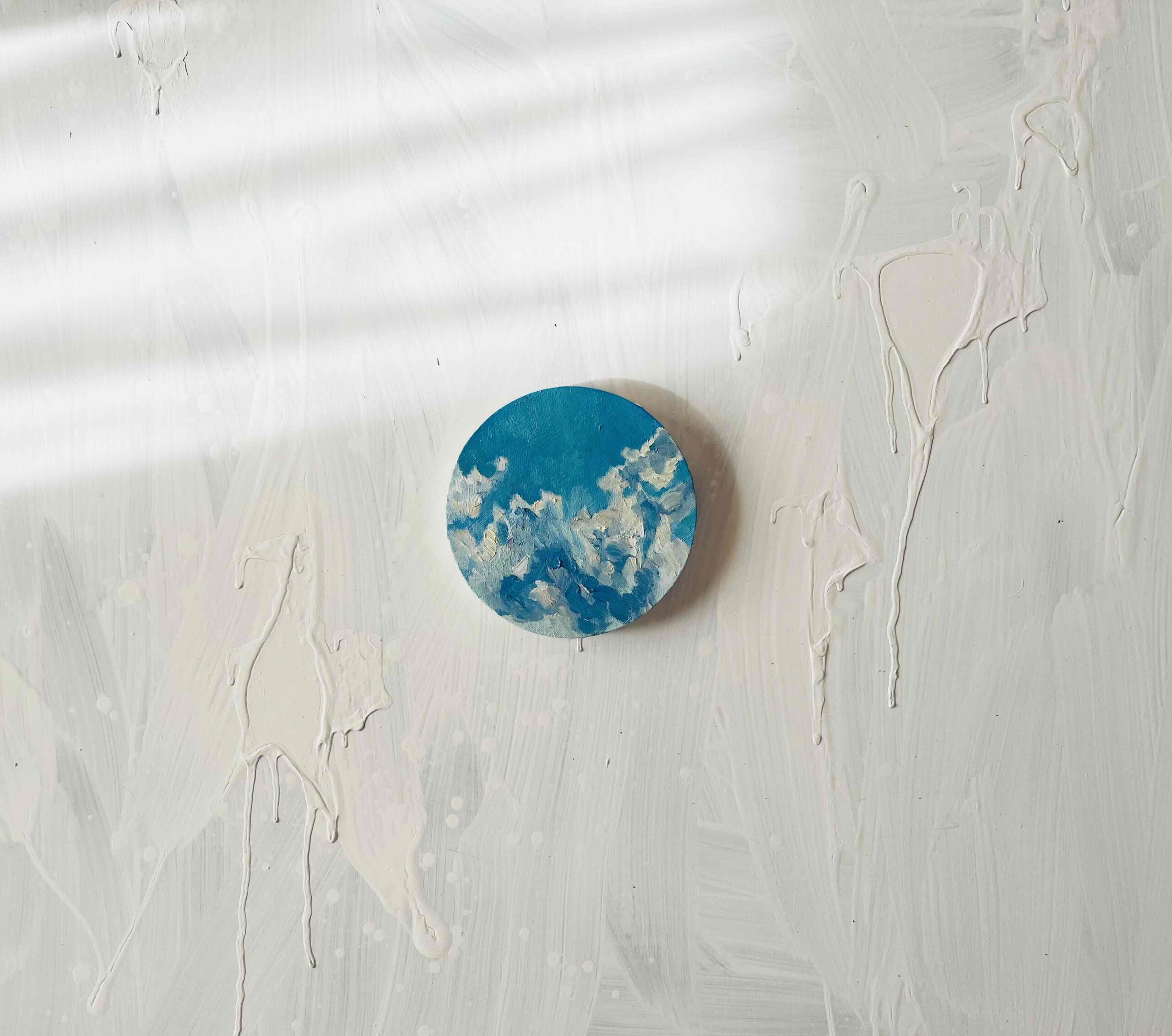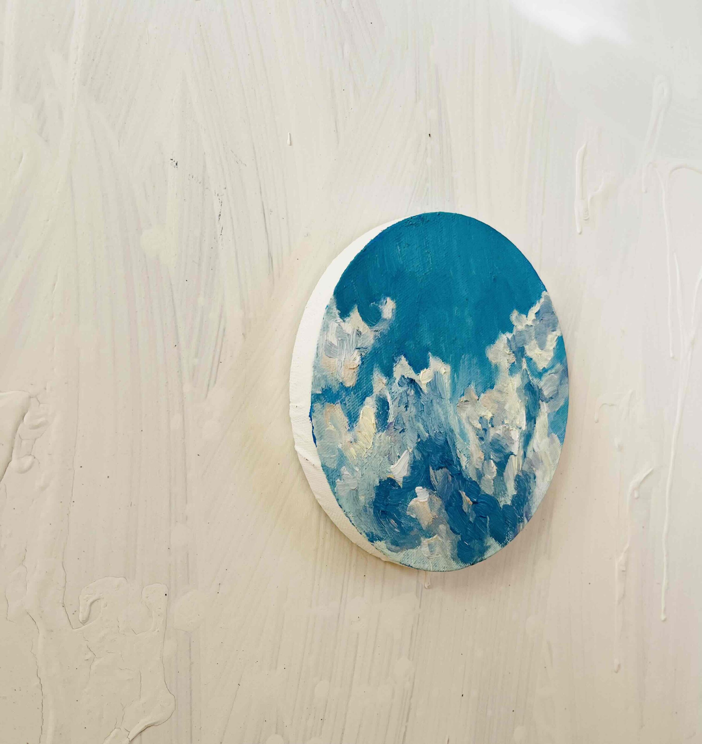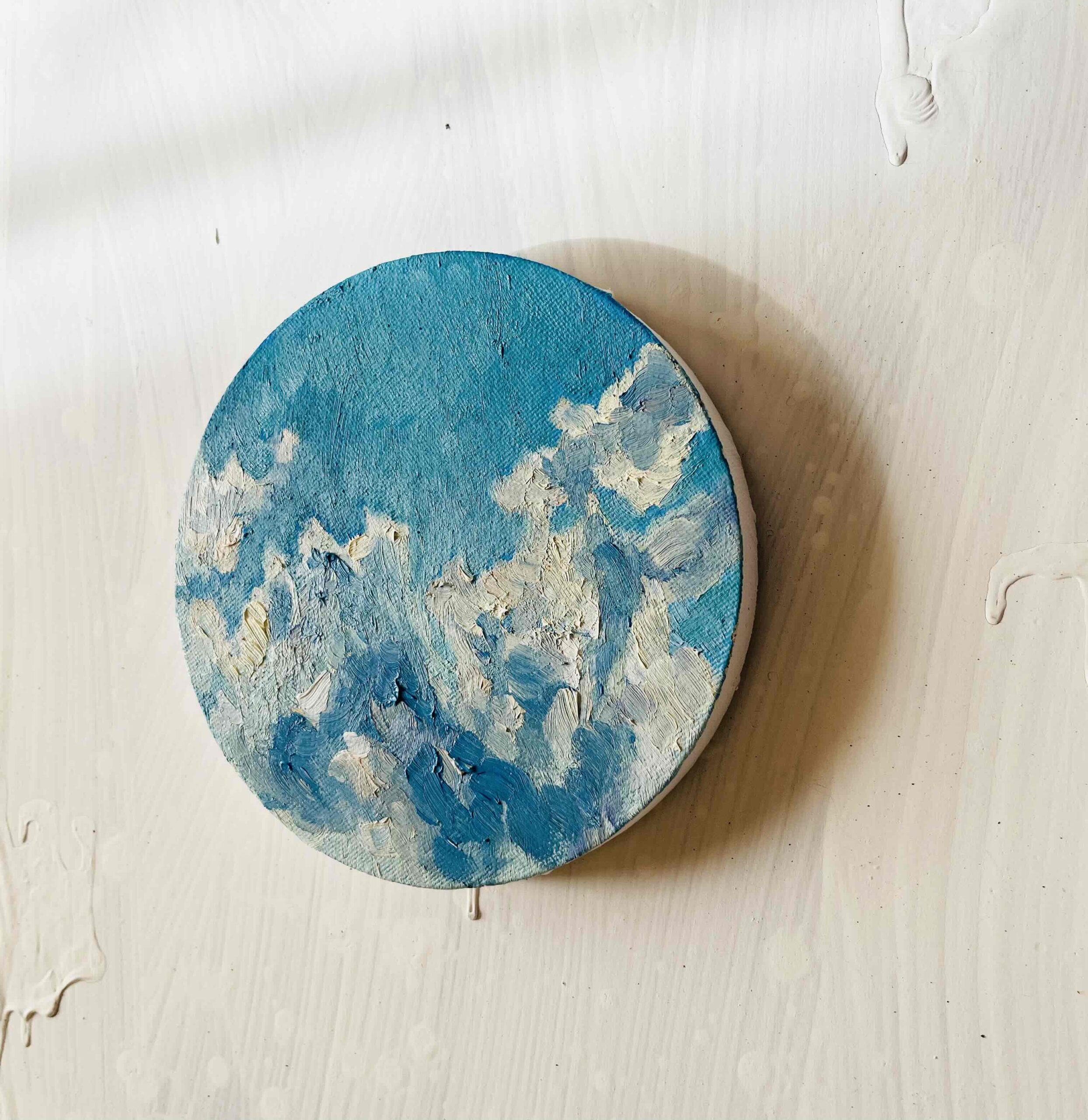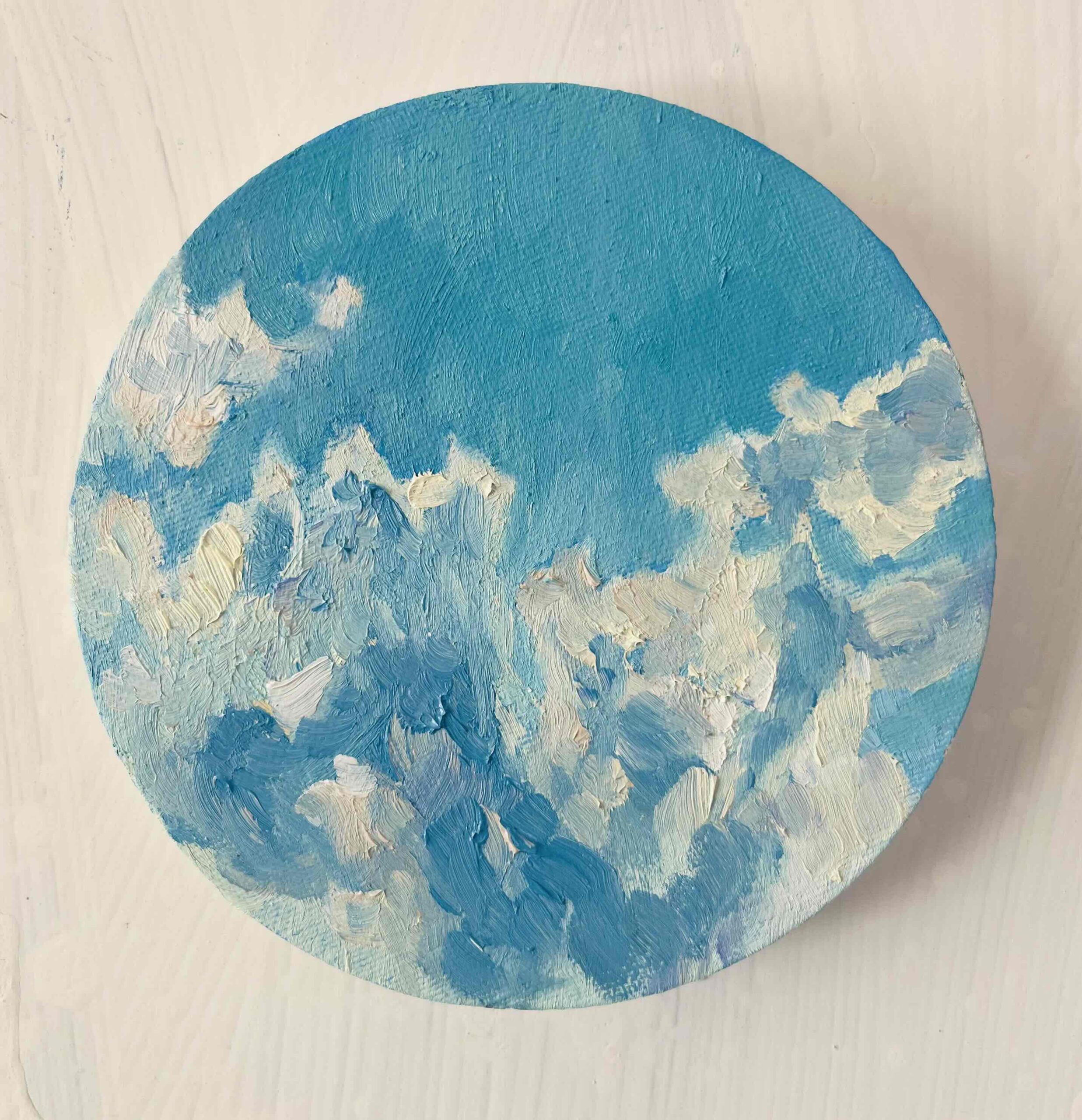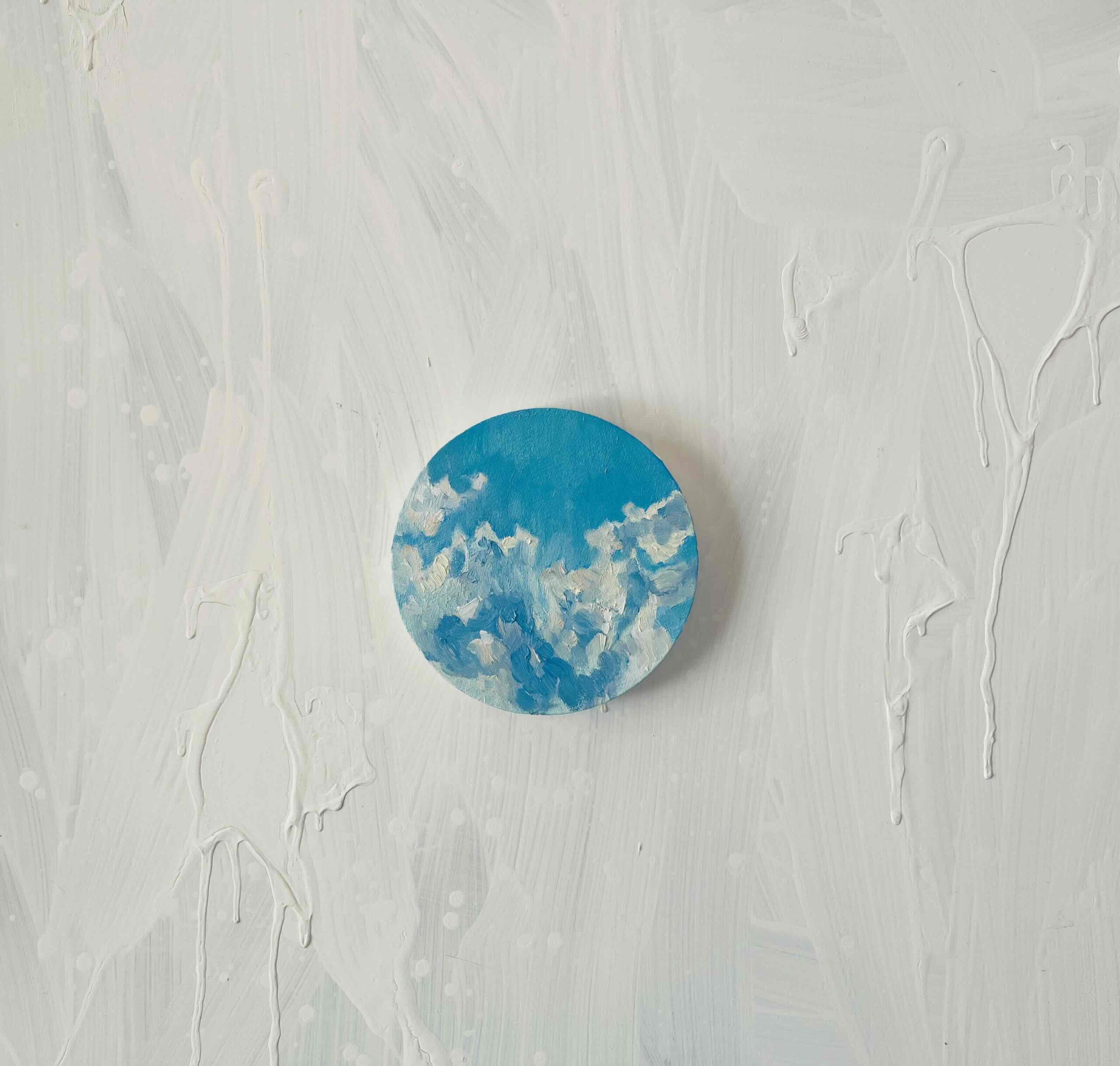 直径15㎝「空 その1」油彩・絵画・原画・丸形・アートパネル