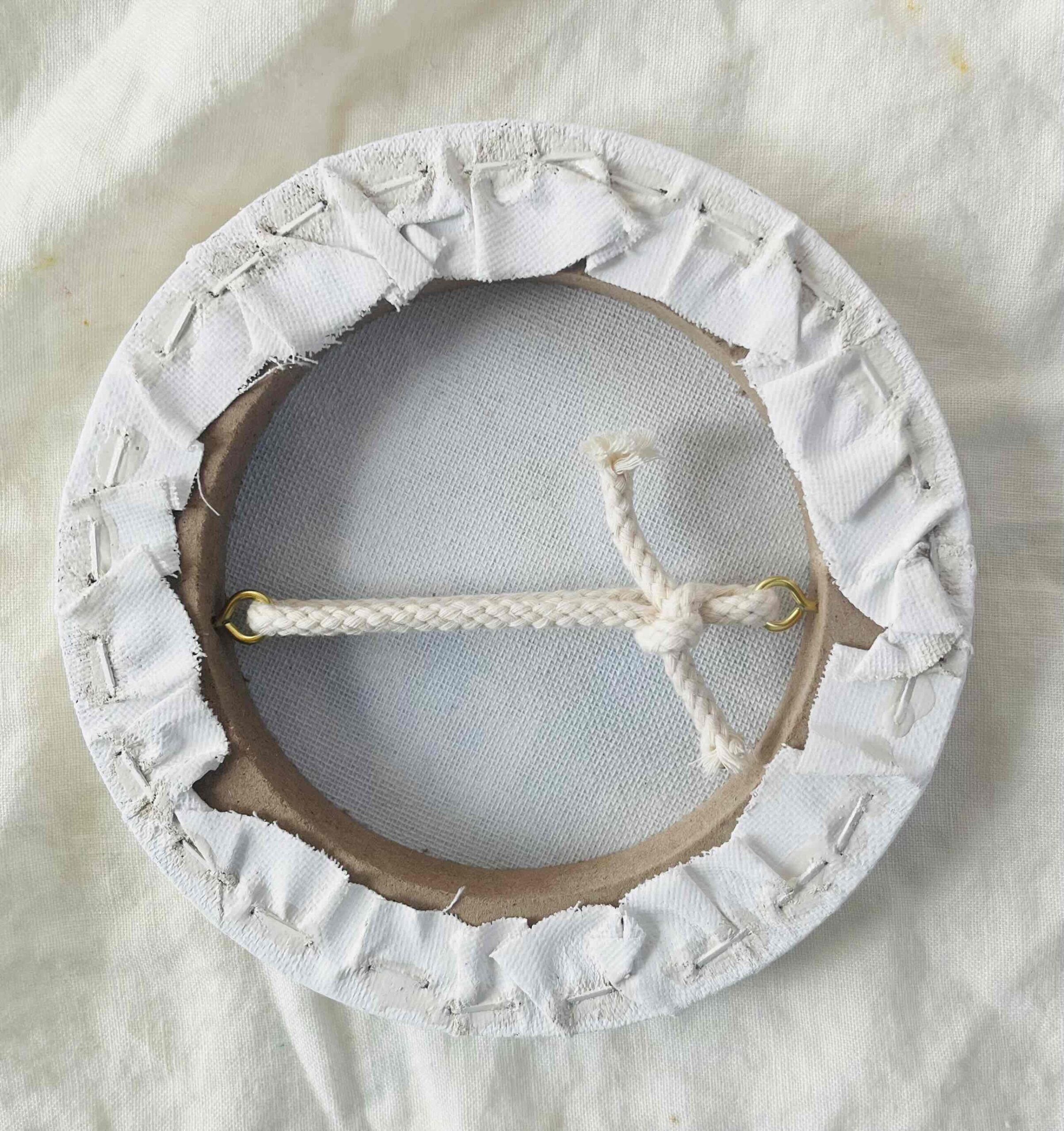 技法・素材 : 油彩・木材にコットン100%の布張りキャンバス 裏に取り付けてある紐もコットン100% 真鍮製金具