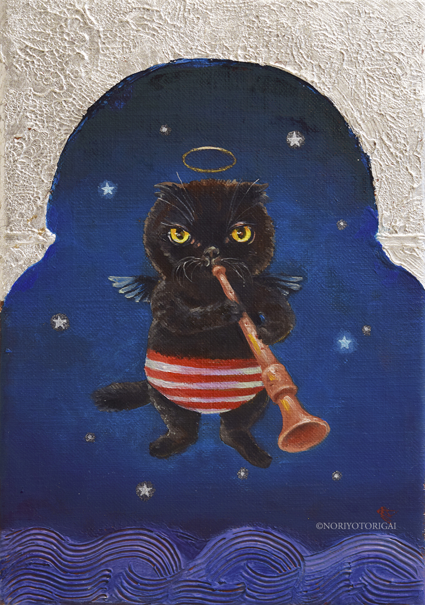 猫天使シリーズの1枚です。二枚目の画像では額がついていますが、販売は絵のみとなります。