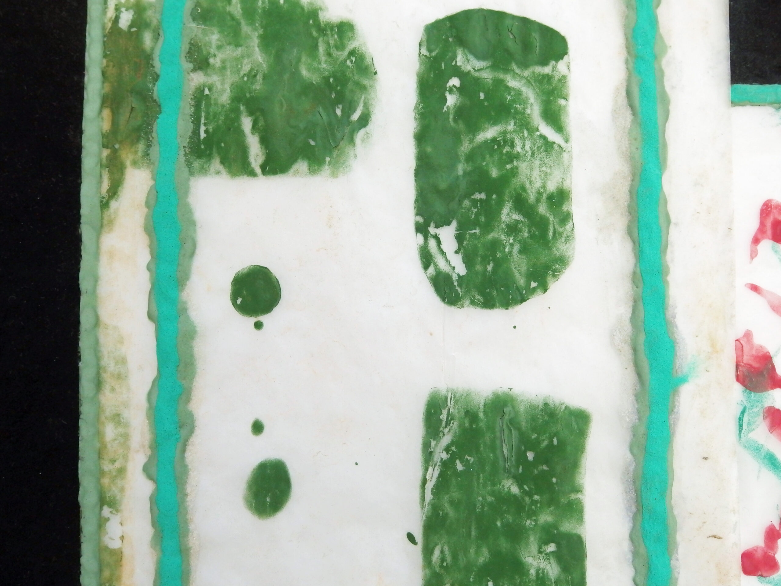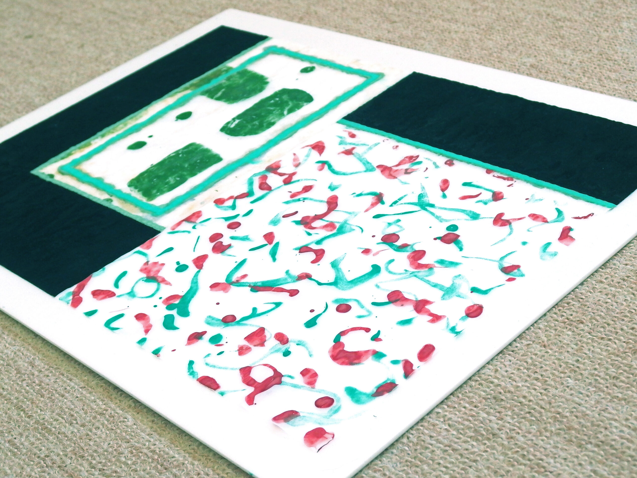 スチレンペーパーという光沢のある真っ白な素材に、岩絵の具自体の美しさが際立ちます。この組み合わせを発見し、気に入って使い続けています。