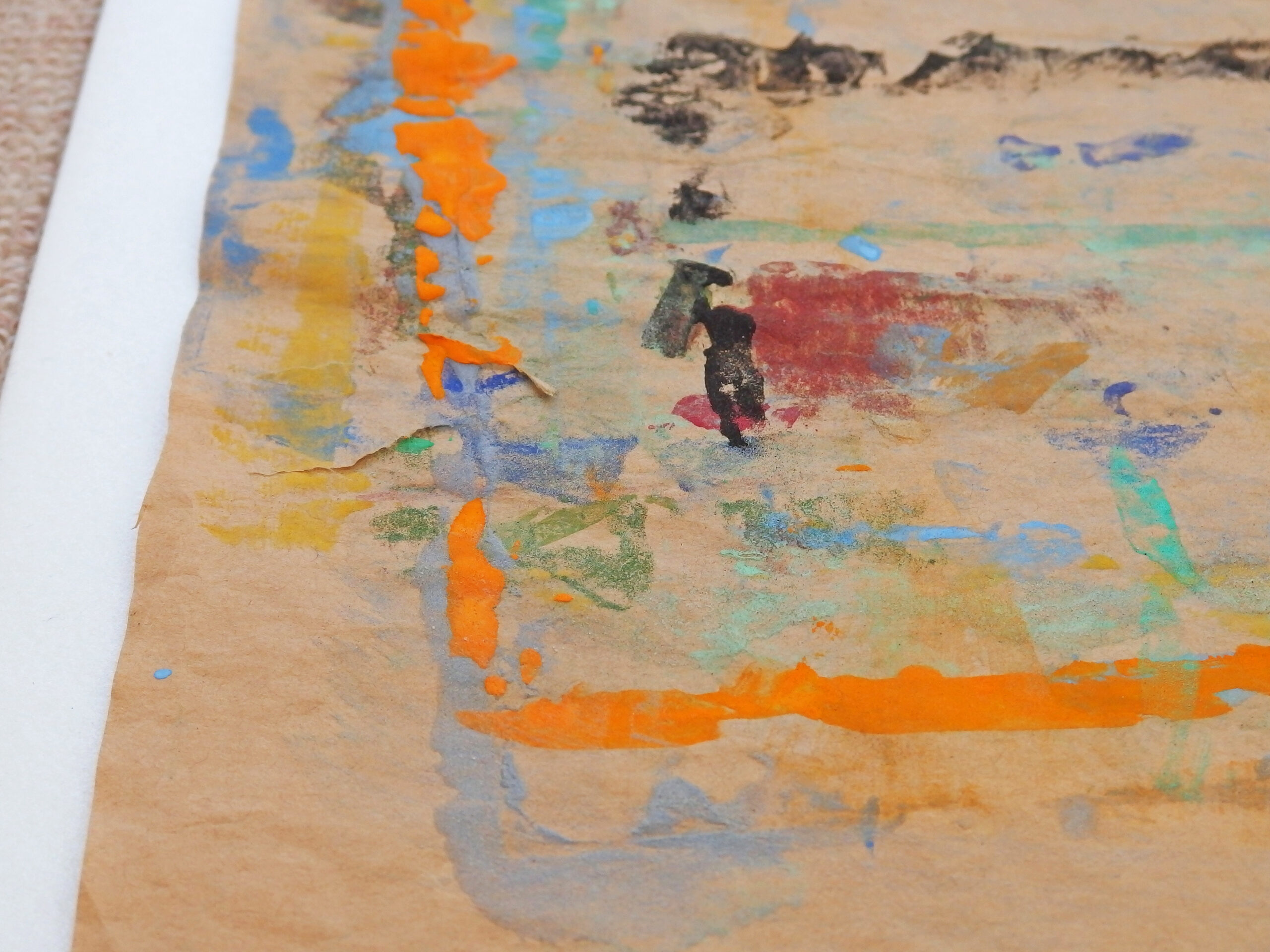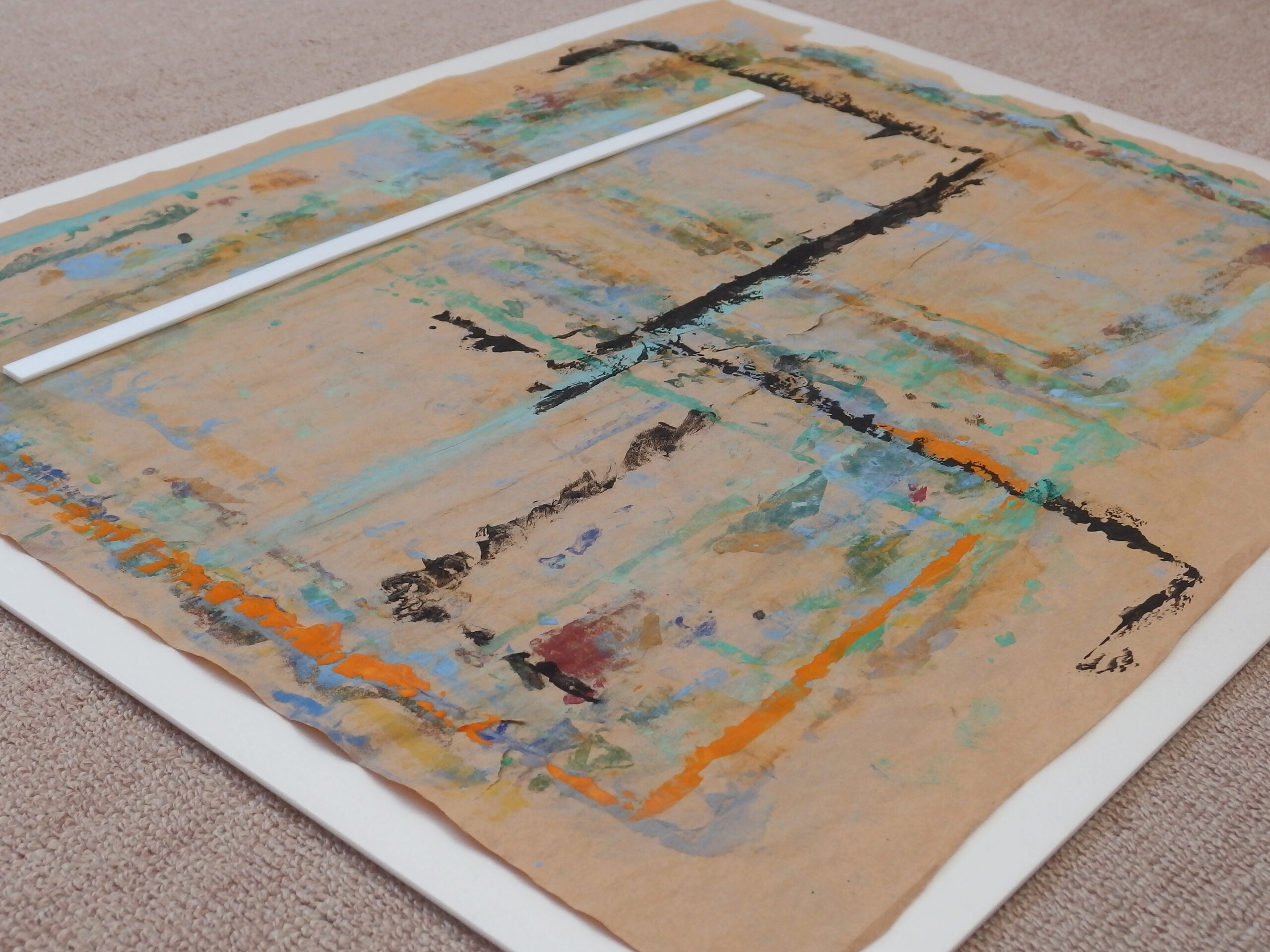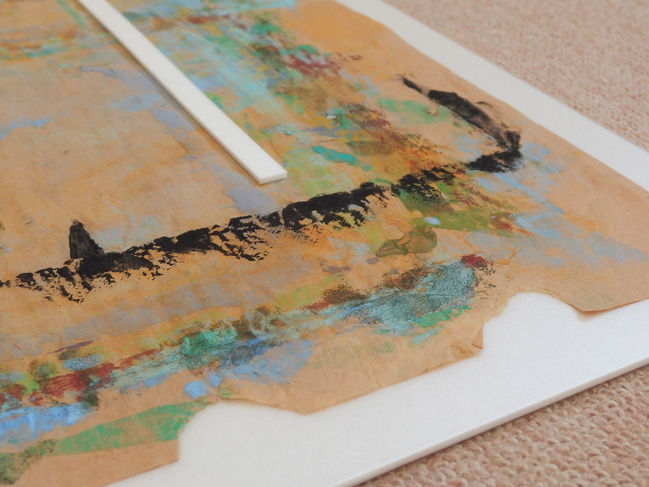 スチレンペーパーという光沢のある真っ白な素材に、岩絵の具自体の美しさが際立ちます。この組み合わせを発見し、気に入って使い続けています。