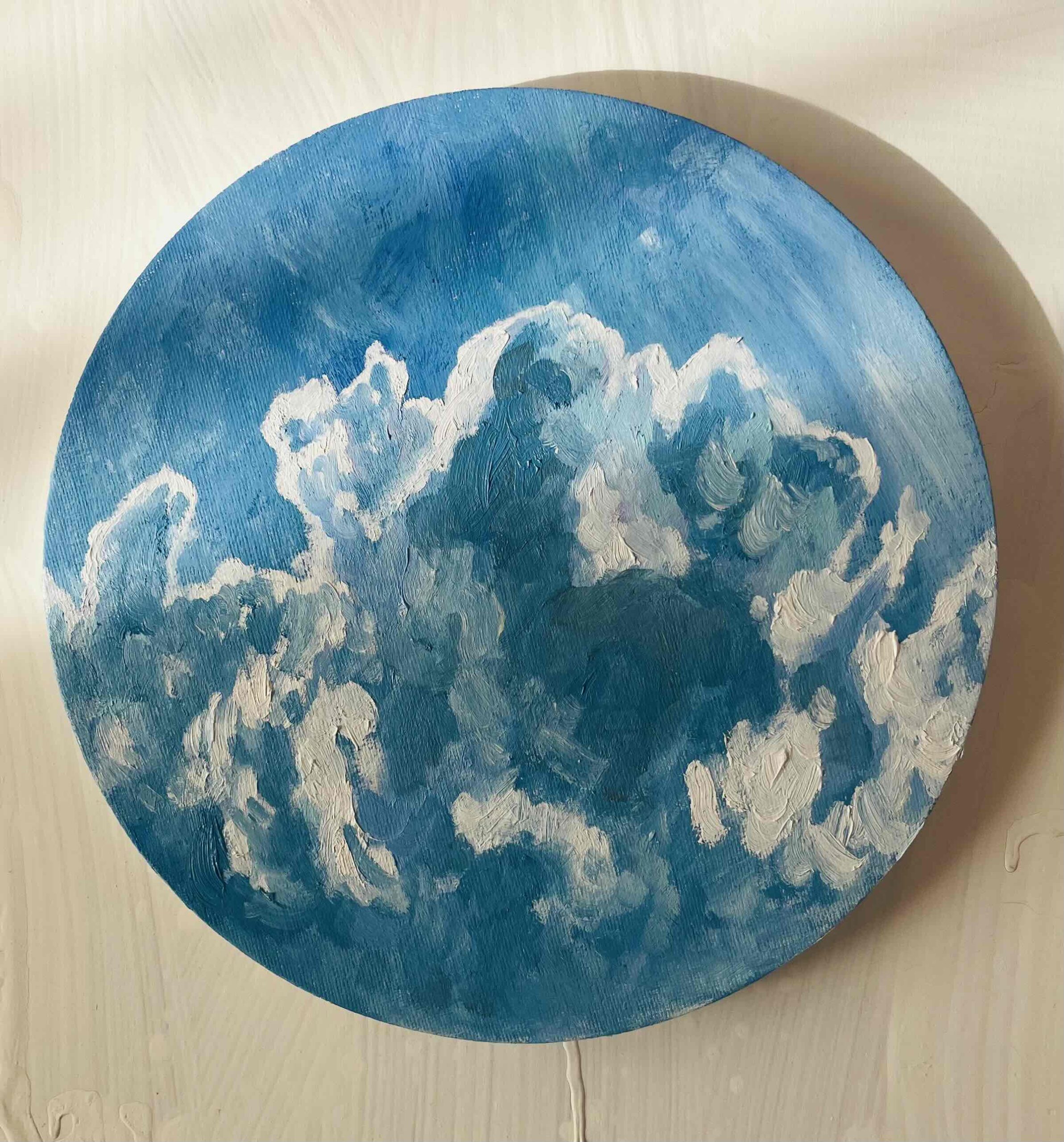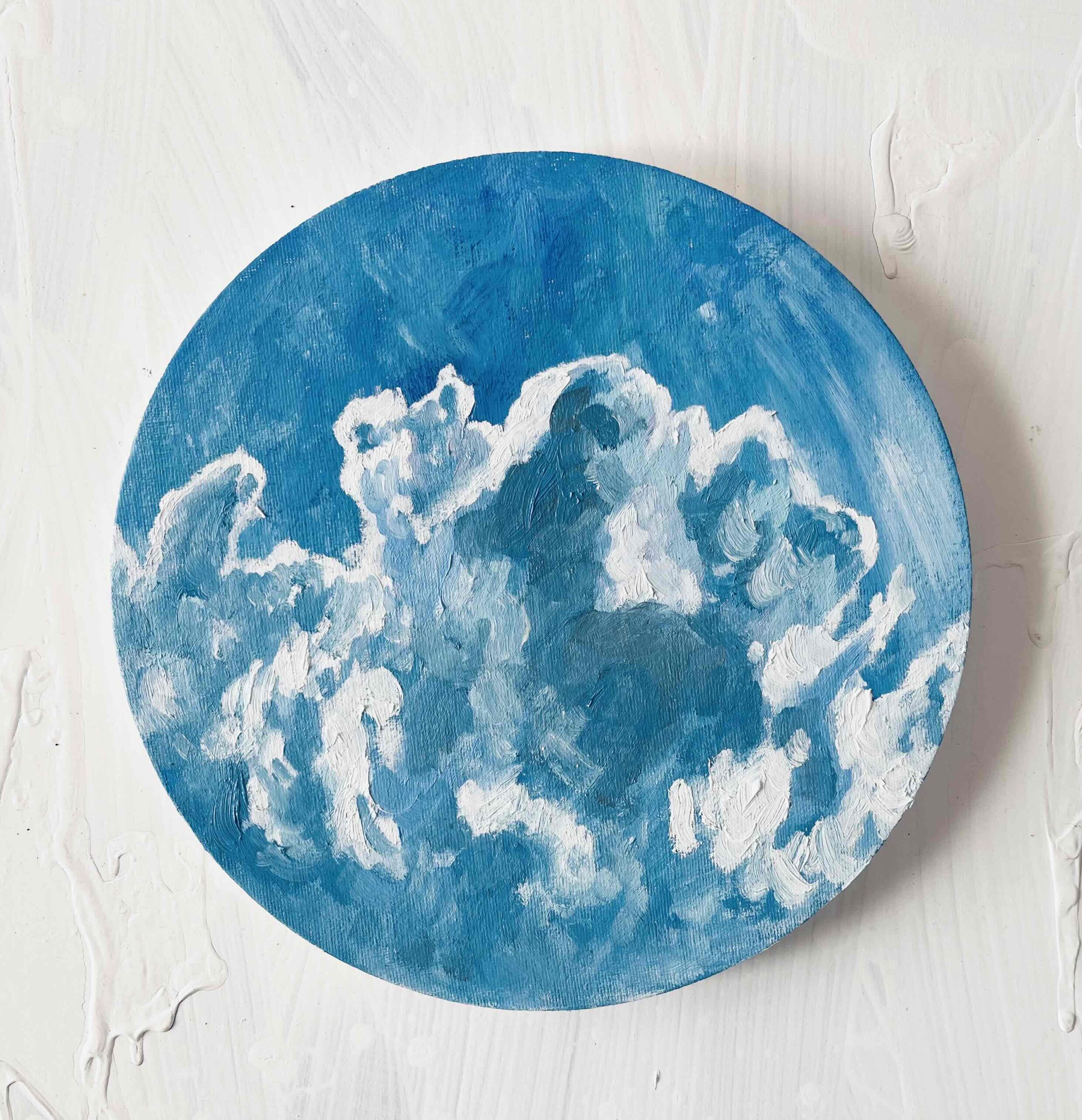 直径25㎝「空 その4」油彩・絵画・原画・丸形・アートパネル