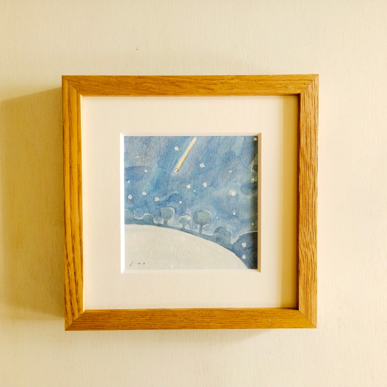 すぐに飾っていただけるよう、18角サイズの木製額縁に入れ、お届けいたします。
