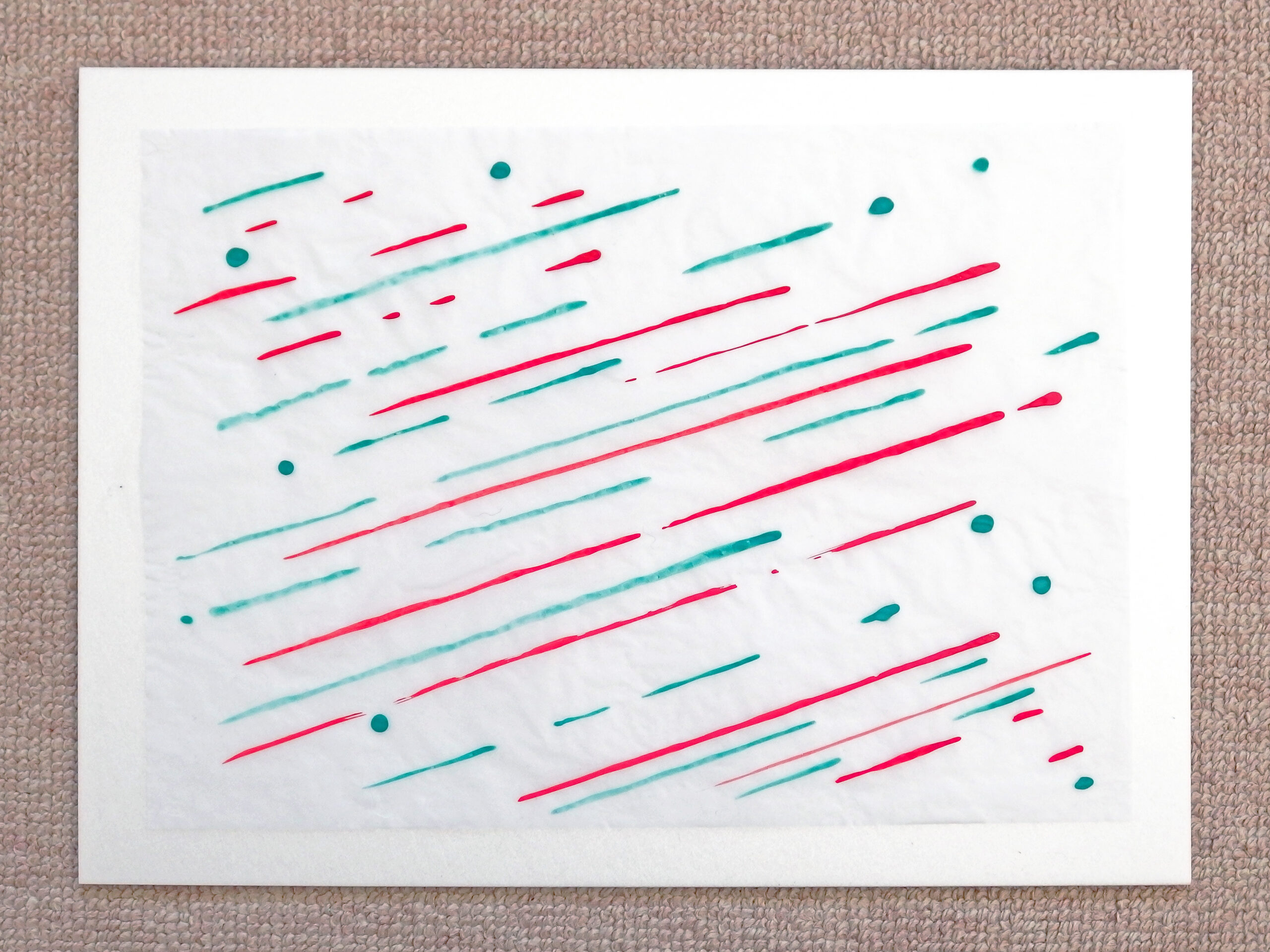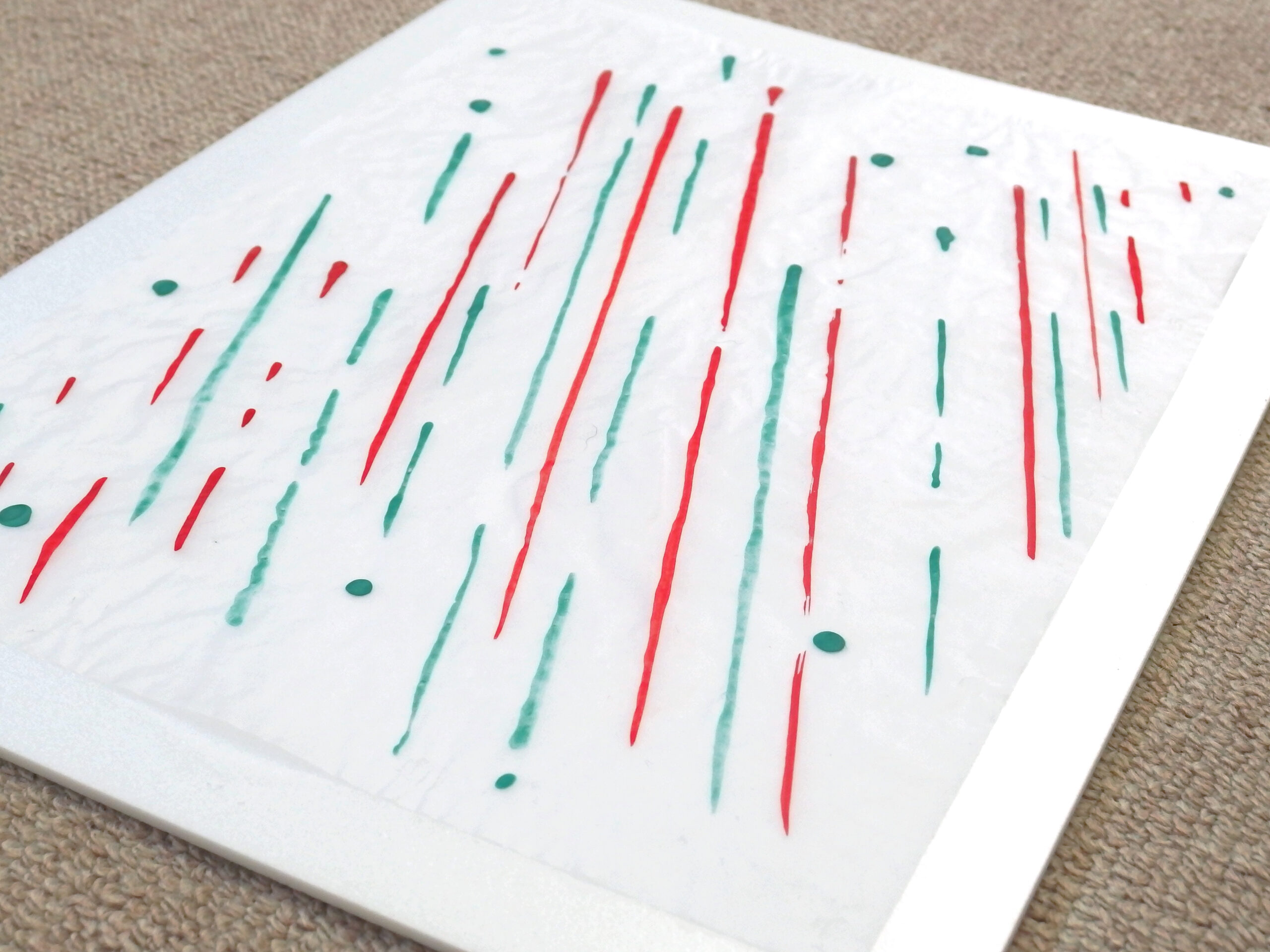 スチレンペーパーという光沢のある真っ白な素材に、岩絵の具自体の美しさが際立ちます。この組み合わせを発見し、気に入って使い続けています。