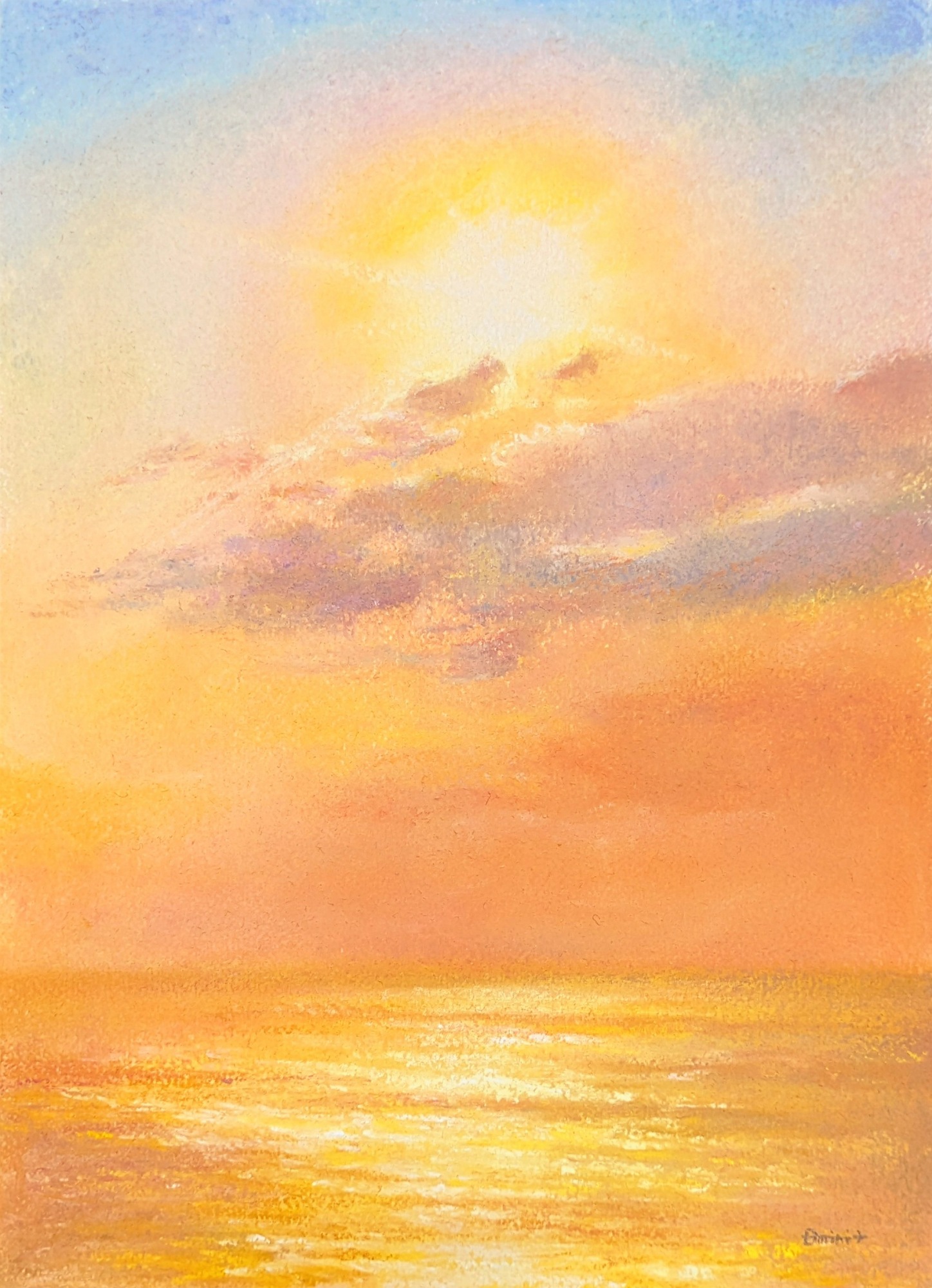 黄金に輝く朝焼けのワンシーンから。光と色を中心にしました。まぶしい光が感じられる作品です。