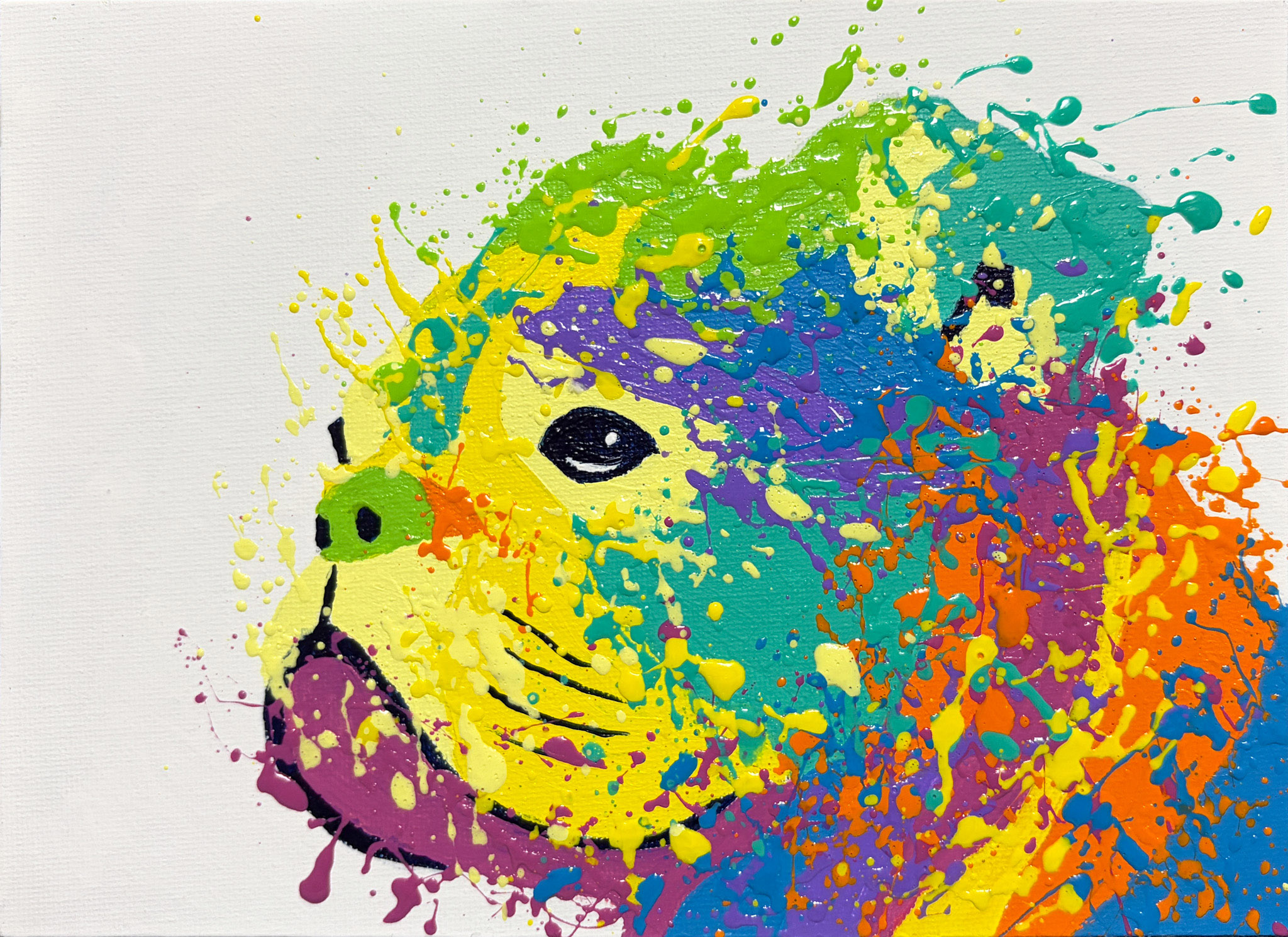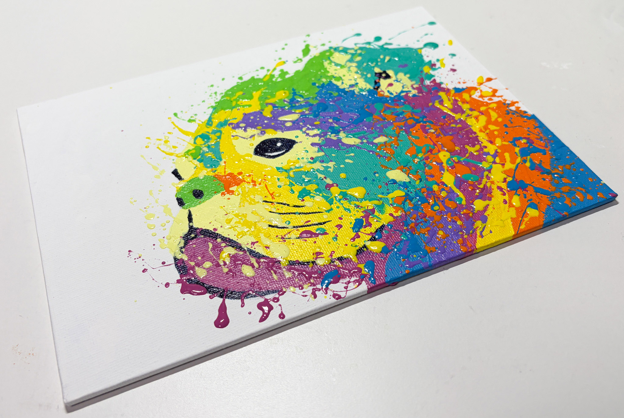 退屈しのぎに絵の具の缶を全部ひっくり返し、全身ベッタベタに塗ってキャンバスに豪快ダイブ!