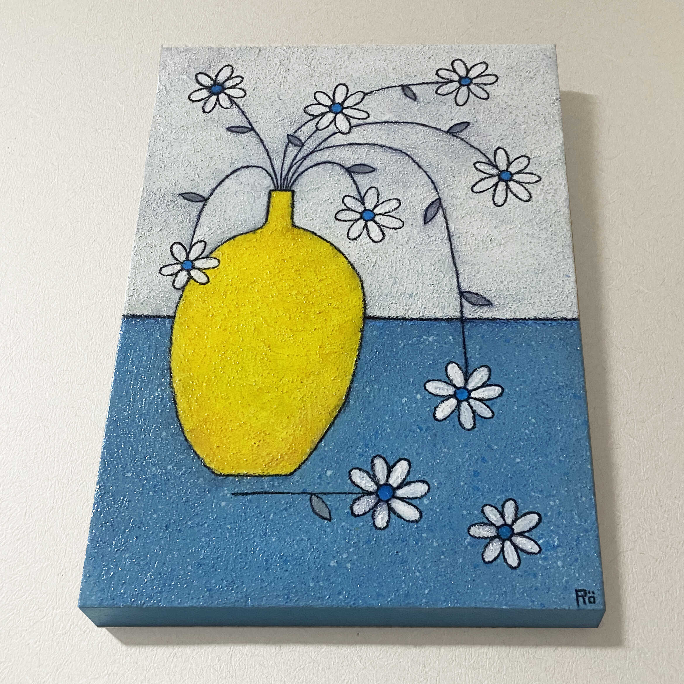 小さな白い花たちと、アクセントに相性の良い水色で花芯を描いた可愛らしい作品となっております。