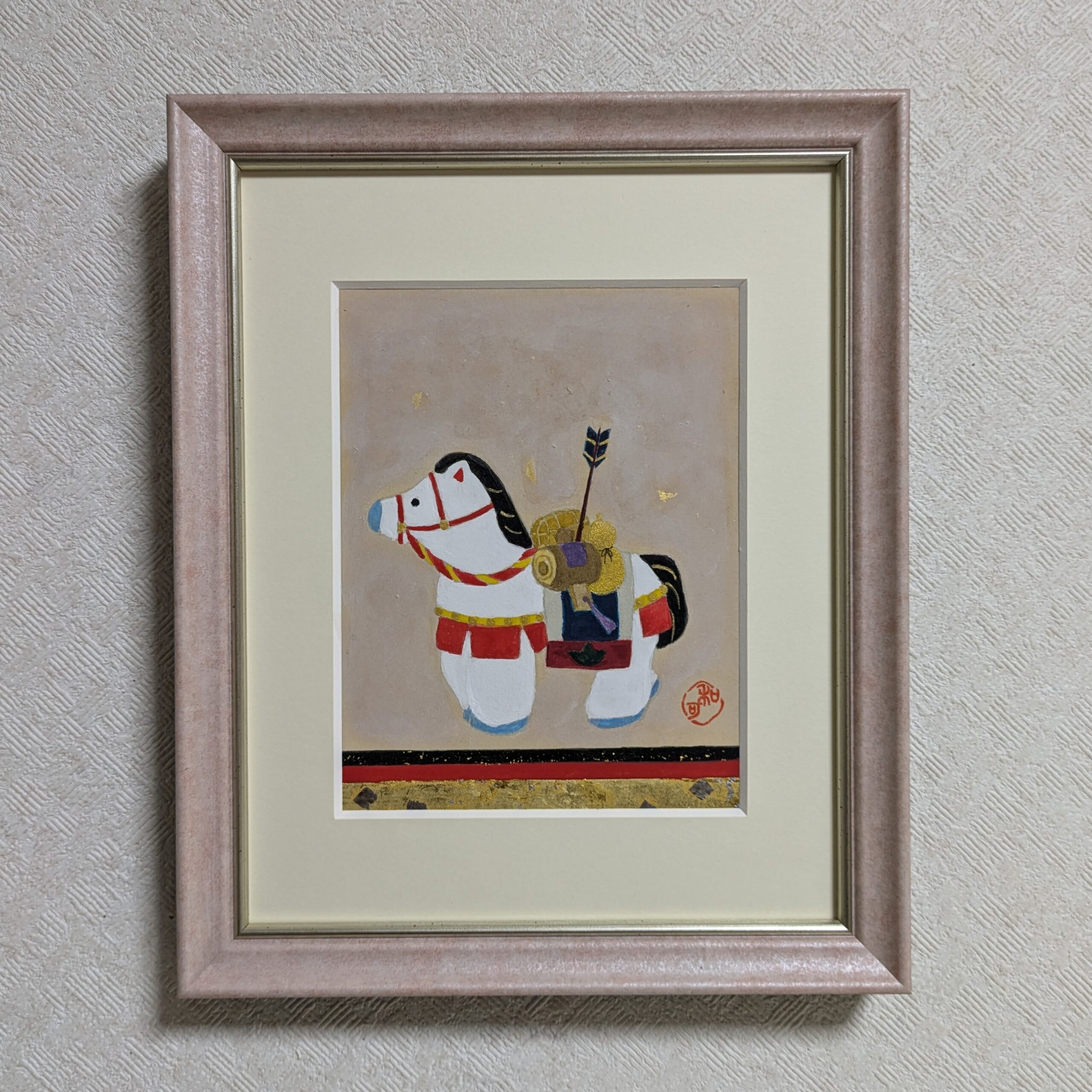 60年に一度の丙午に当たる2026年が、皆様にとって、何事も「馬九行久うまくいく」年でありますように、1年を通して家を守る縁起物~干支飾りを描きました。