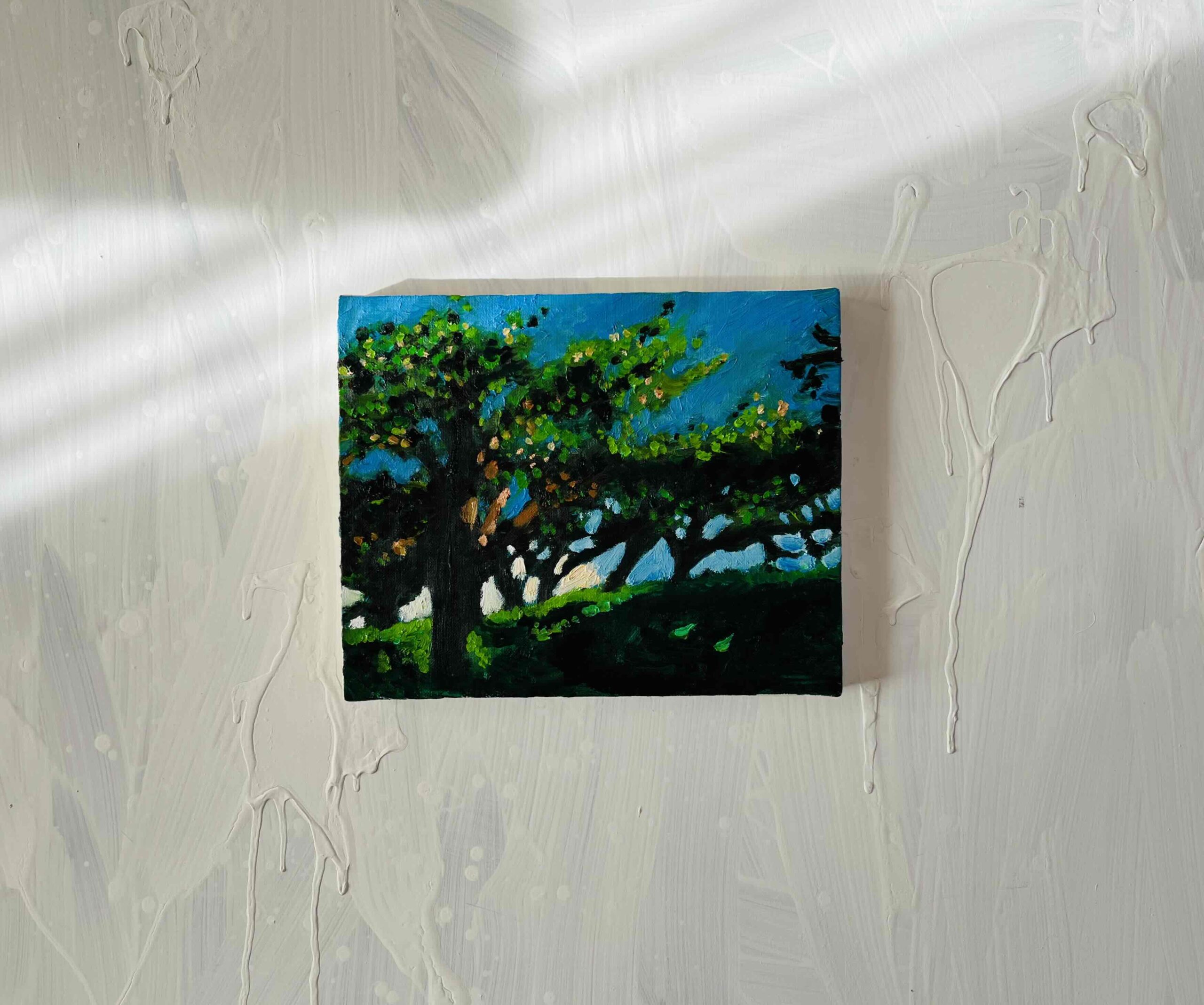 油彩画 原画「近所の風景 堤防」アート 絵画 22×27㎝ F3