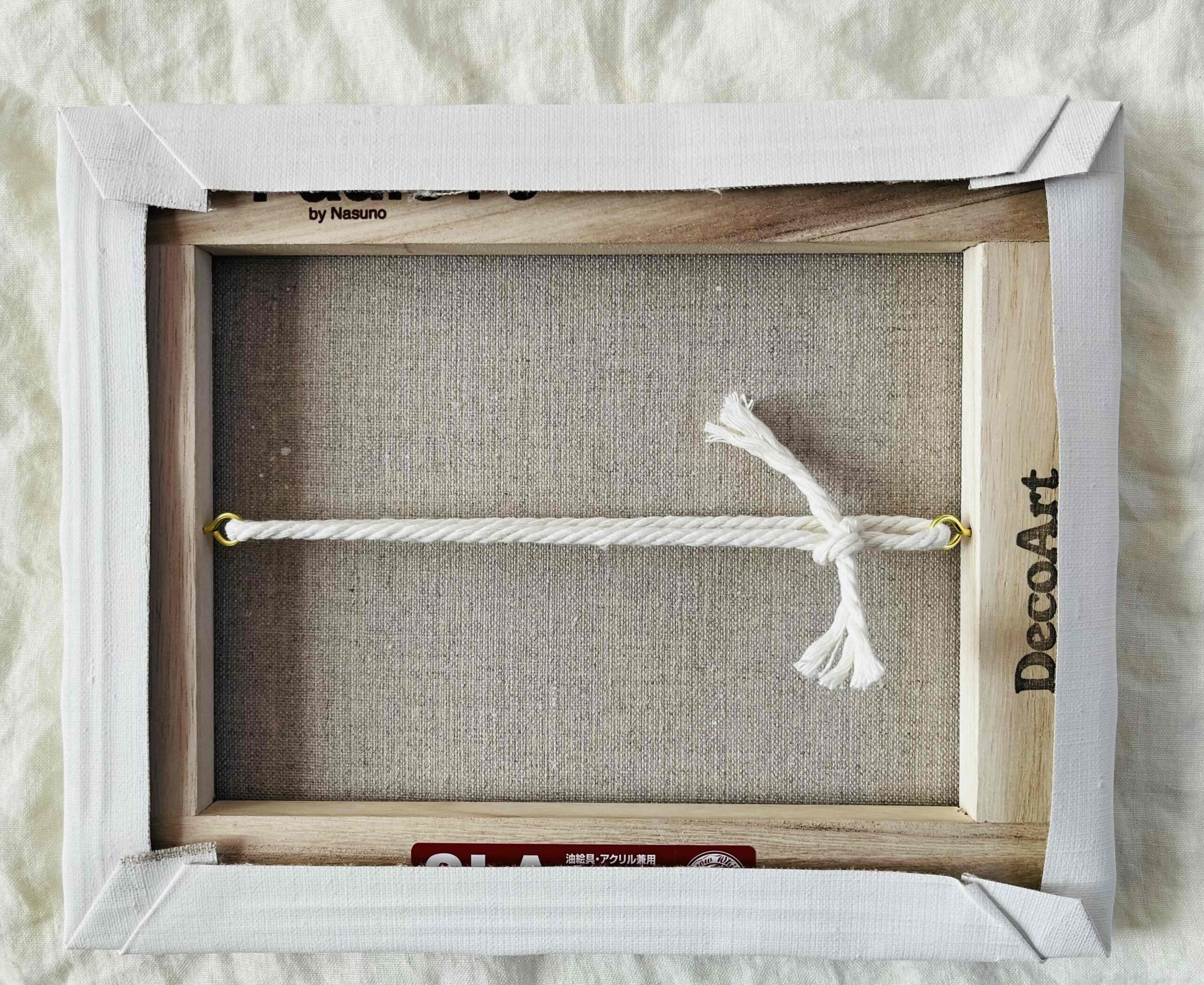 絵画の裏面には紐が取り付けてありますので、そのままでも飾れます。