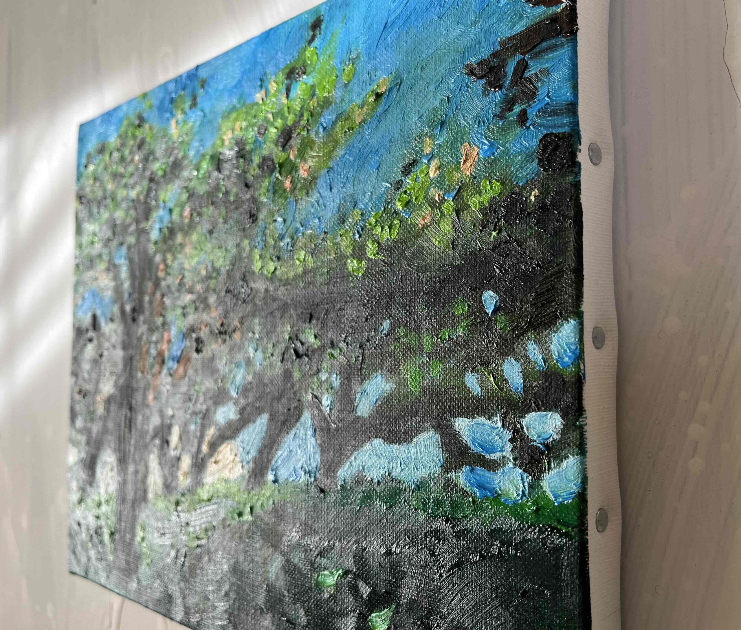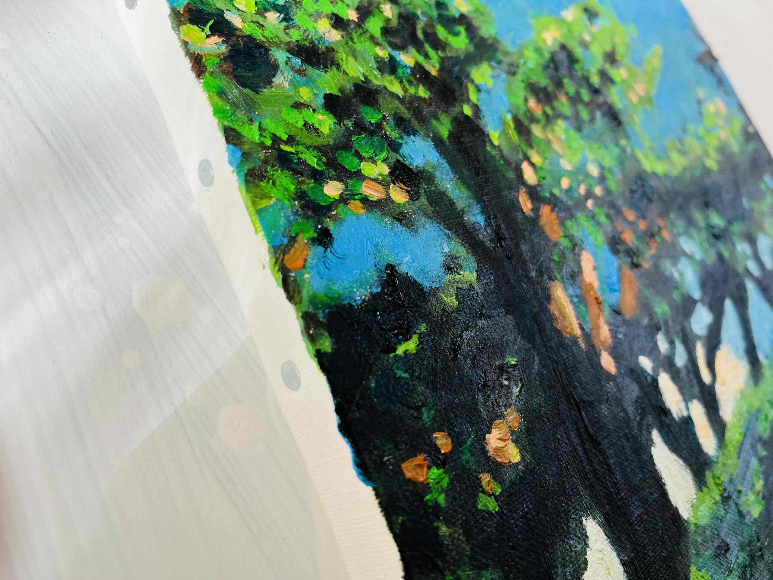 There is a string attached to the back of the painting, so you can hang it on the wall as soon as it arrives.
