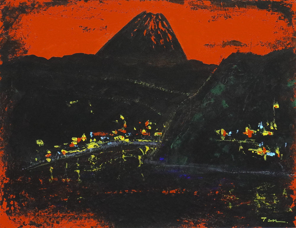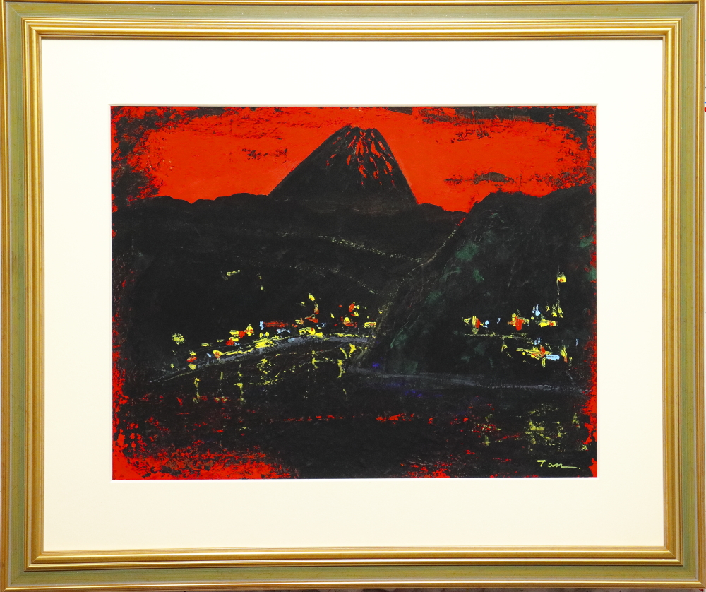 「黒富士」(NO.2530) / 6号F / ケント紙にアクリル絵の具不透明 / 額付きー額は取り寄せになりますので1週間ほどお待ち願います(年末年始除く) / 安本太ん 芸大卒 / 画像をクリックすると拡大画像になります