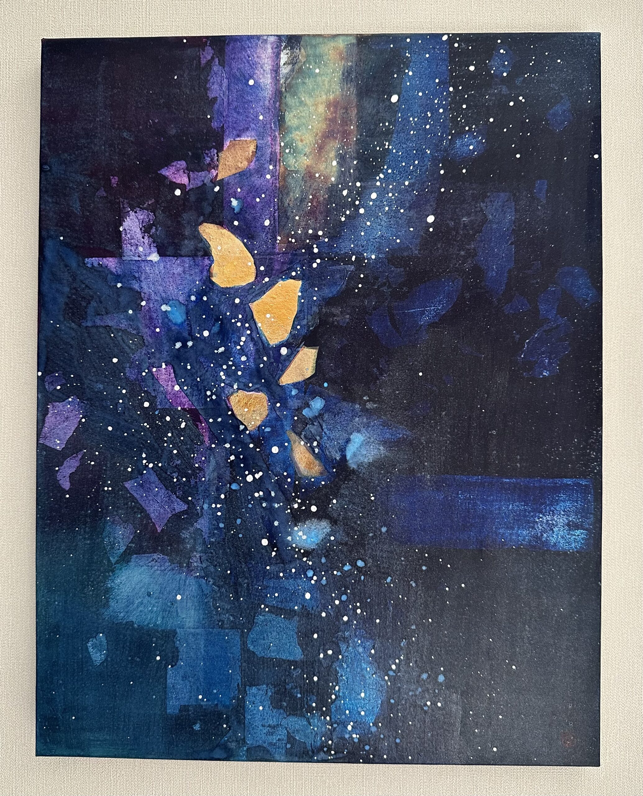 子どもの頃に畦道で摘んだ草花の色、鏡のような静かな海の色、名残惜しい夕日の色…。岩絵具の美しい色の粒子を使うことで、いろいろな色を表現できそうな気がして、日本画制作を始めました。