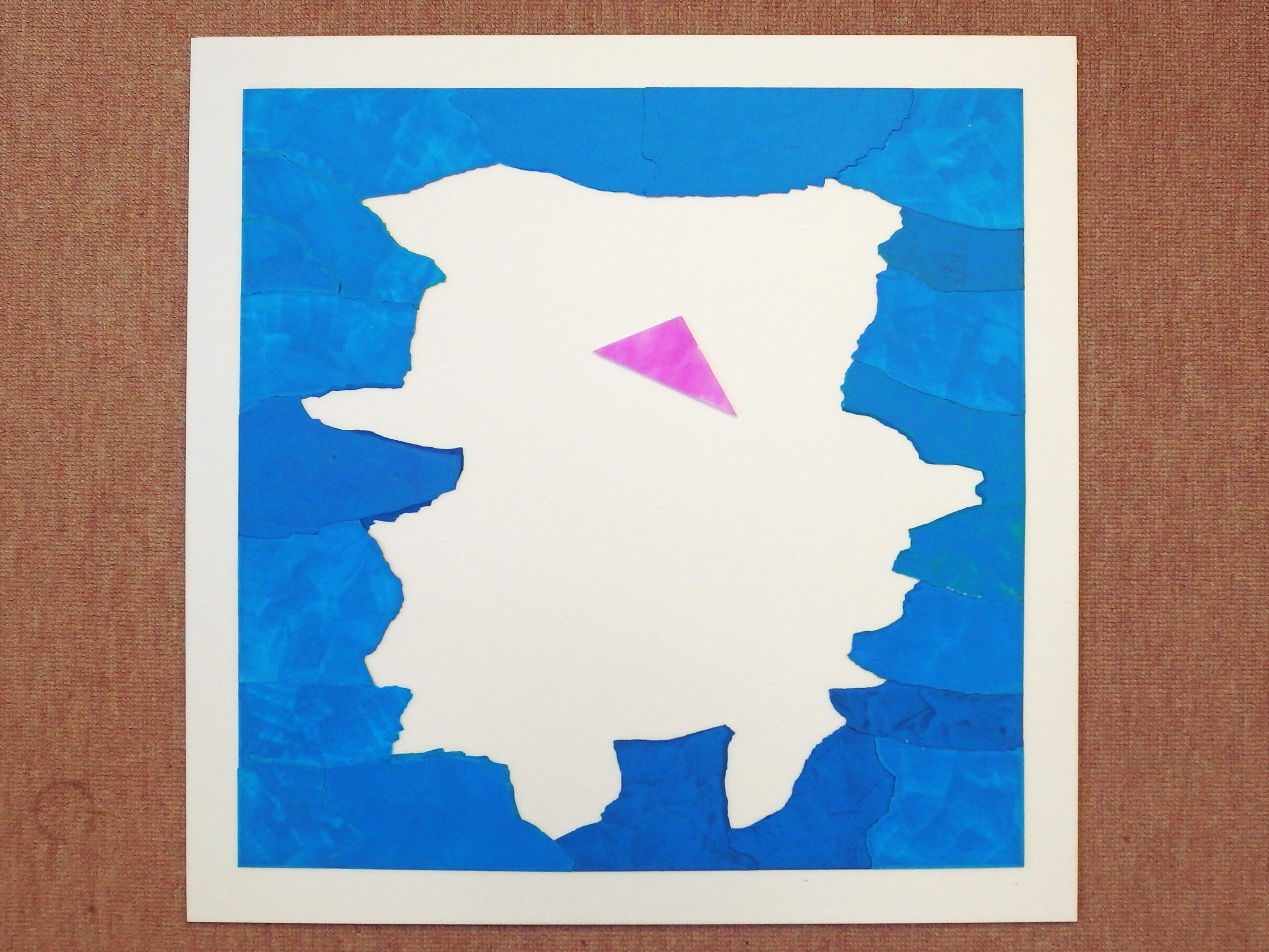 天然素材の和紙に膠を使うのが「日本画」の常識ですが、あえて人工素材を使っています。