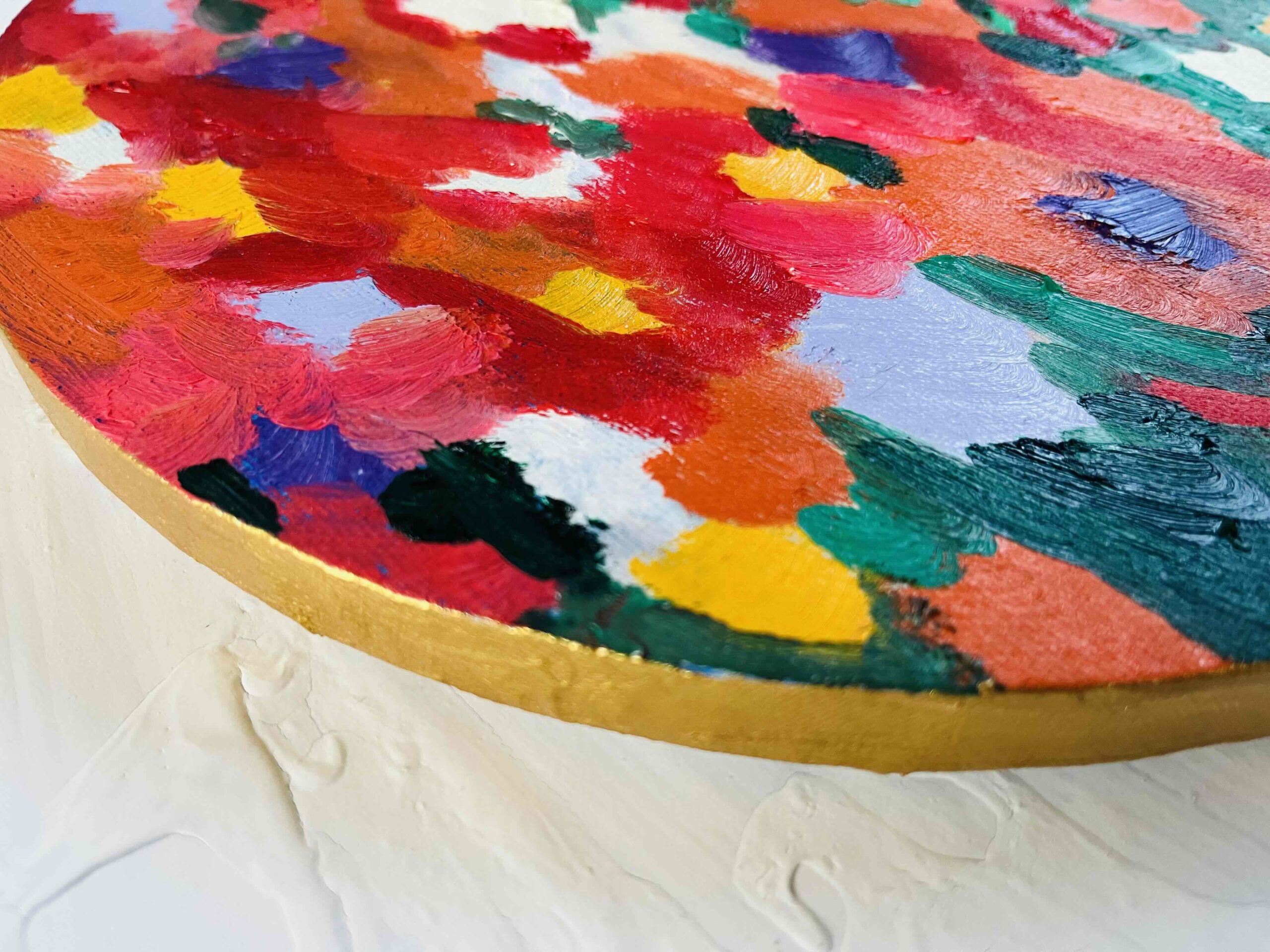 高品質な油彩絵画『Wild Flowers 2025』は、丸形キャンバス直径20cmのアートパネルです。