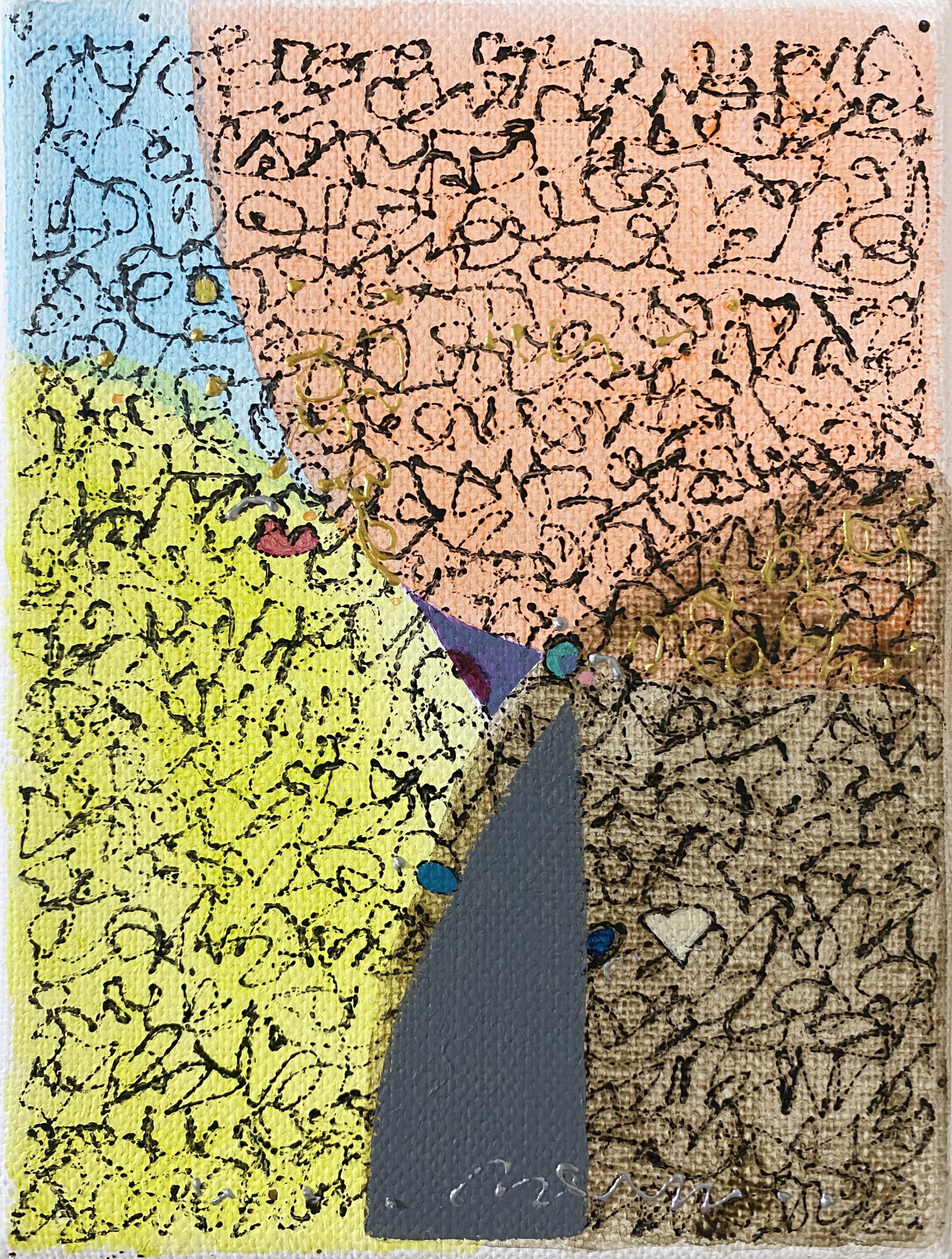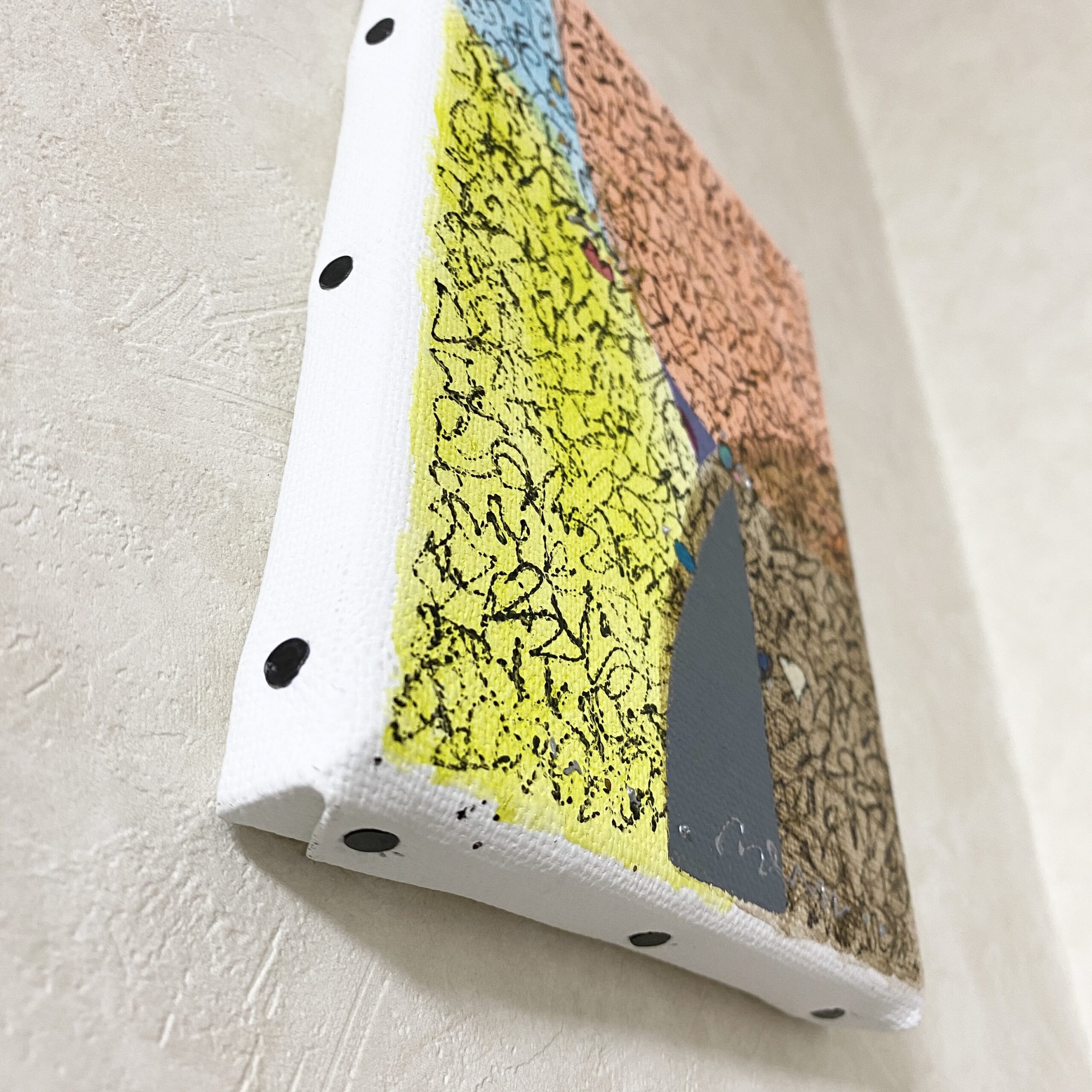 学生時代、染色技法、アクリル画で、主に幾何・抽象表現の作品を制作。