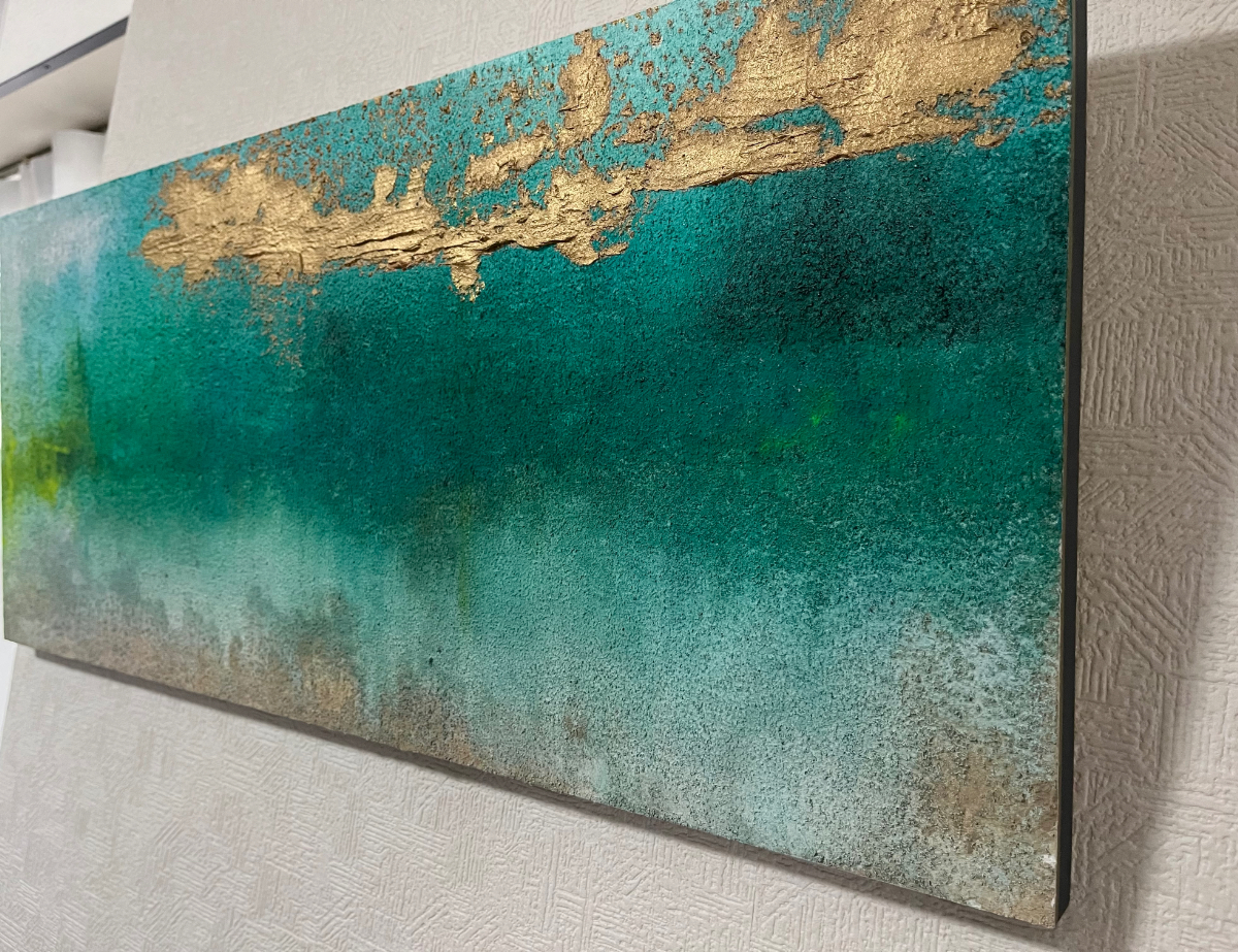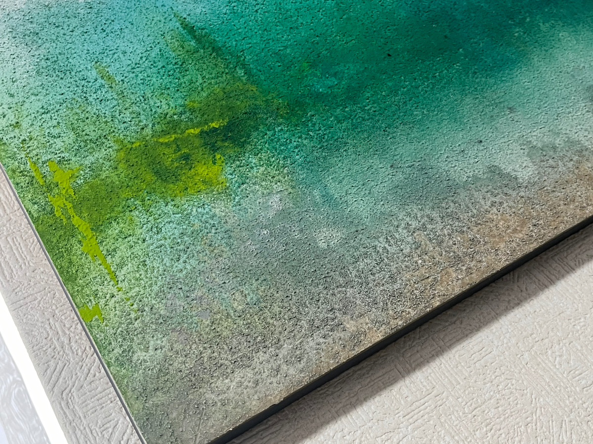※作品詳細 木製パネル アルコールインクアクリル モデリングペースト 珪藻土 保護スプレー 重量685g