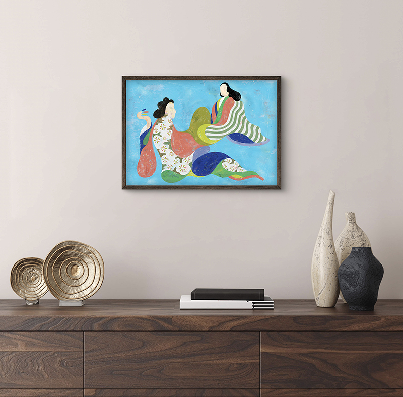 浮世絵を違うカタチで表現出来ないかをテーマに描いた作品。こちらは額装での販売となります。尚、サイズは適度な大きさでの販売になりますが、デジタル作品につき可能な限りサイズ変更が可能です。価格等は変動致しますがご相談ください。
