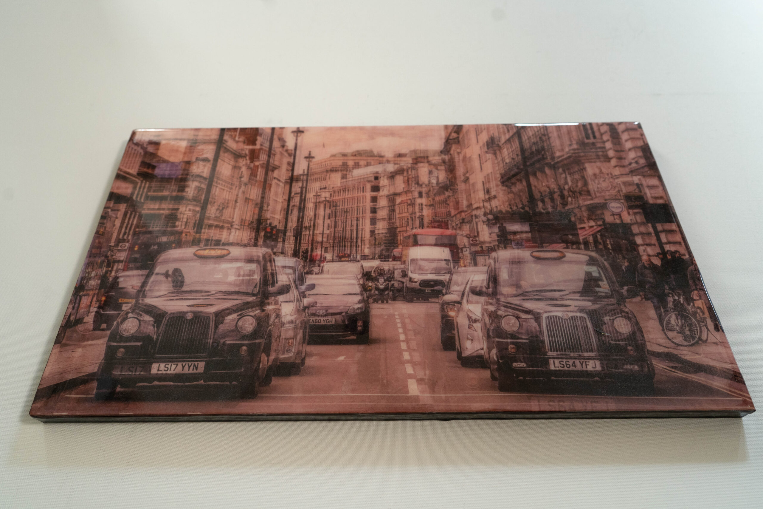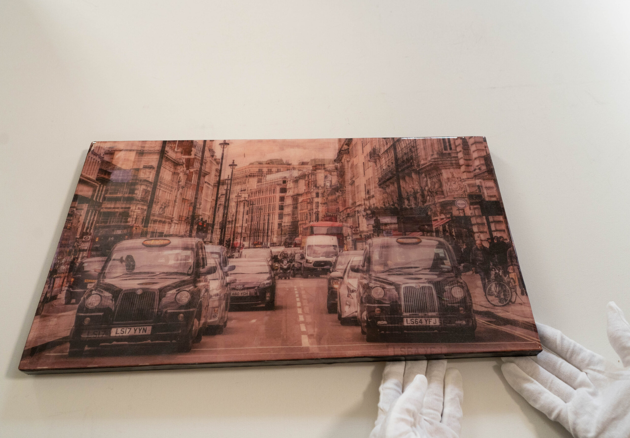 ロンドンの街並みをウッドパネルに直接表現した作品。ロンドンの独特なお洒落な街並みをお楽しみ頂けます。