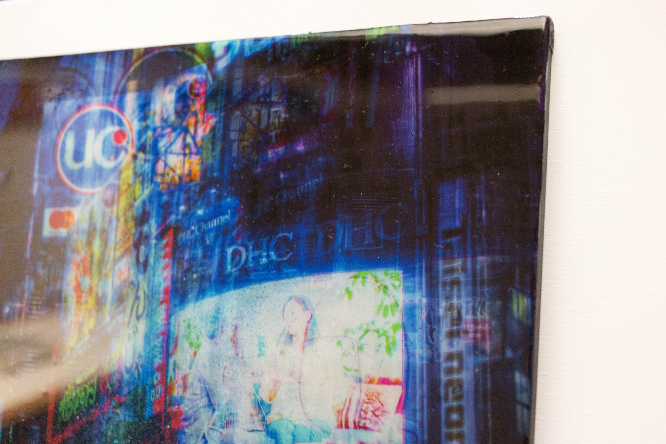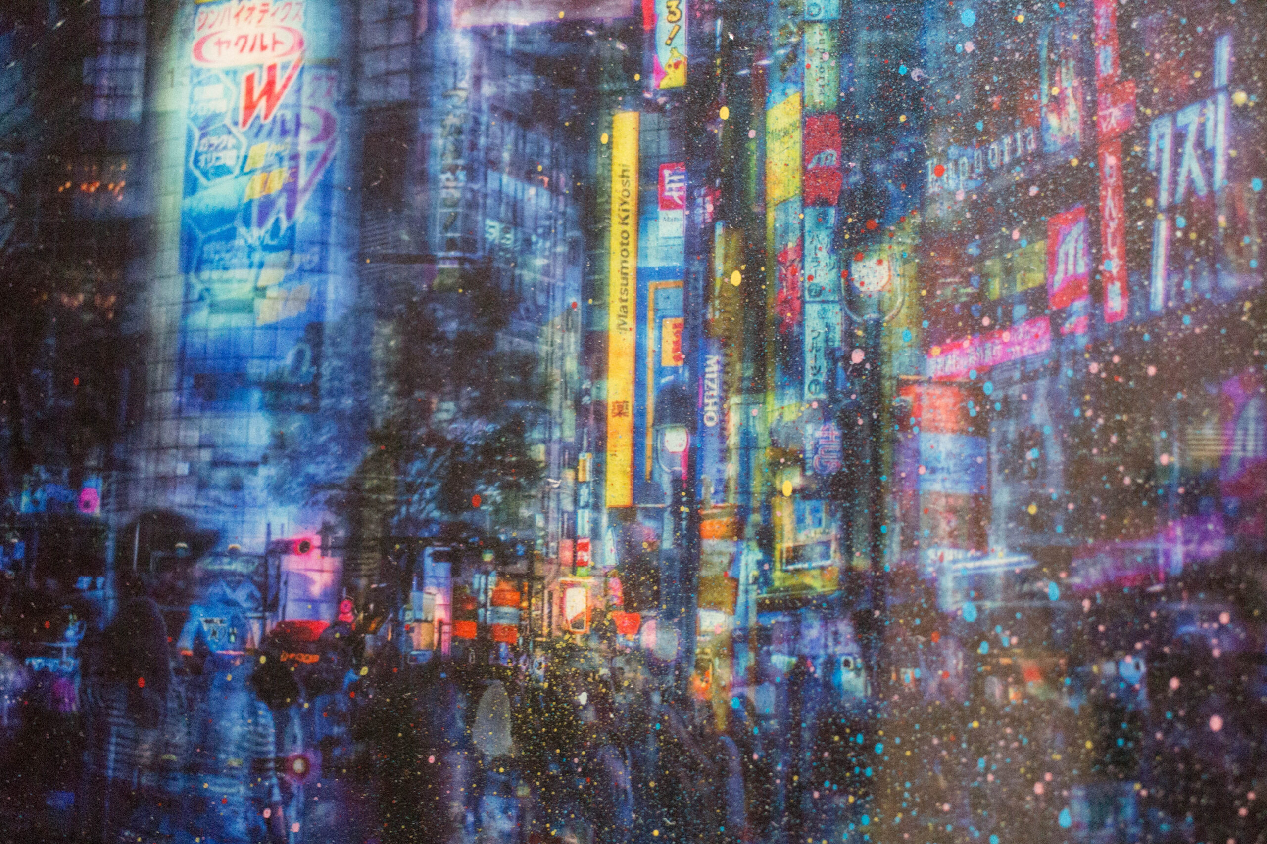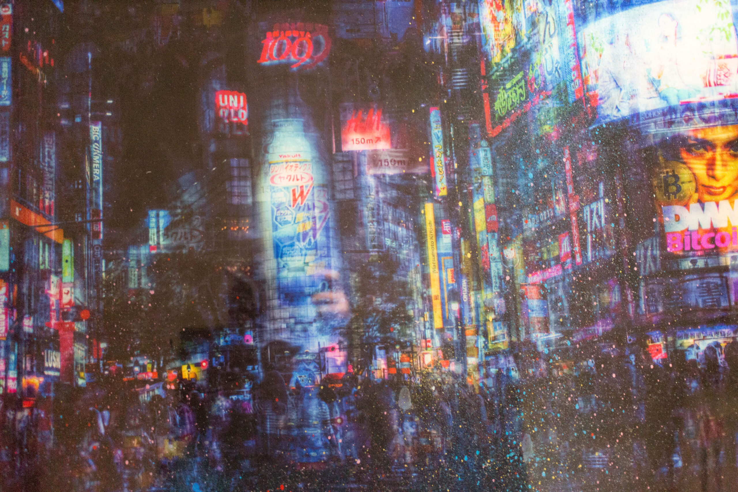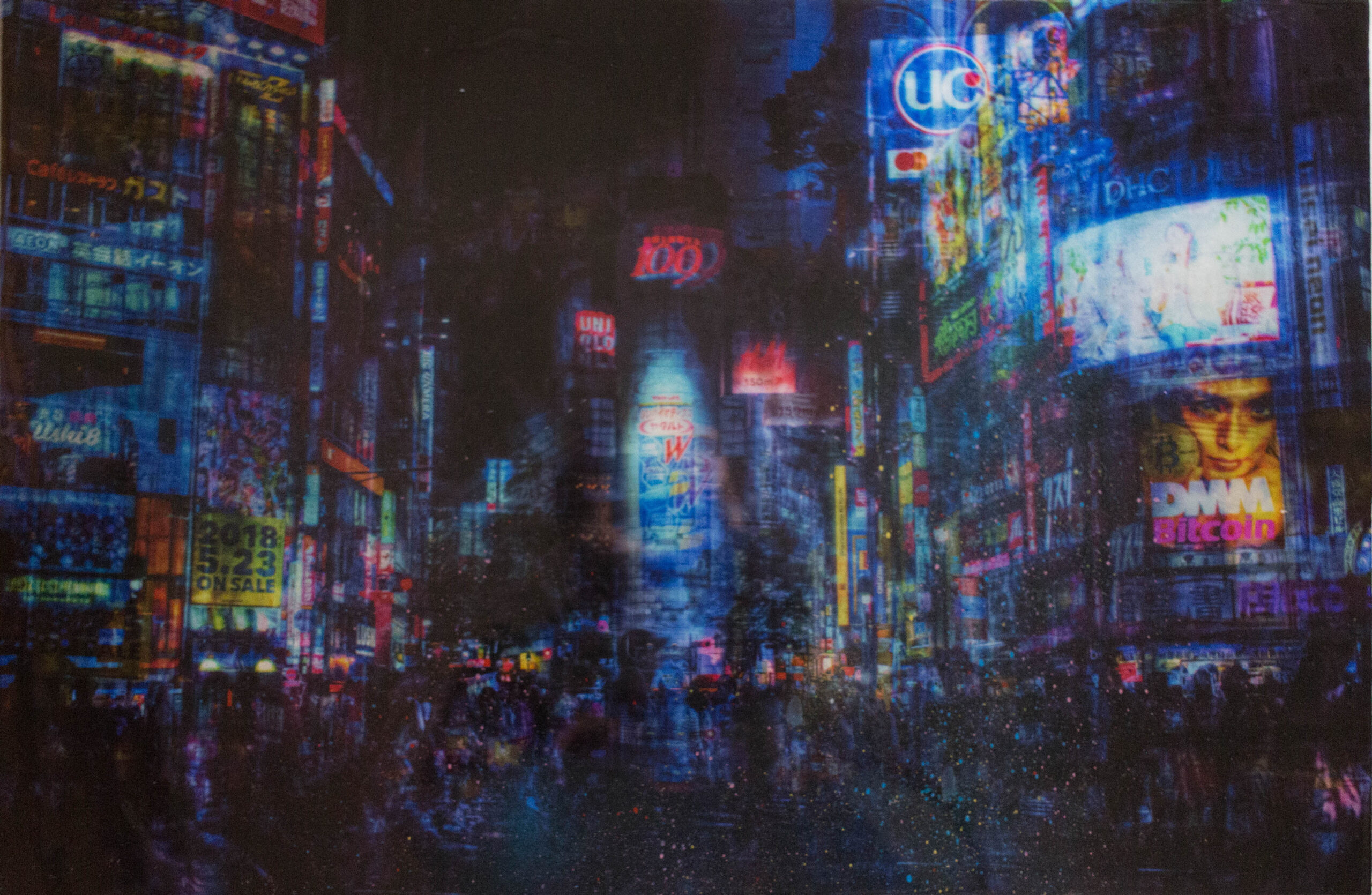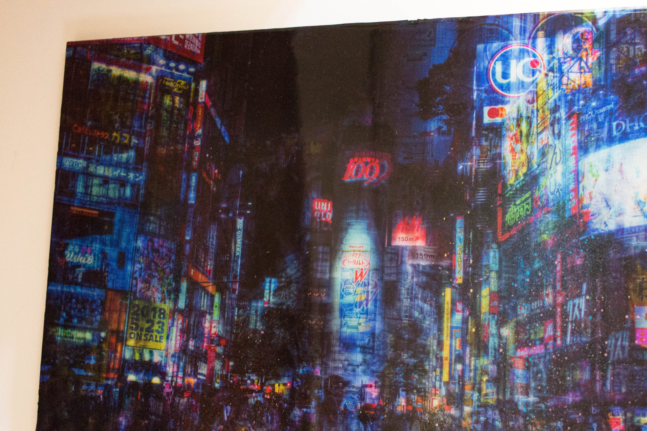 渋谷にあるスクランブル交差点をウッドパネルに直接表現した作品。日本を題材に制作した初めての作品で、渋谷スクランブル交差点の街並みがポップに色鮮やかに様々な技法により表現されています。