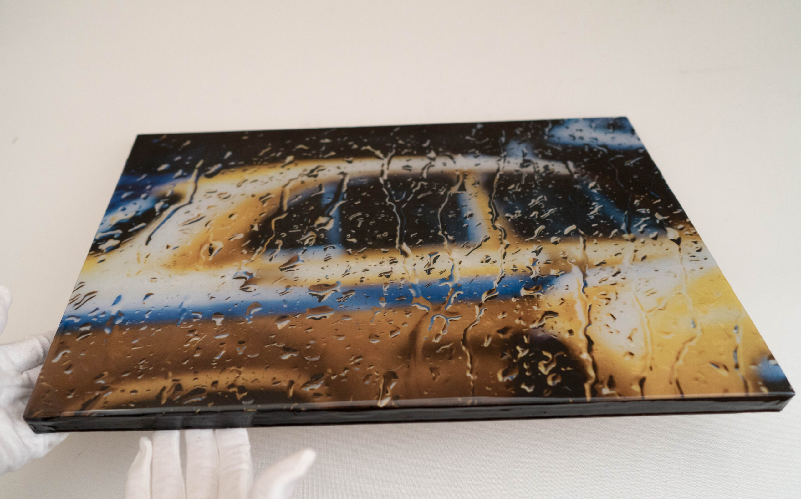 ウッドパネルをベースに制作されており、表面にはガラスの様なとても美しい光沢に仕上げております。原画ならではの唯一無二のTOMOYAオリジナルアート作品をお楽しみいただけます。
