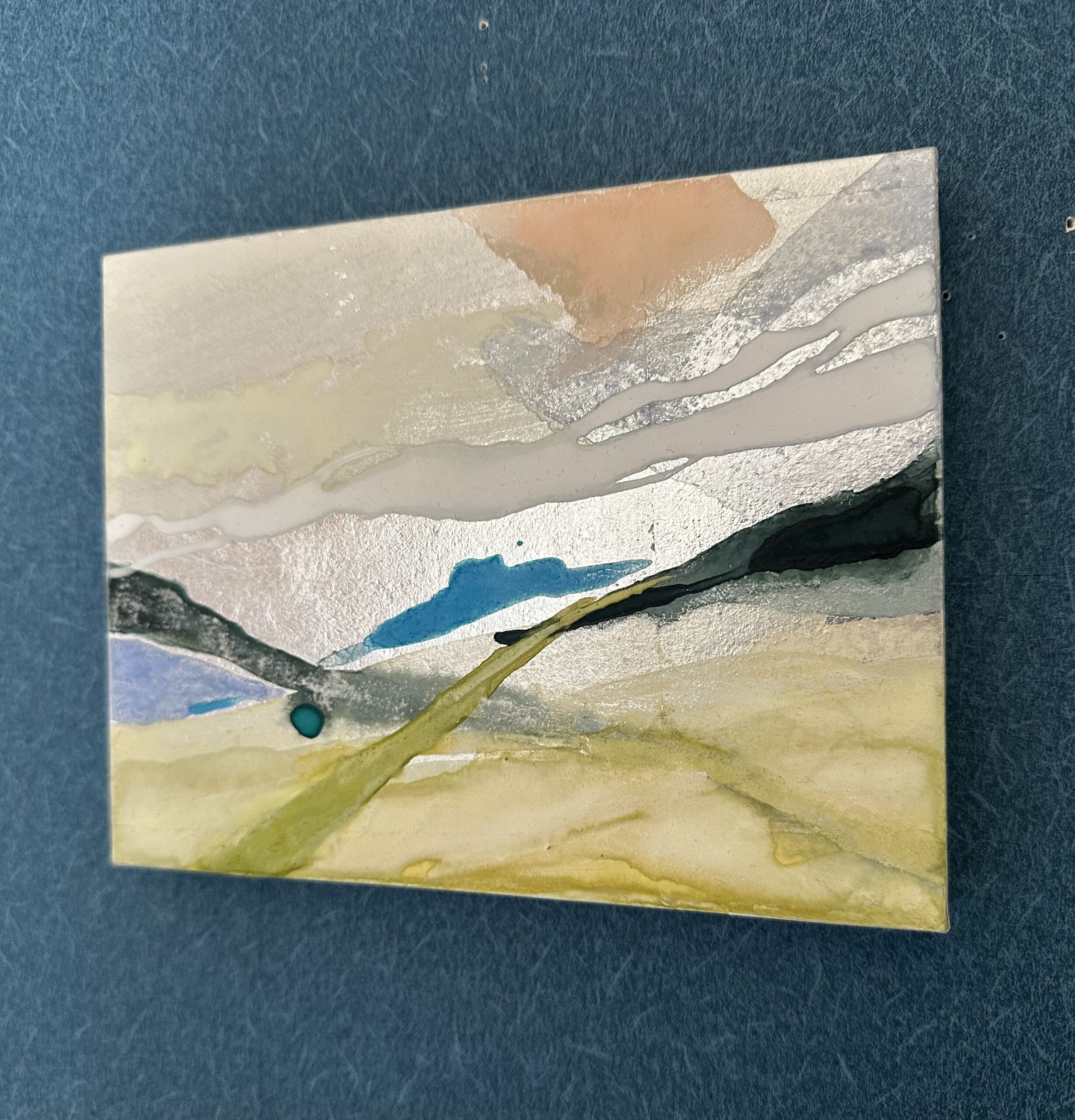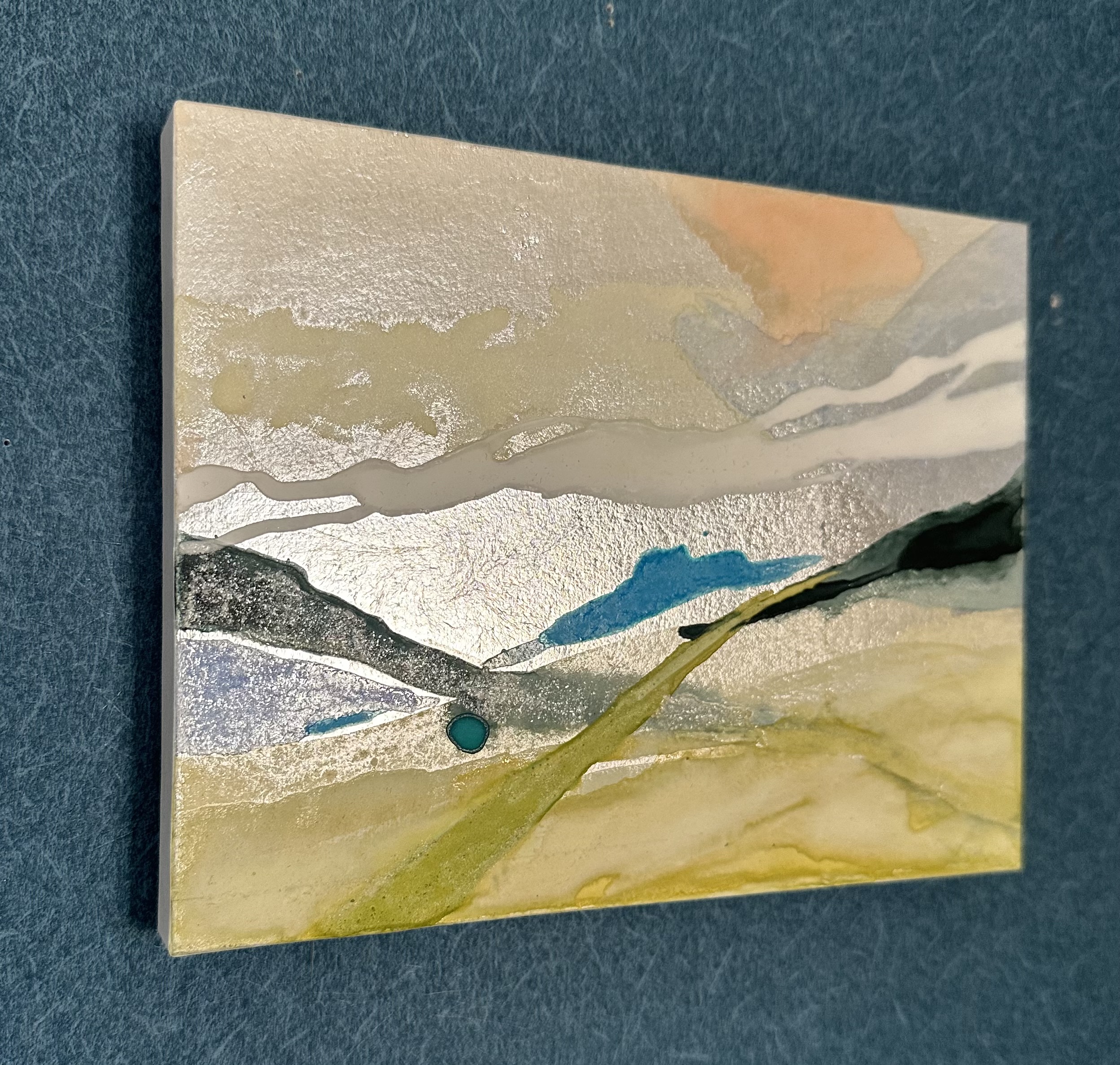 箔を使用した作品は、光のあたり方によって輝き方が変わります。日中の窓から入る自然光、夜の照明の光など、光の違いにより表情がかなり変わります。また、箔の変色を抑えるためのコーティングをしておりますが、時間経過とともに少しずつ色味が変化します。その変化もお楽しみいただけますと幸いです。