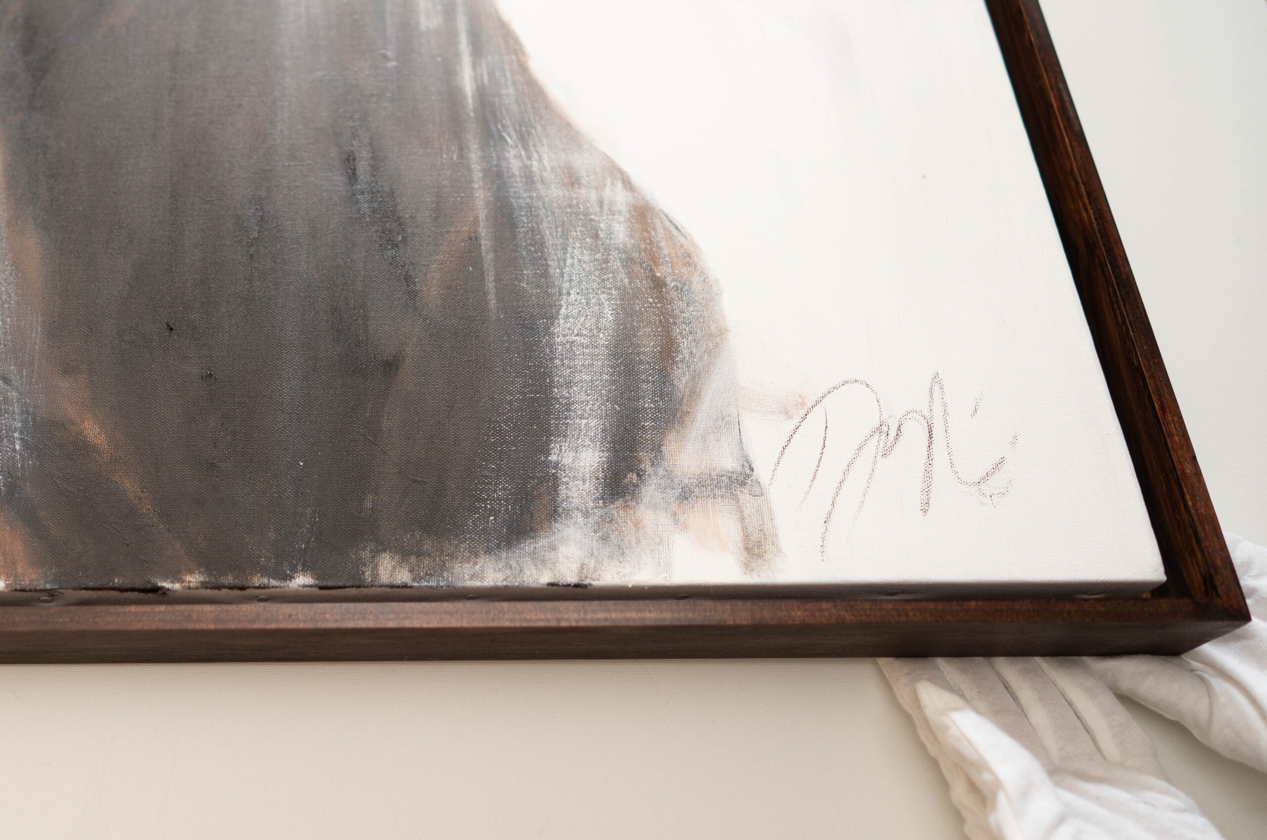 見た目は通常のシンプルな額と変わりません。大型作品の為、通常よりも軽く、安全に展示でき作品をより引き立ててくれます。