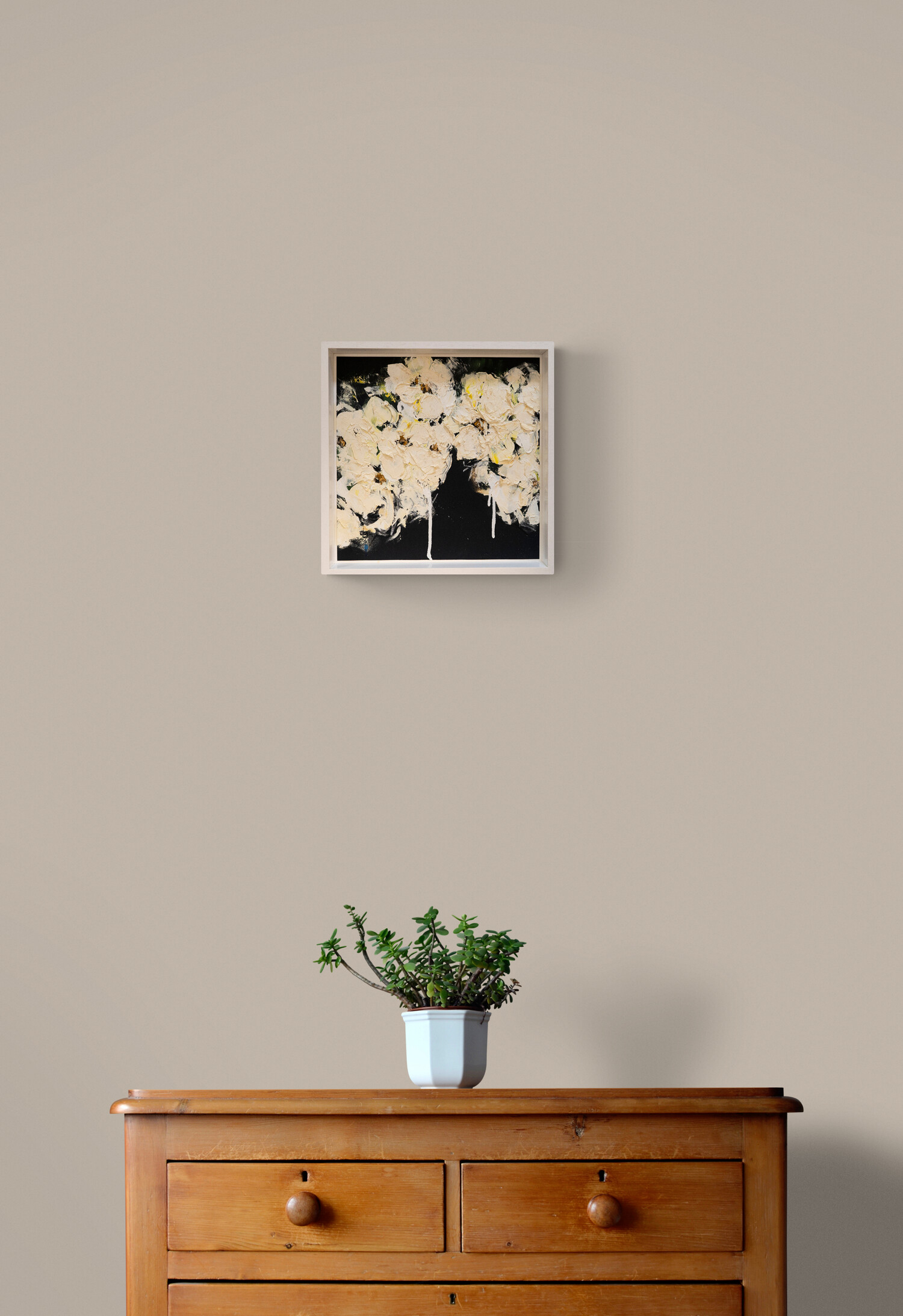 作品はボックスフレームに額装してありますのですぐにお飾り頂けます。