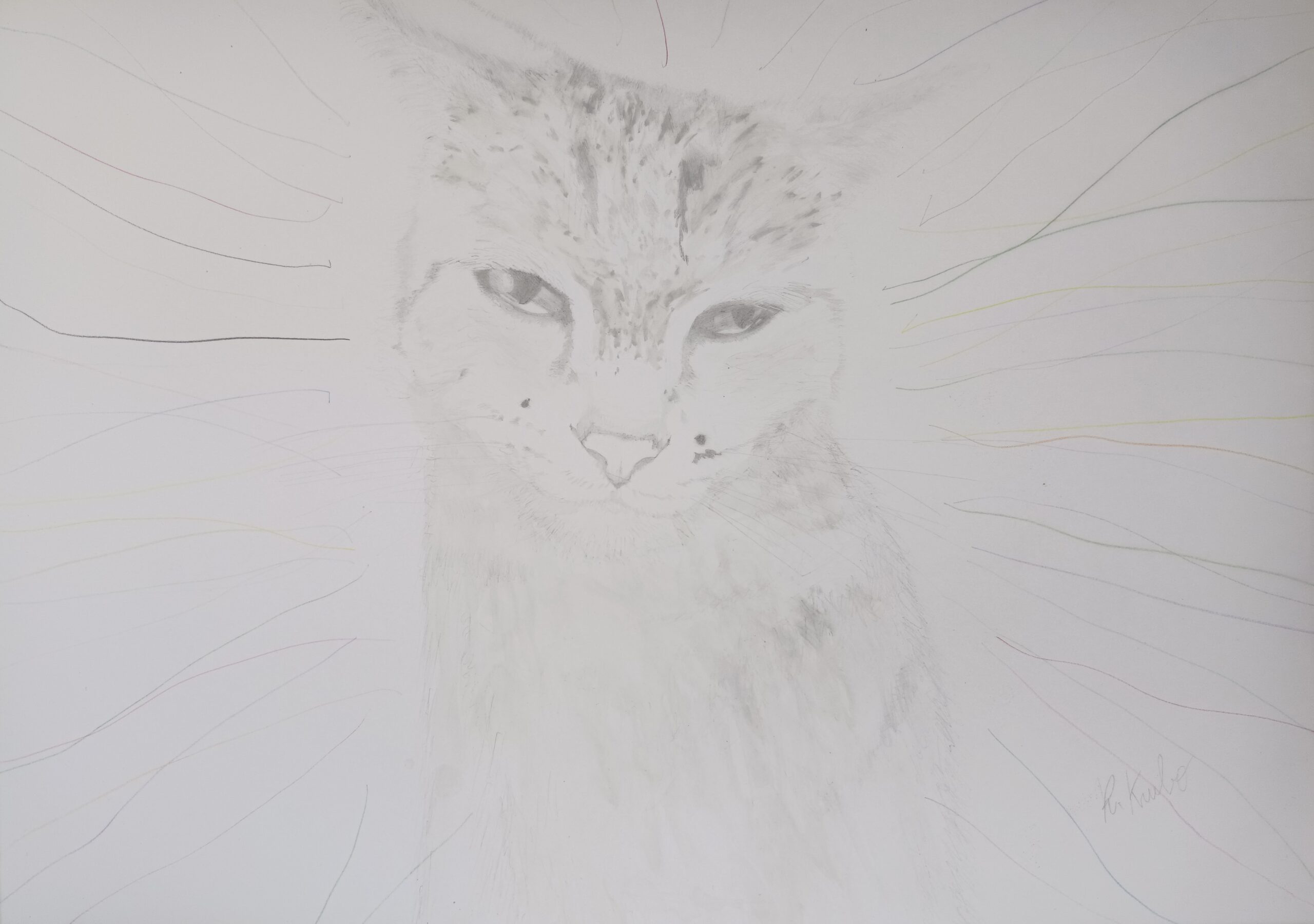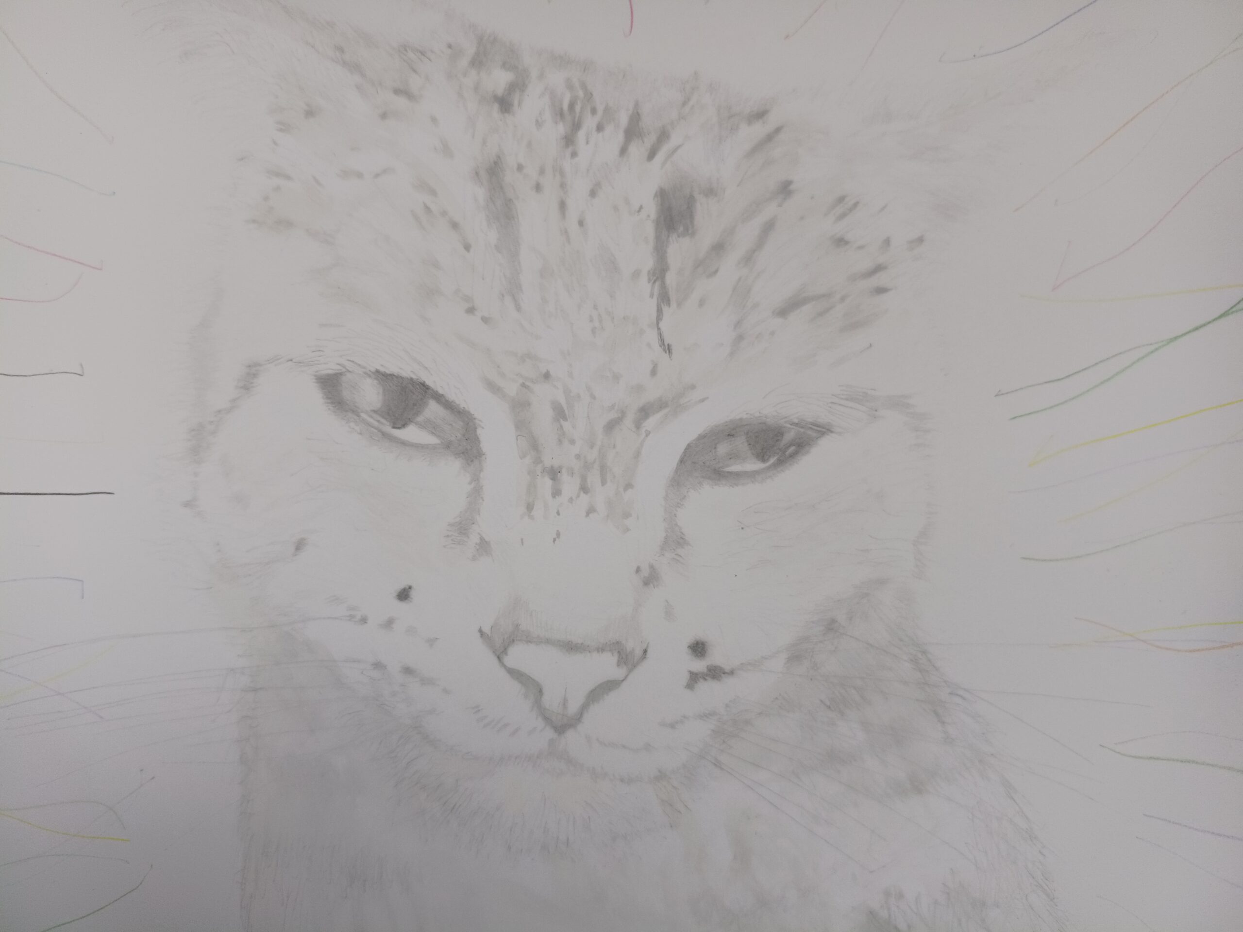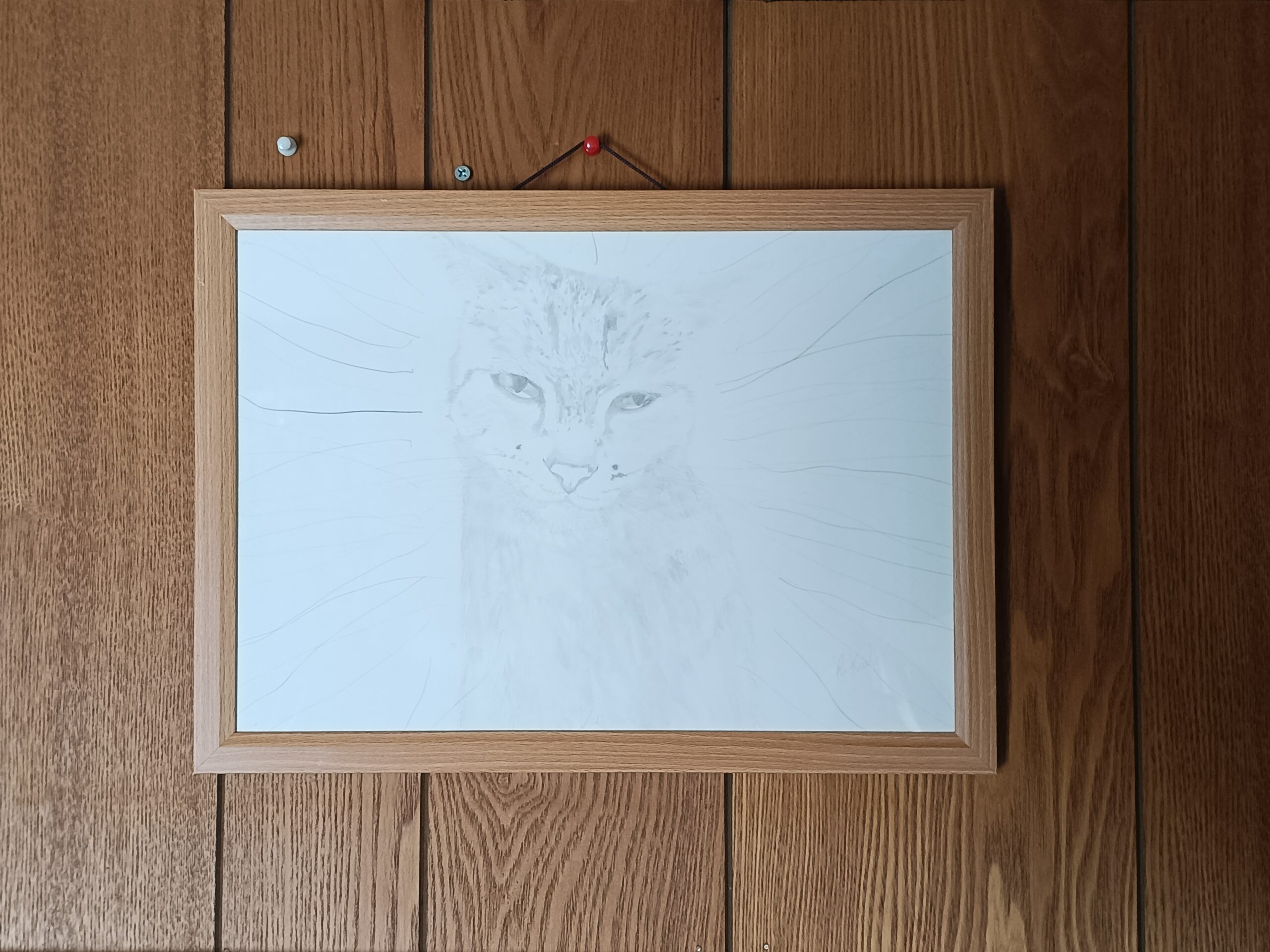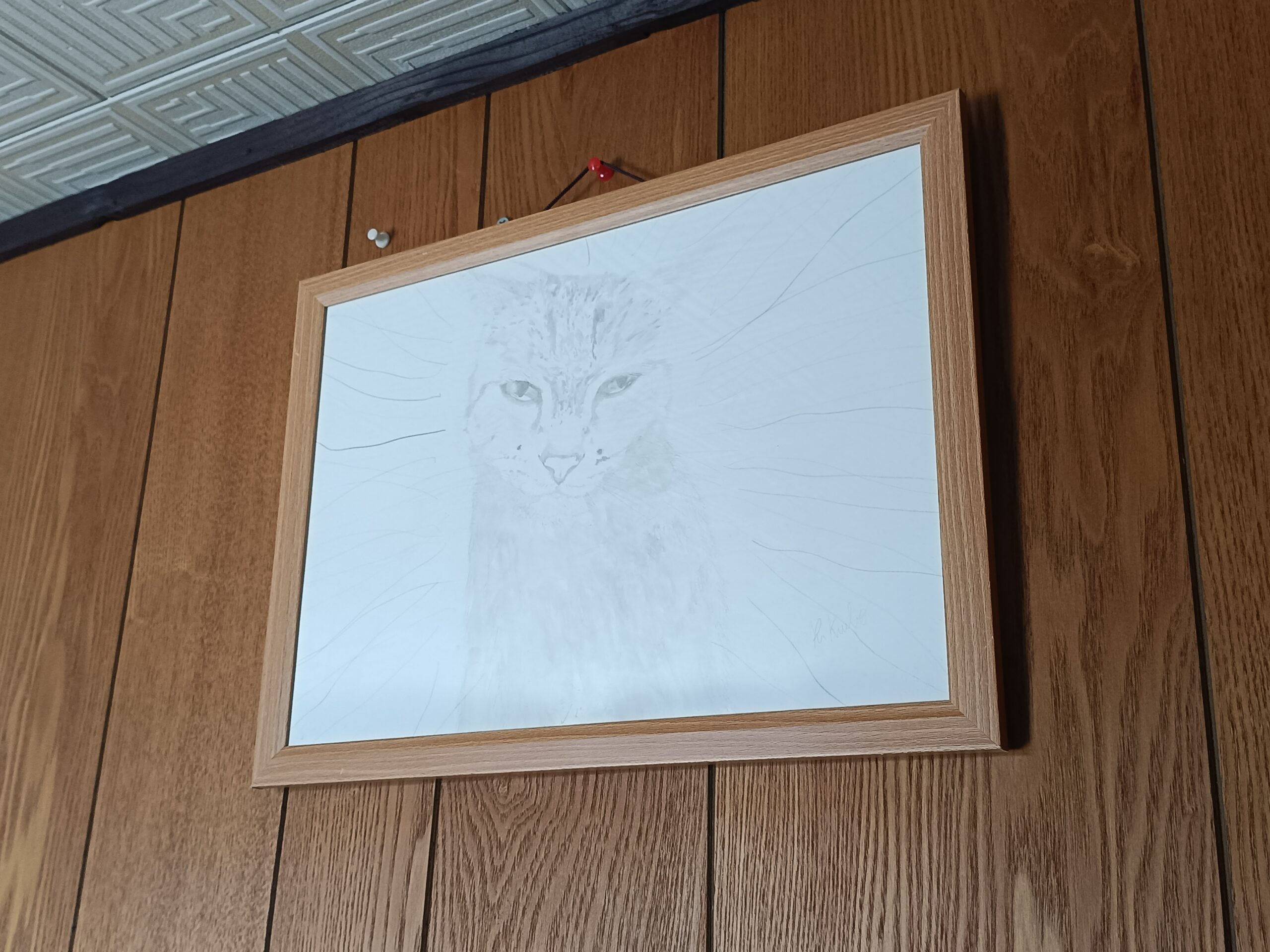 この絵では、写実性とポップアートを融合させ、猫の静かなまなざしの強さを表現しました。鉛筆と色鉛筆を用いて、繊細な質感と繊細な感情を強調し、猫の神秘的な存在を感じ取っていただけるようにしました。この作品は、穏やかでありながら力強いエネルギーをもたらし、空間に静かな内省と温かさをもたらすのに最適です。