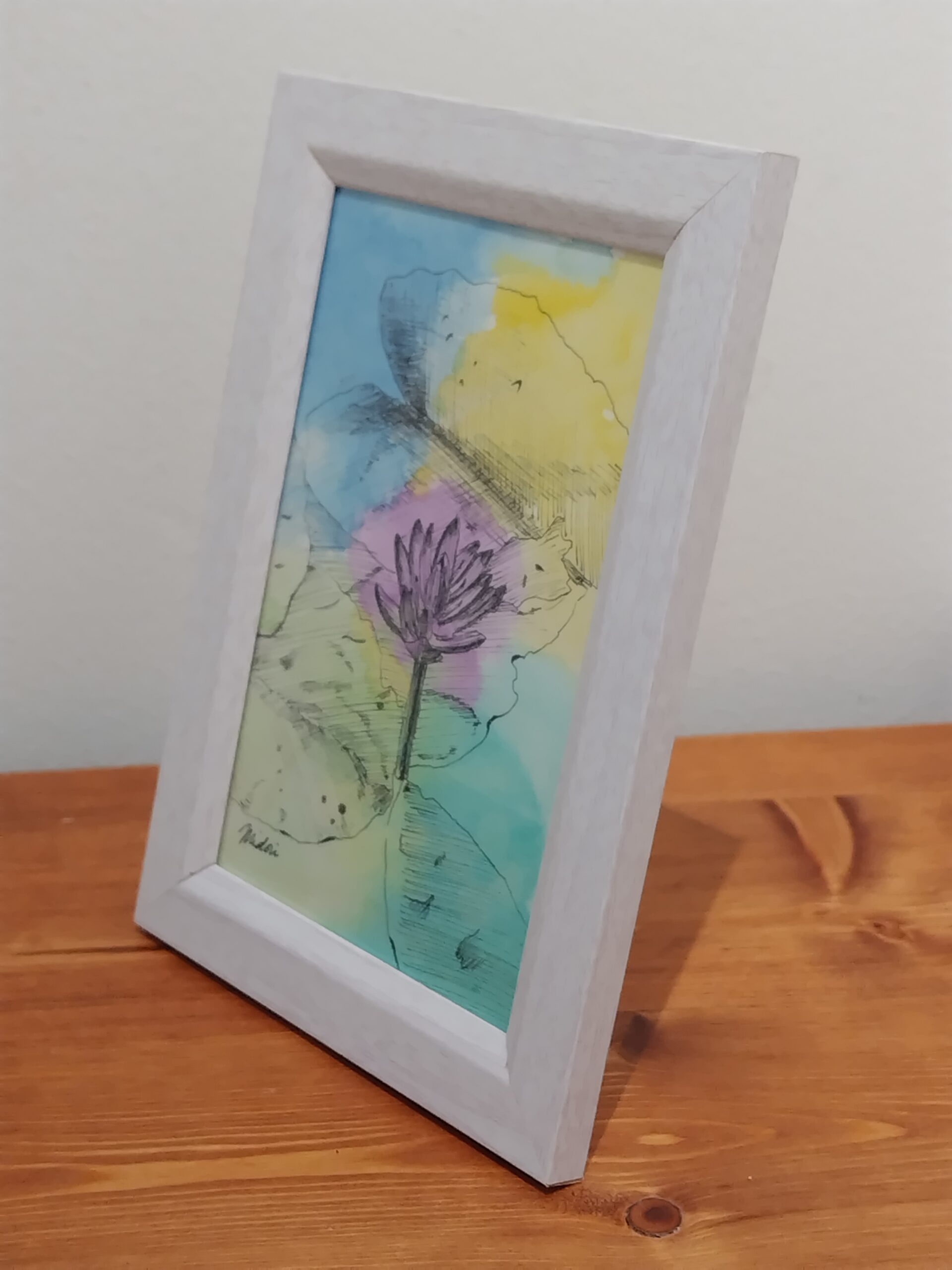 水彩の鮮やかさとペンの黒色の対比をお楽しみいただければ嬉しいです。