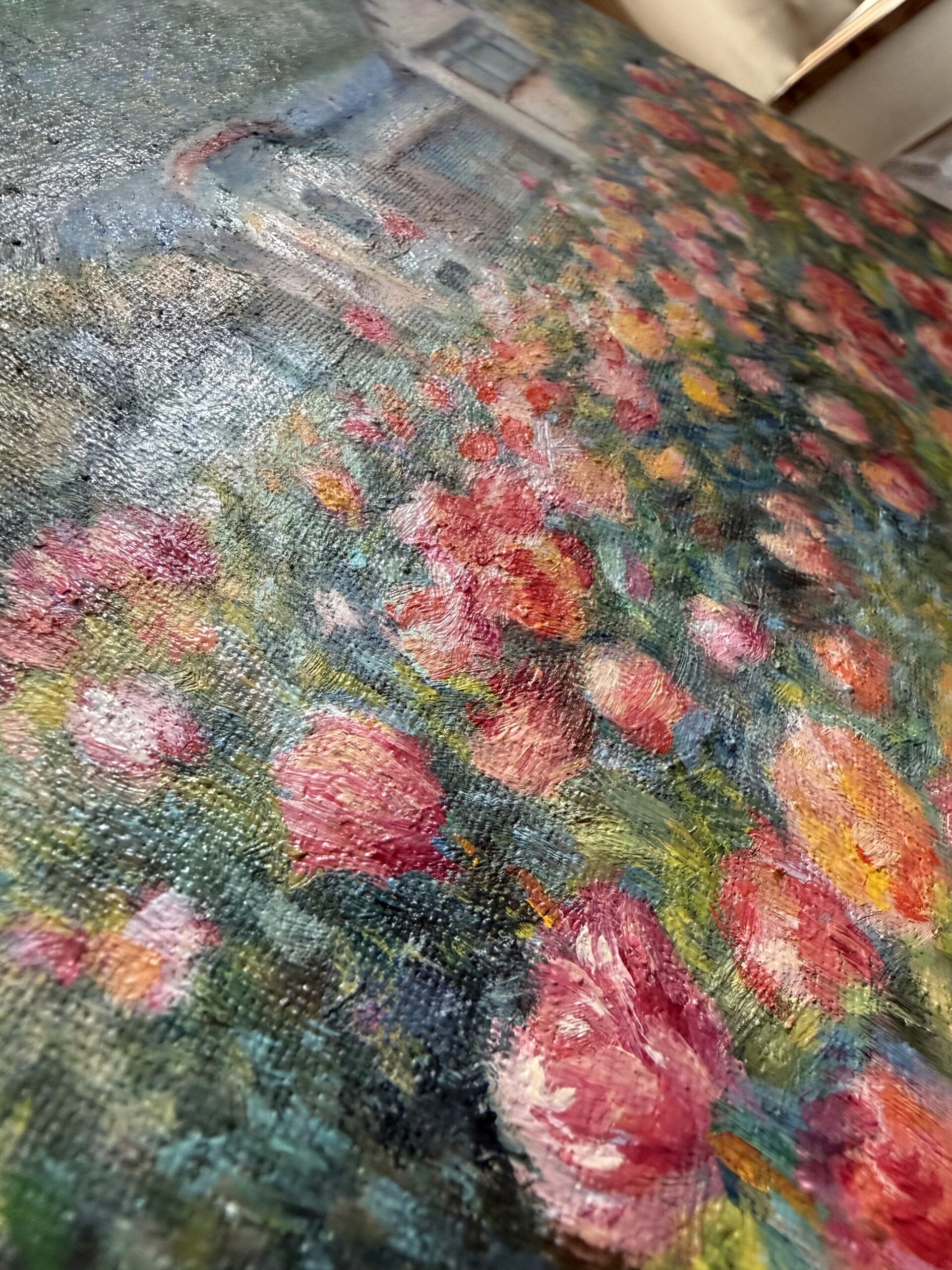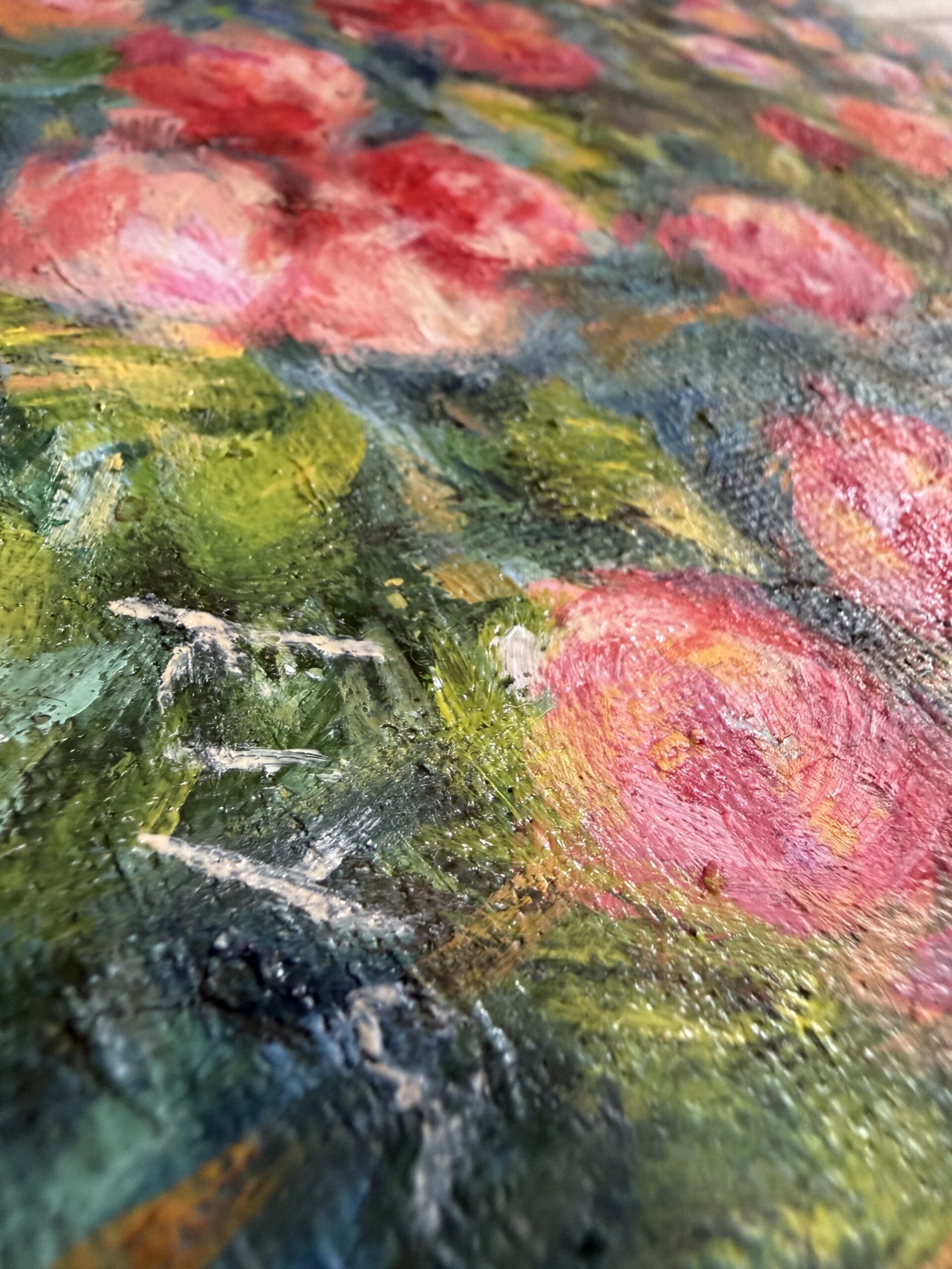 モネやルノワールを参考に描いた印象派スタイルの絵。大きさはA4サイズと同じくらいなので、場所を選ばず、また額装も様々な商品を選べる大きさです。