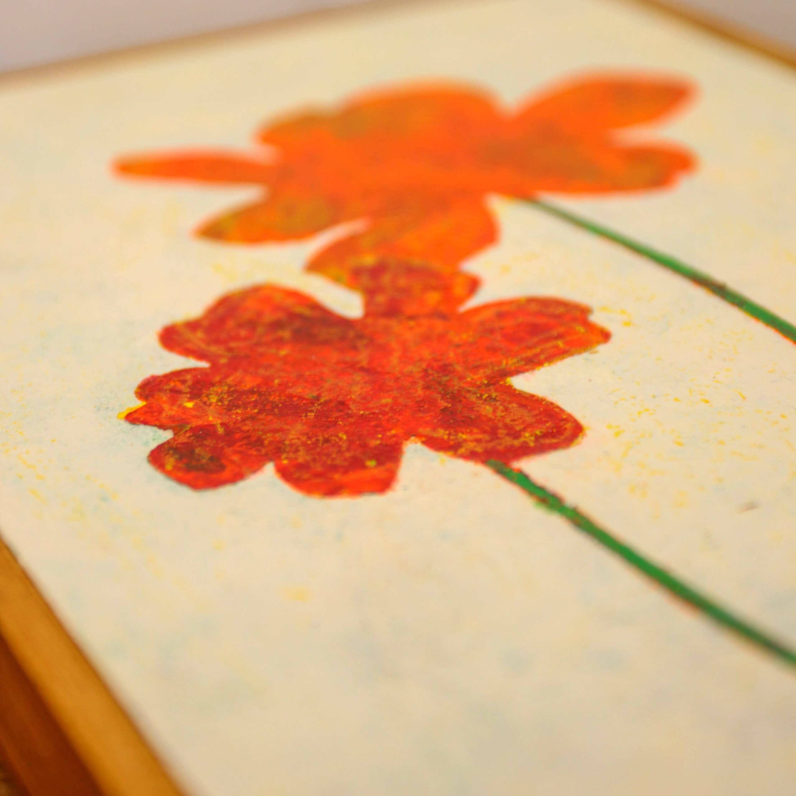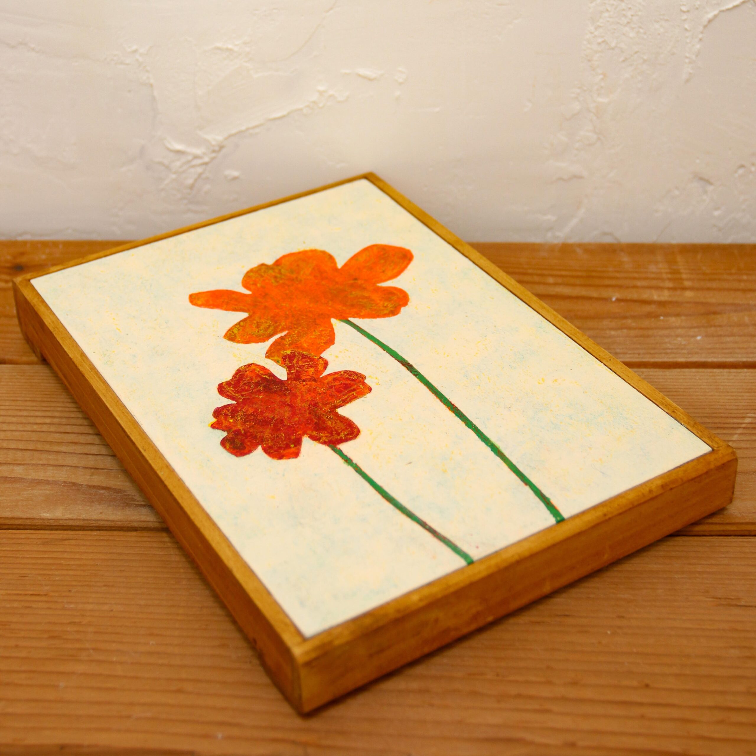 Materials: Wooden panel, acrylic paint, oil pastel