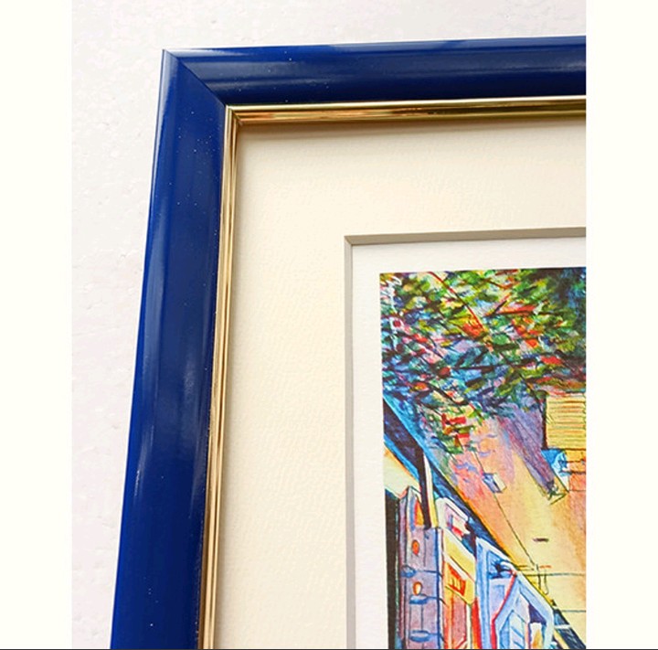 額代がかかってしまいますが 絵の具もインクも 額縁に入れてホコリや空気などをシャットアウト することによって 劣化を防ぐことができます。額縁は画面がUVカットアクリルのものと 57cm画面がPETの 額は全て日本製でございます。
