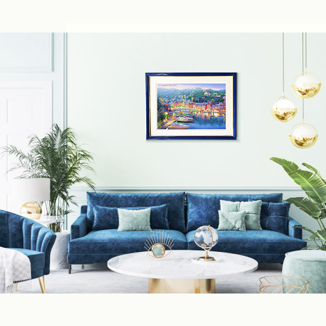 イタリアに行った時に描いたイタリアの人気リゾート地ポルトフィーノ。宝石のような夕景の絵です。海外旅行へ行った気分になって頂ければうれしいです。毎日の日常生活に遠い異国のロマンをお届けできれば。。