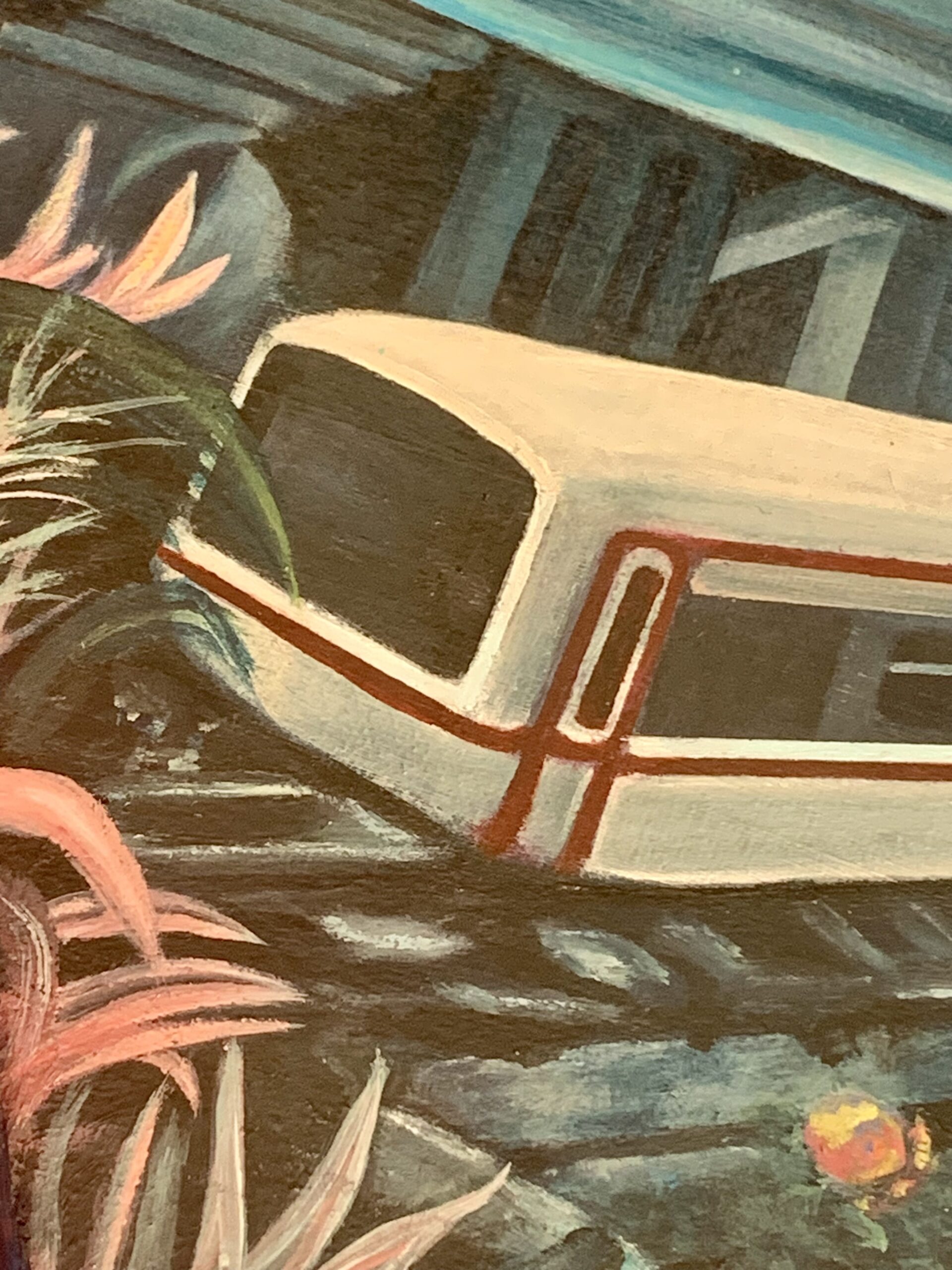 この作品は、キャンバスに油絵の具で描かれています