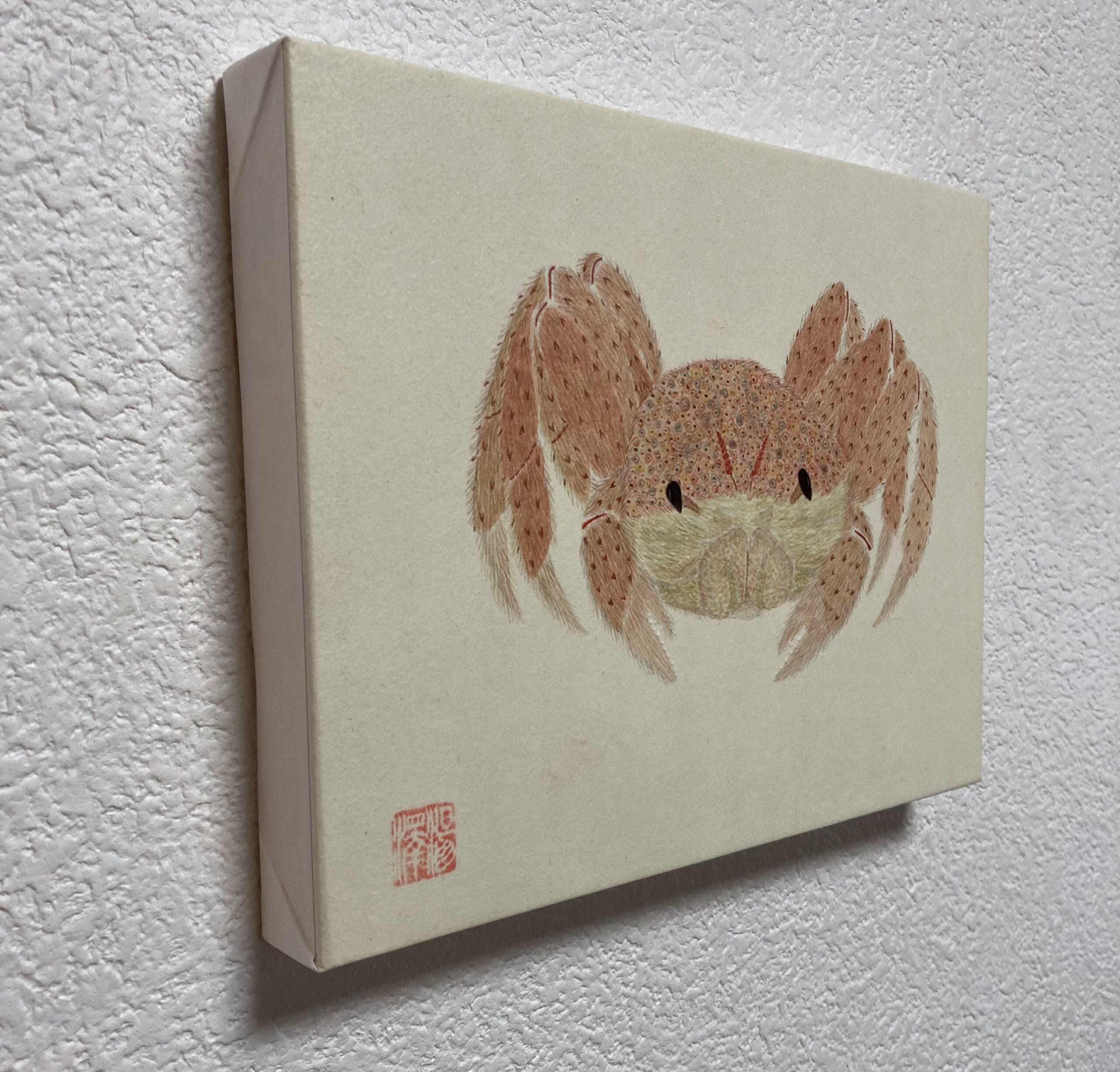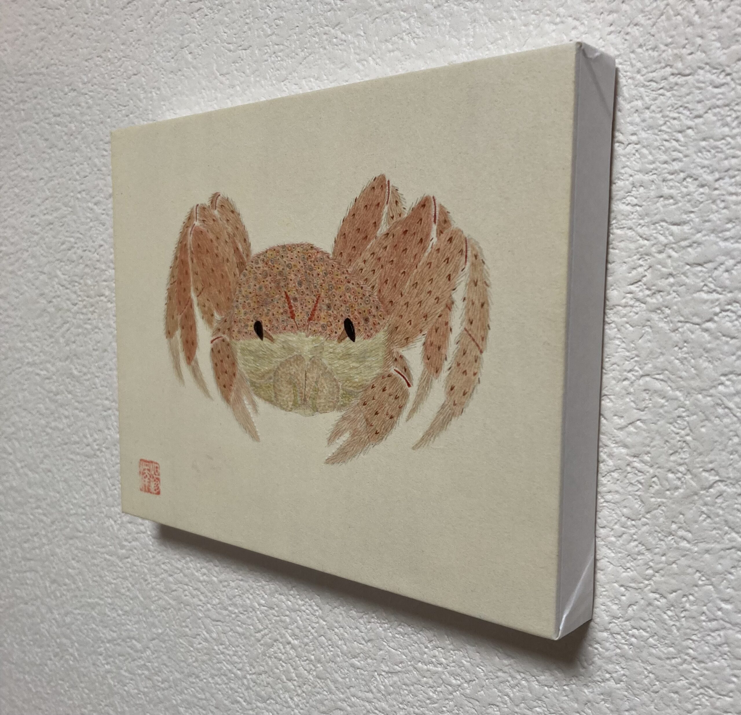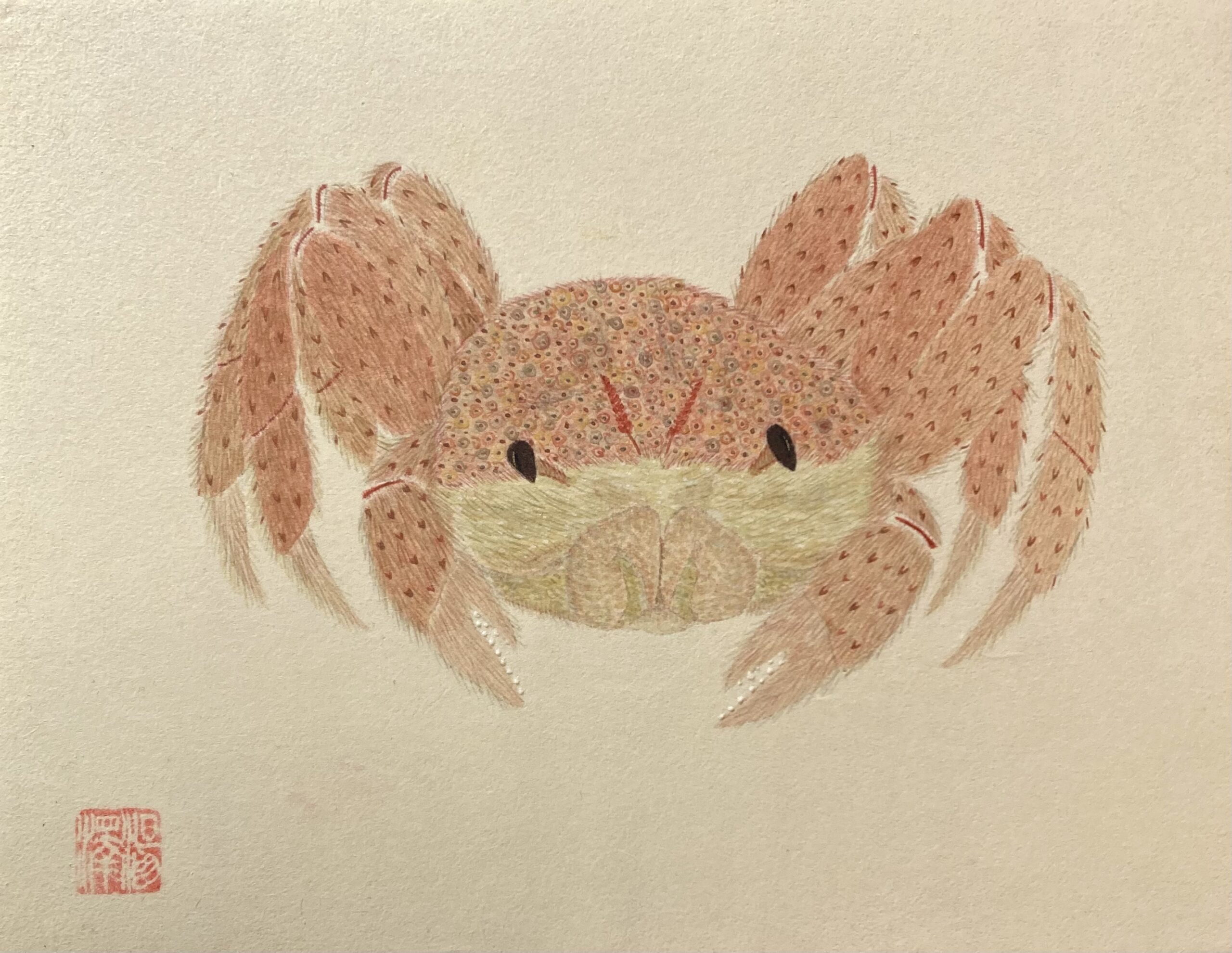 こちらの様子を伺っている毛蟹を描きました。甲羅の模様、質感を感じて頂ければ幸いです。