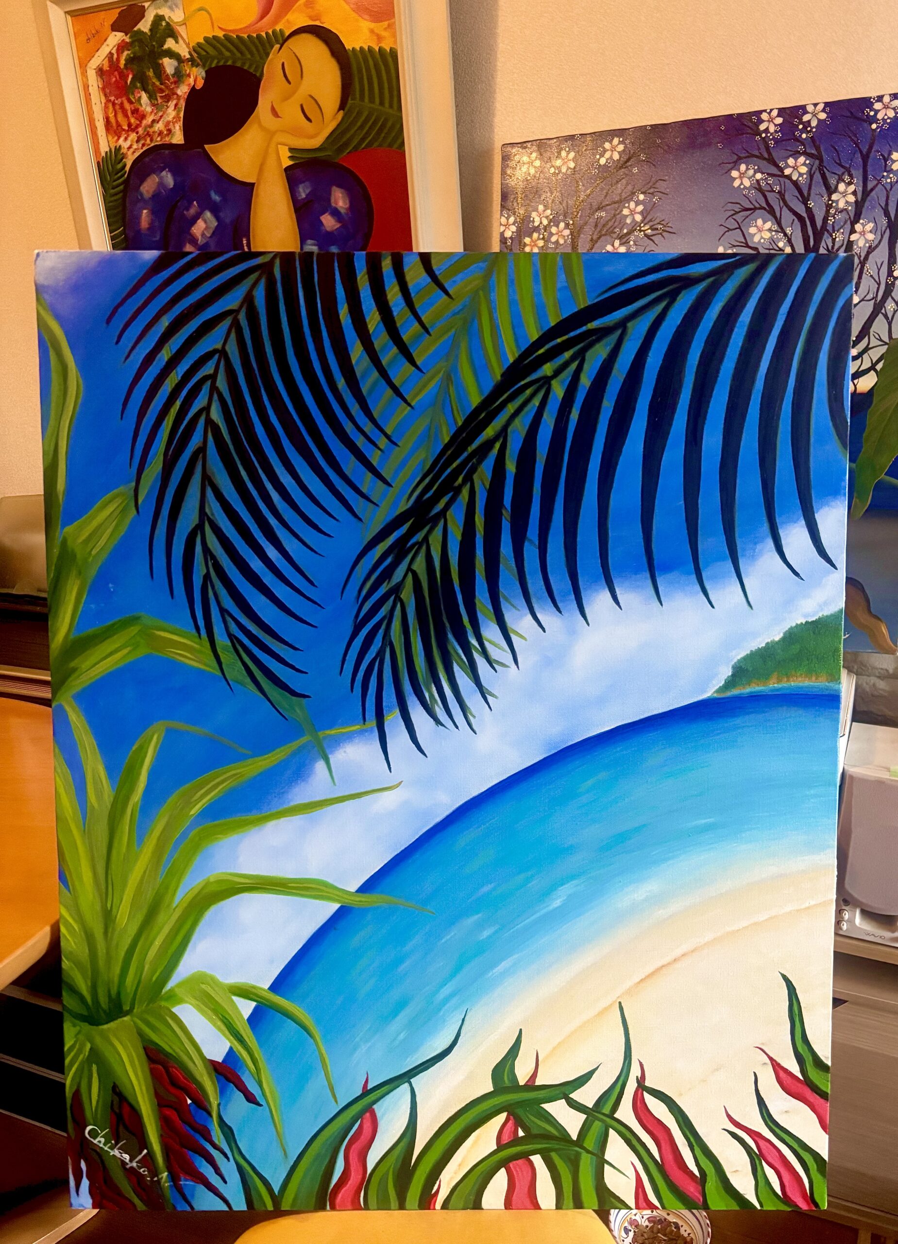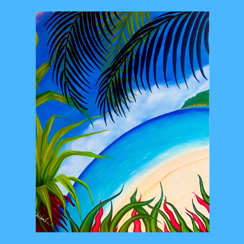 南の海を想像して描きました♪実際にはない風景です。