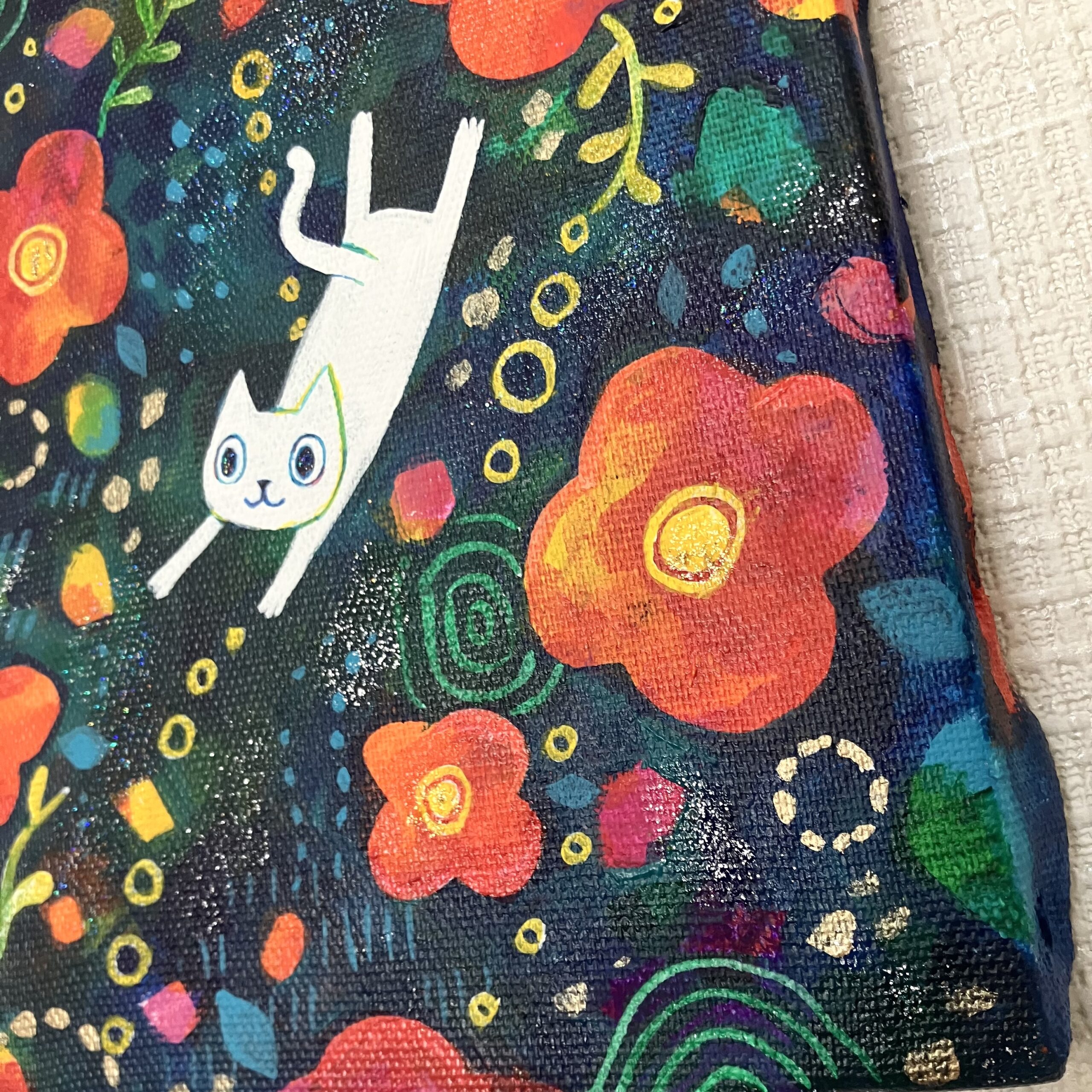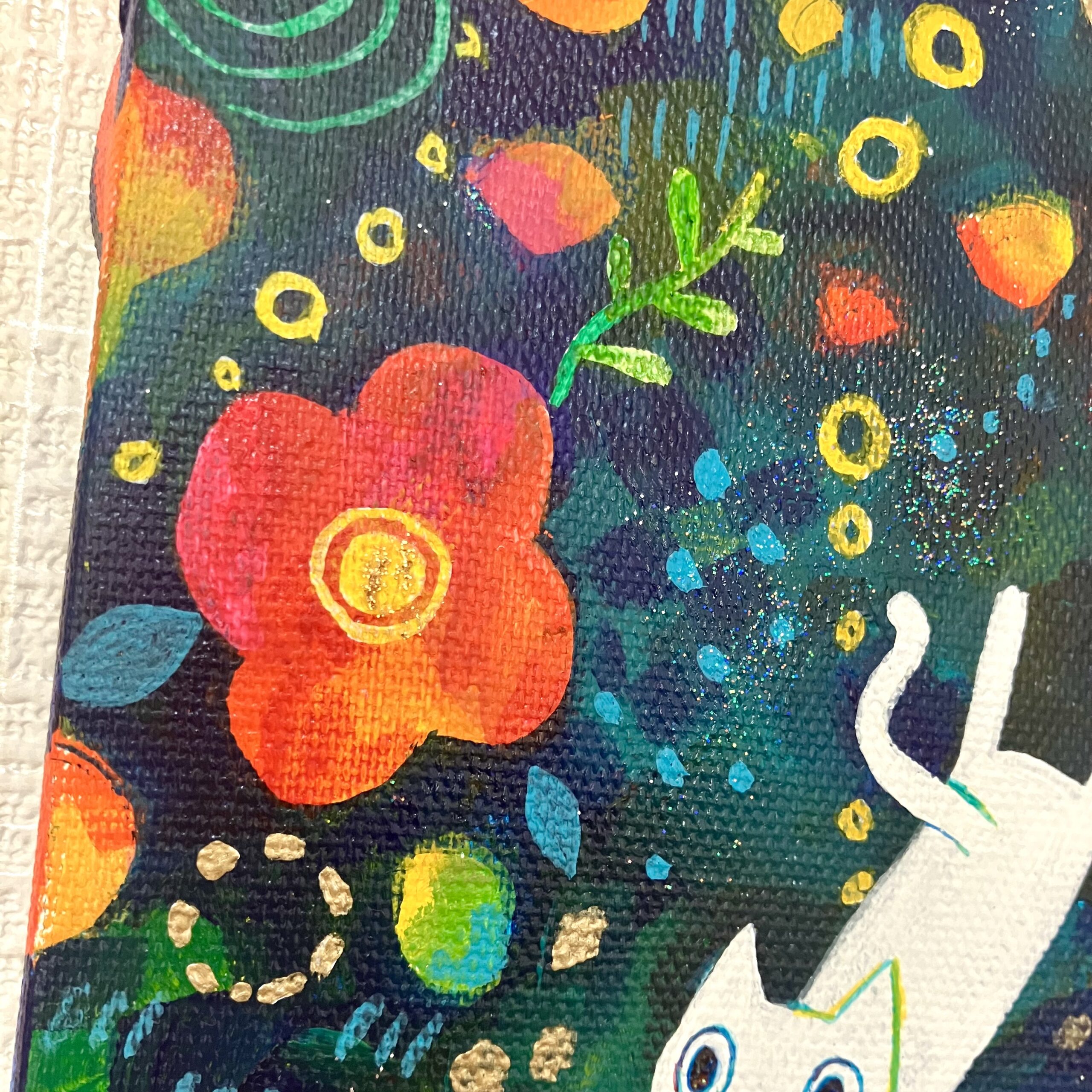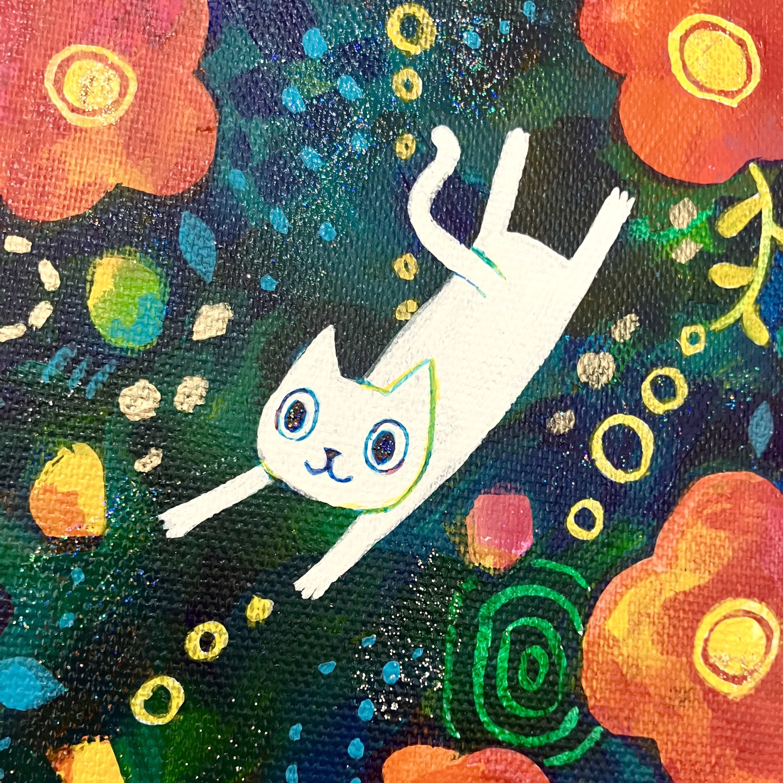 ところどころラメの絵の具を使用し、角度によってキラキラと光って見えます。