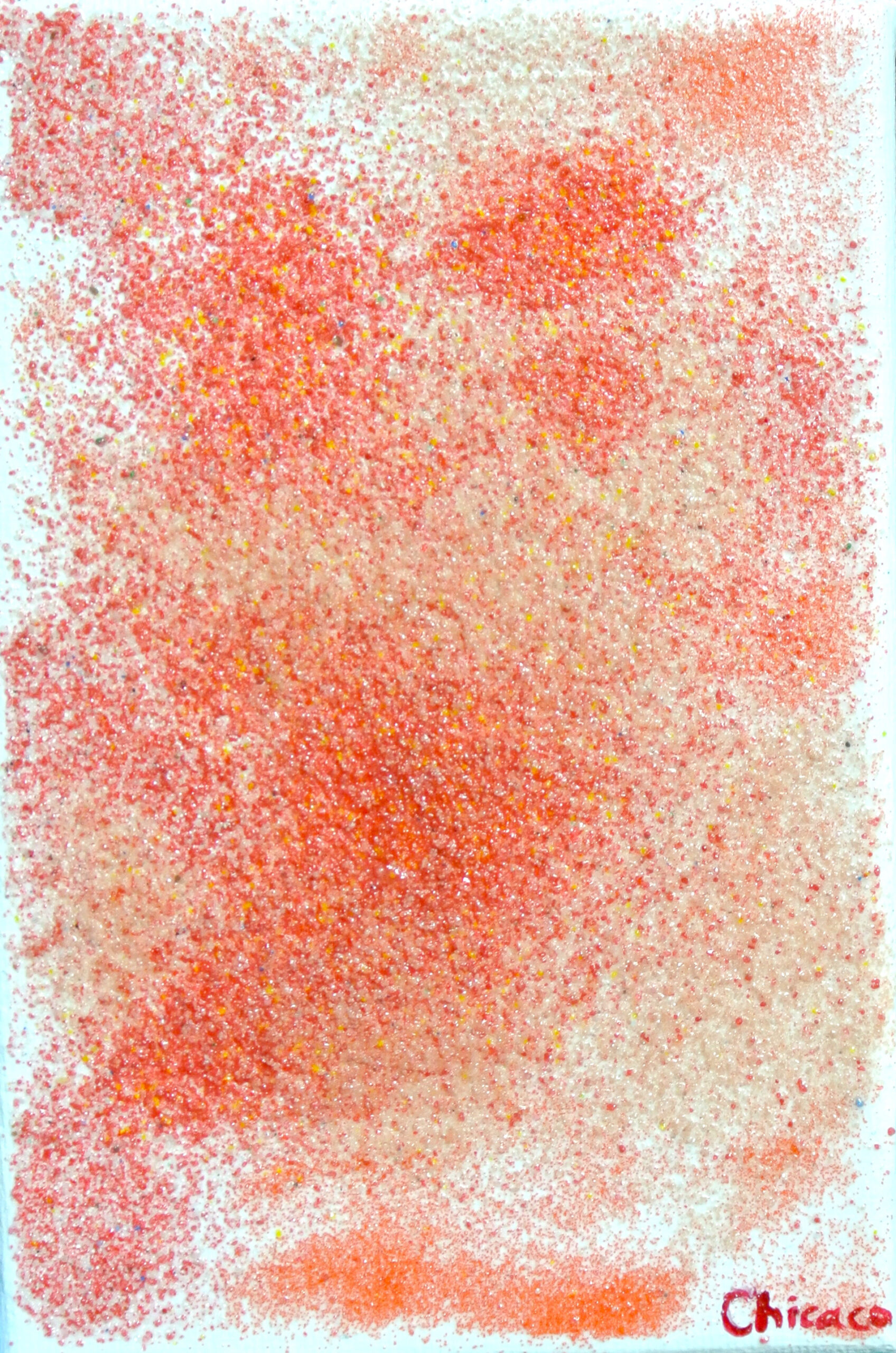 By dropping sand from above and daring not to decide where the sand will fall, the work can only be created at this moment.