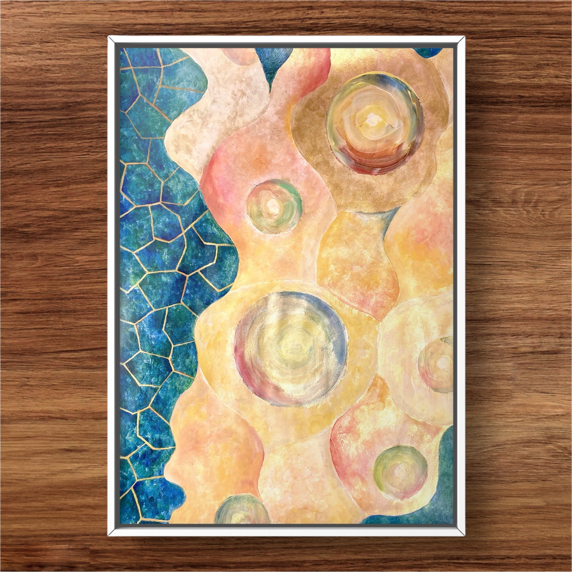 無から生まれ出る光の粒子たち。やわらかな混沌のなかに、静かなエネルギーが宿る。すべての始まりを祝福するような、色とかたちのハーモニーを描きました。