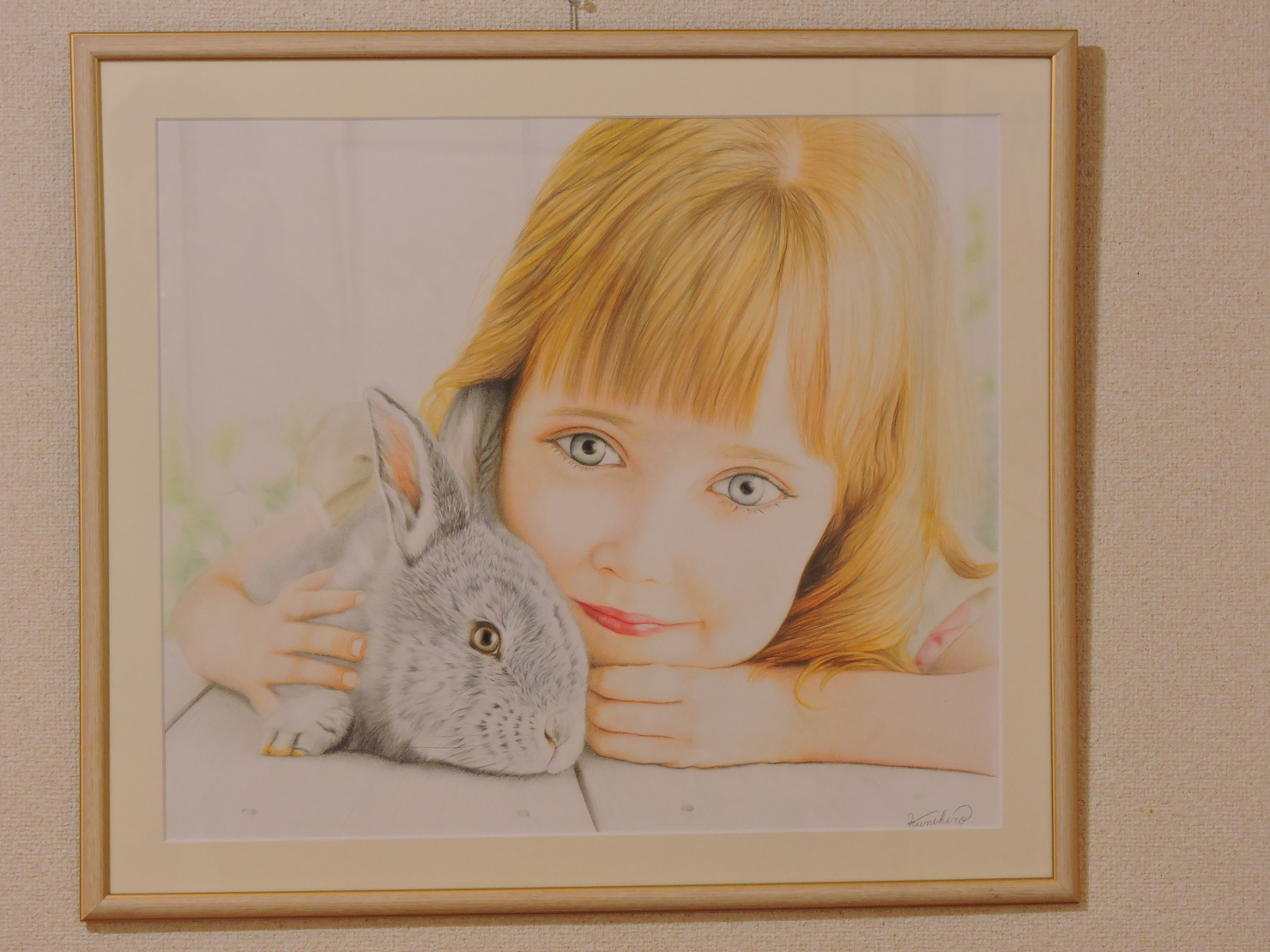 ふんわりとした色合いで描かれた女の子とうさぎの姿が、見る人に心温まる瞬間を届くように描きました。