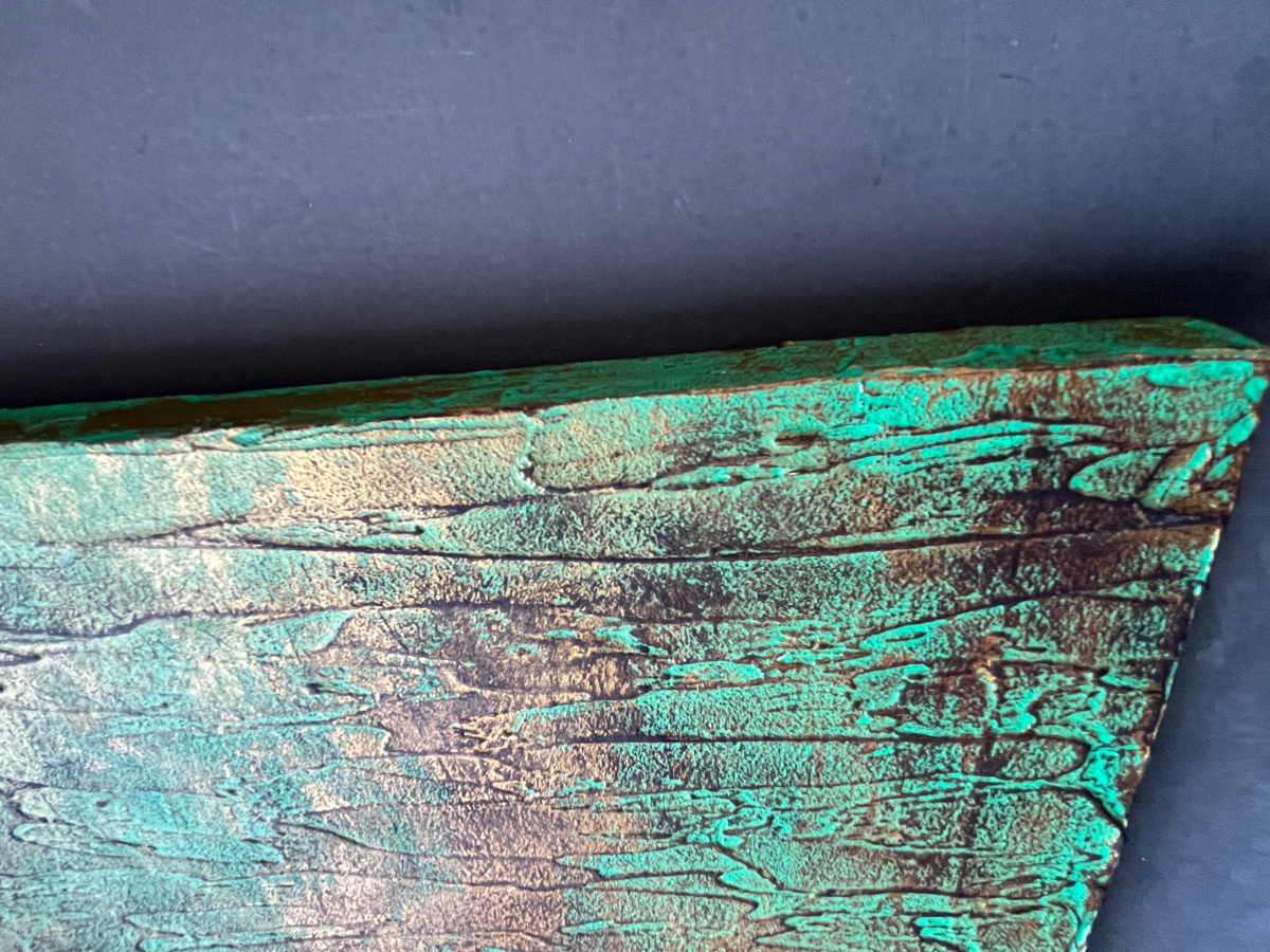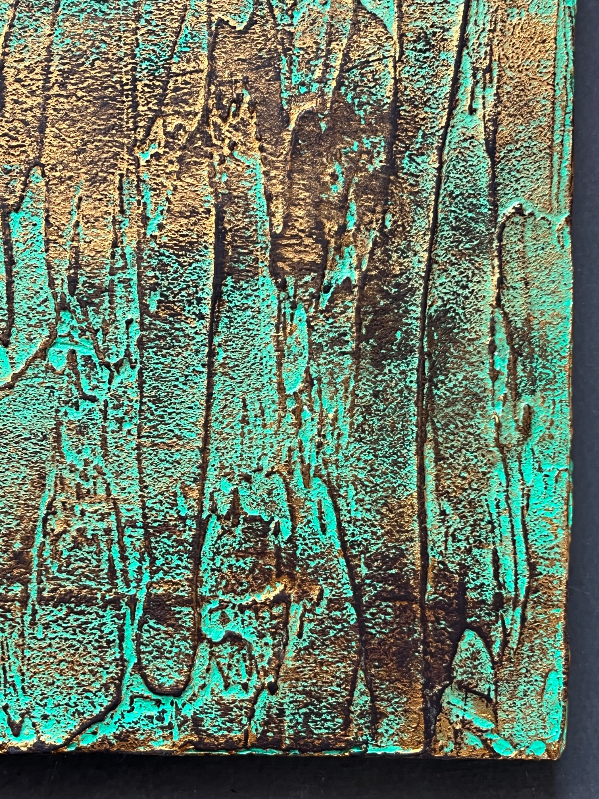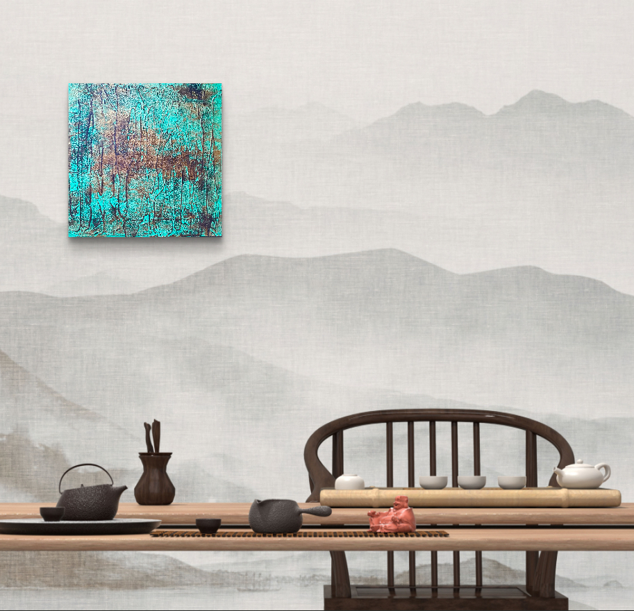 青銅器の錆感、劣化感、輝きを現代のインテリアアートに昇華させるため、革新的なデザインと繊細な技術の融合を追求しました。空間にもたらす静寂と癒し、且つ現代的な意識を含んだ作品が誕生しました。和にも洋にも調和がするカラーリング。