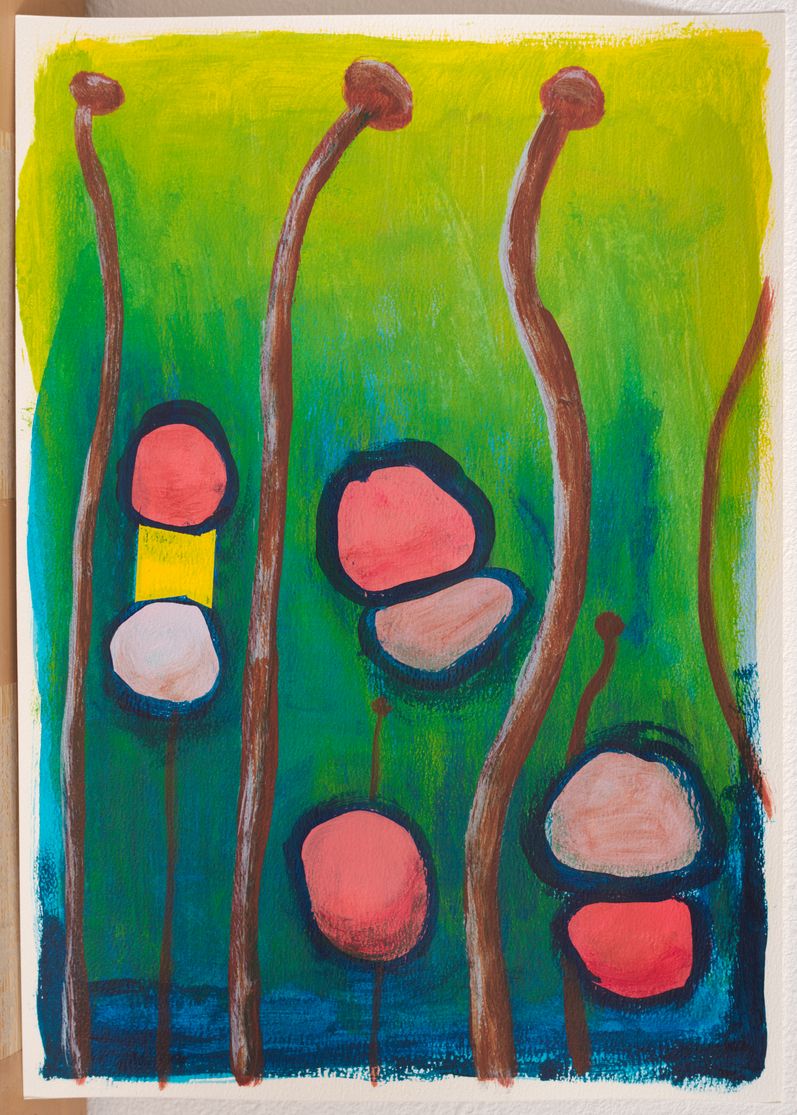 アクリル絵の具を使い、立体感がありスモーキーな雰囲気に仕上げました。