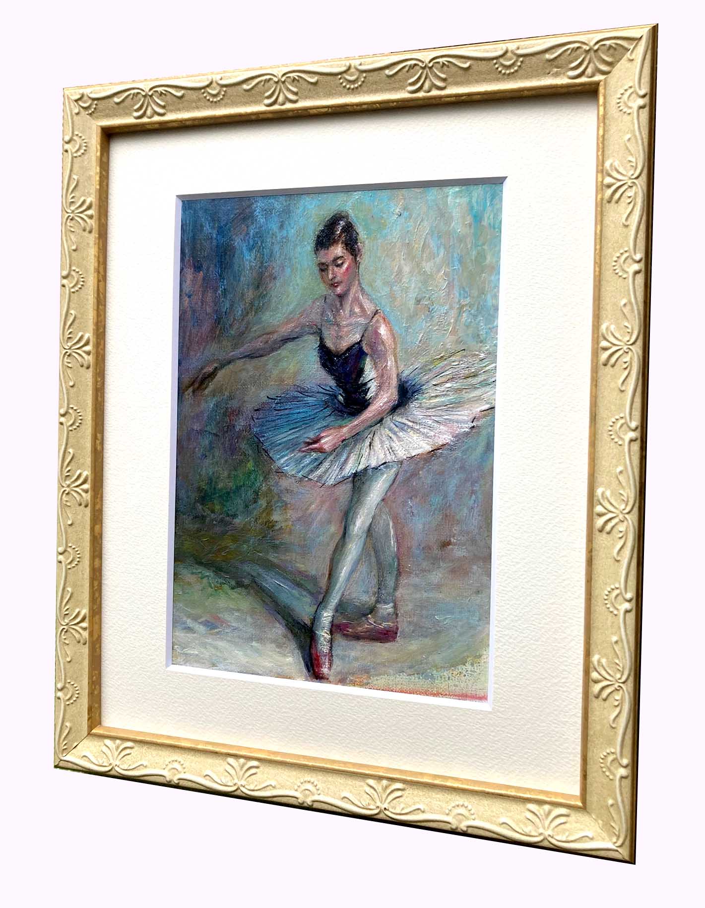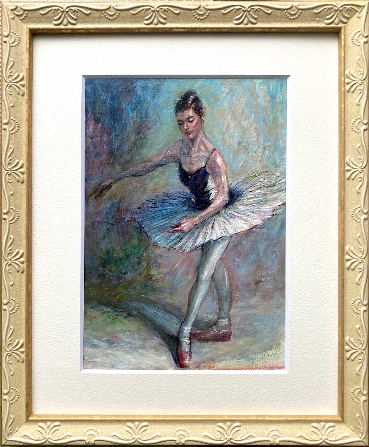 バレエダンサーを油彩でデッサン、描画しました。スリムな体型に長く伸びて鍛えられた手足の筋肉感を感じるように描きました。SMサイズのボードなので水彩額にマットを合わせて飾って頂けます。色味を感じながら落ち着いた色彩なのでレトロ感もあるかと思います。