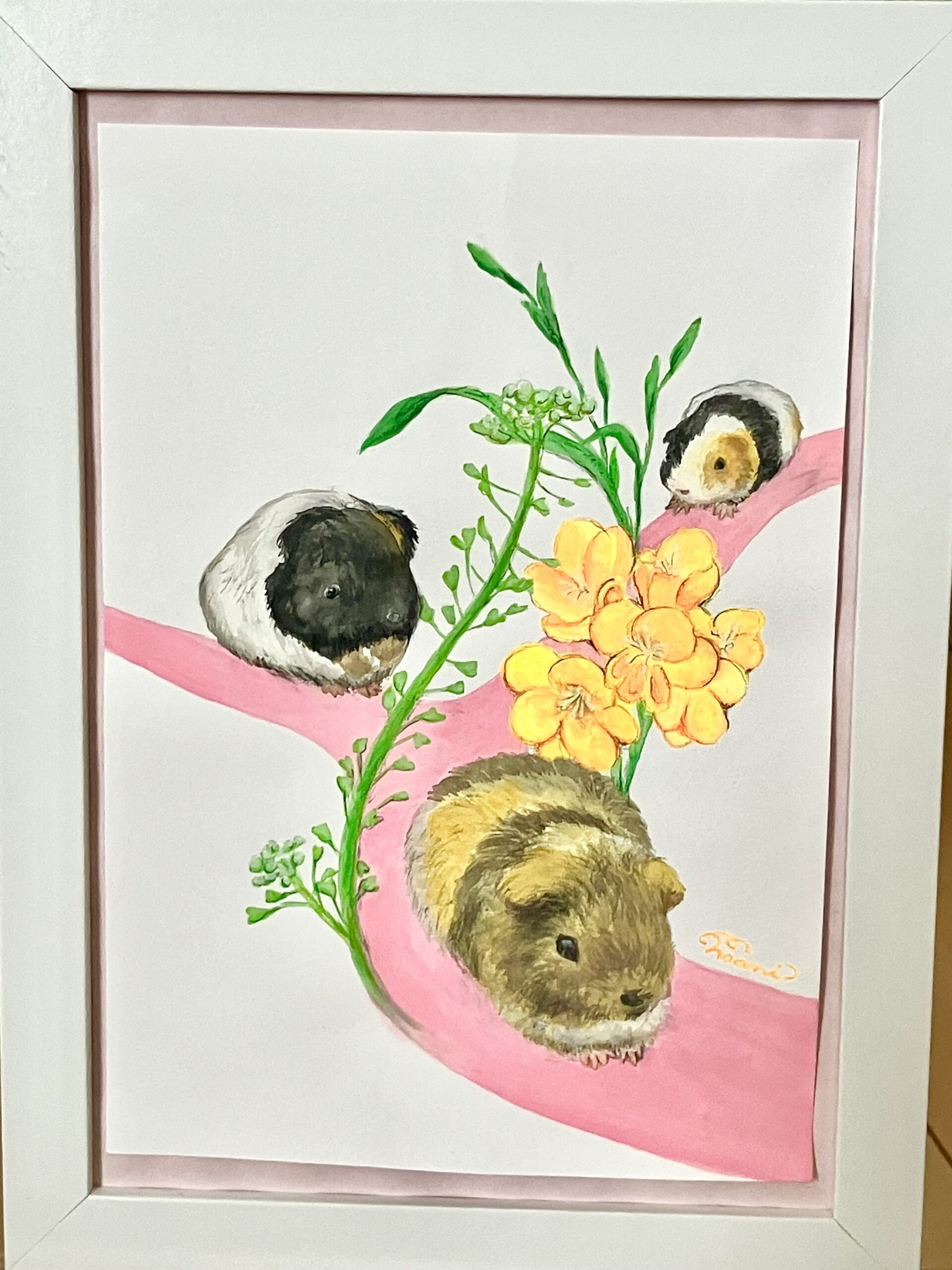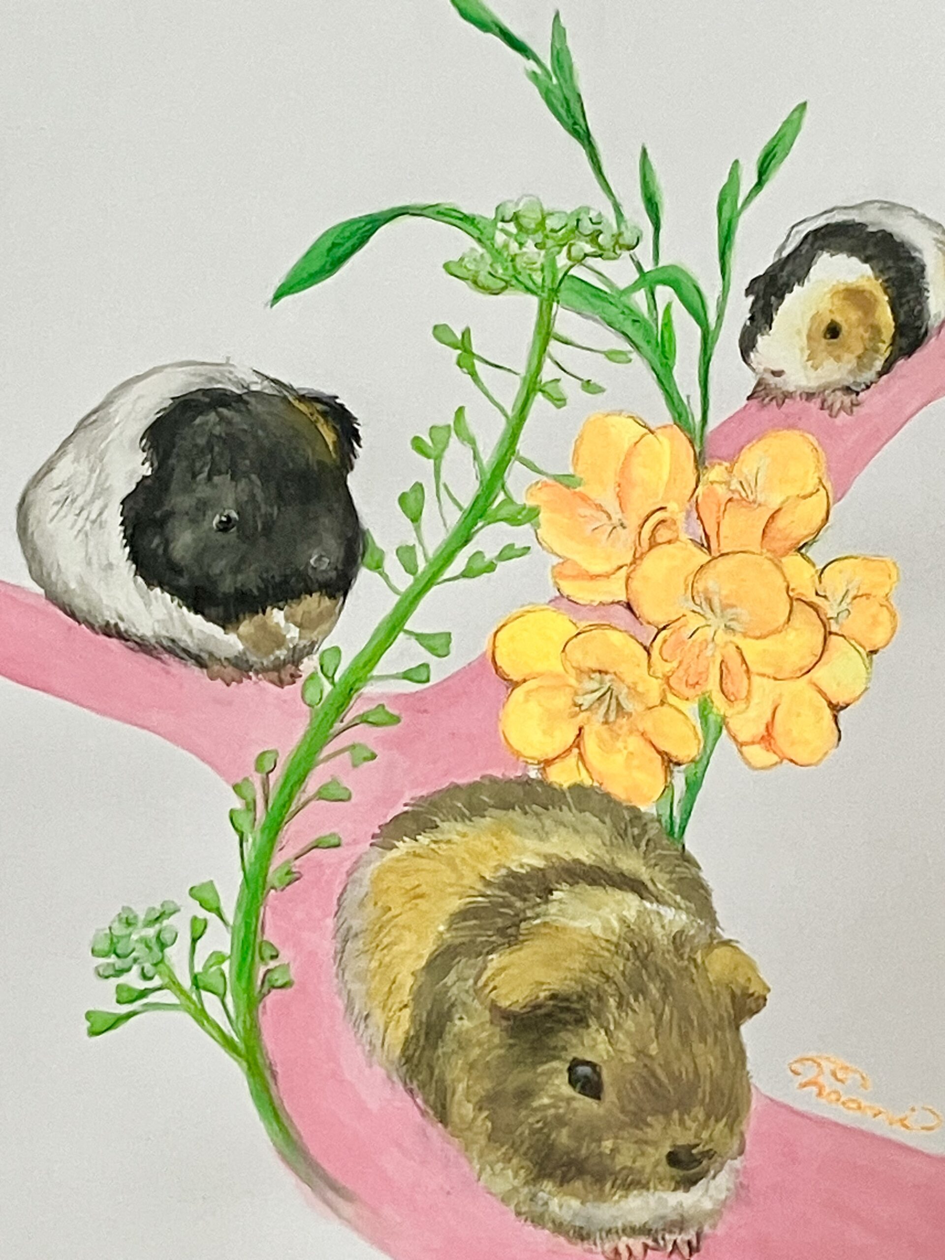 かわいらしいモルモット達と、新しい道を進んでゆくイメージです。
